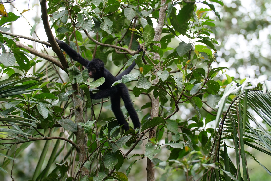 The three youngsters Alessi, Ashuke and Miyo (juvenile male spider monkeys)explore the outside world more confidently, our volunteers are working diligently to discourage them from seeking human contact. They still spend nights in their enclosure (Lulu), but during the day they’re free to roam around and find their way.