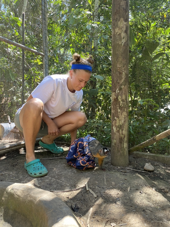 The zombie apocalypse has arrived to the jungle… or is it Manager Alex… on a cold morning… transformed into a walking blanket? … yup. The Amazon jungle isn’t always hot hot hot, we had a couple of 10C mornings after some surprising rainfall. But as the sun rises, enclosures get cleaned and buckets carried – all the volunteers start working up sweat and beg for the cold to come back.