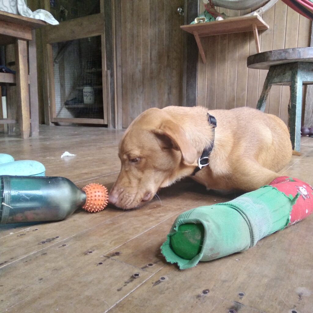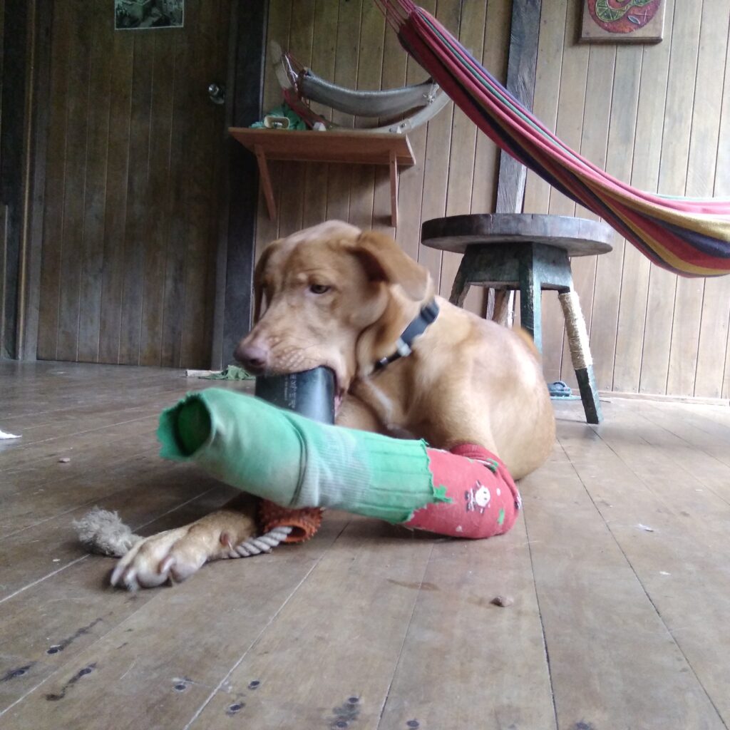 We were all gathered in the kitchen for our weekly meeting when we heard a heart-wrenching squeal. Rex (also known as Kayla’s dog) was left in our care as Kayla’s out exploring the world. Young as he is, he thought he could jump onto the Volunteer House roof, just like the monkeys. Turns out, he can’t. Oh, to be young and curious. He didn’t really ‘fly’ like a monkey and hit the ground with such force that he broke his front leg. He’s now under strict lockdown in the Family House. But his spirits haven’t taken a hit and his cast isn’t keeping him from trying to jump and playing around. You can imagine how thrilled Olivia is at the idea of staying home to babysit a very bored and excitable young dog… So, if you’re wondering why she’s hardly online, you have a wild little limping Rex to answer for that.