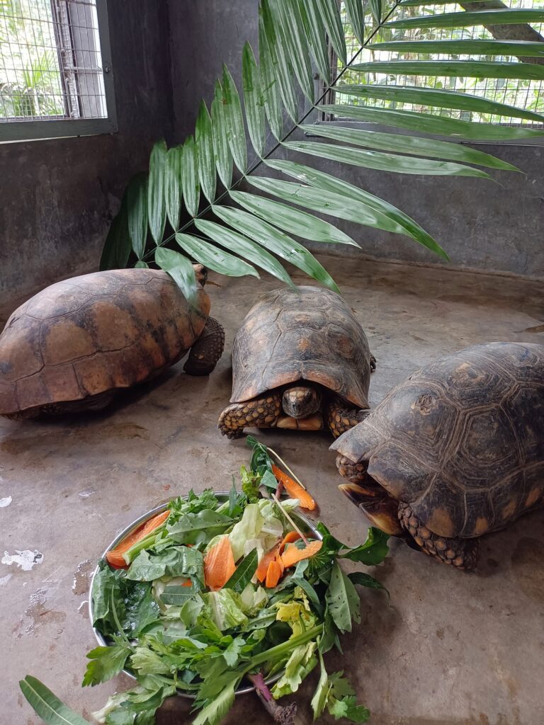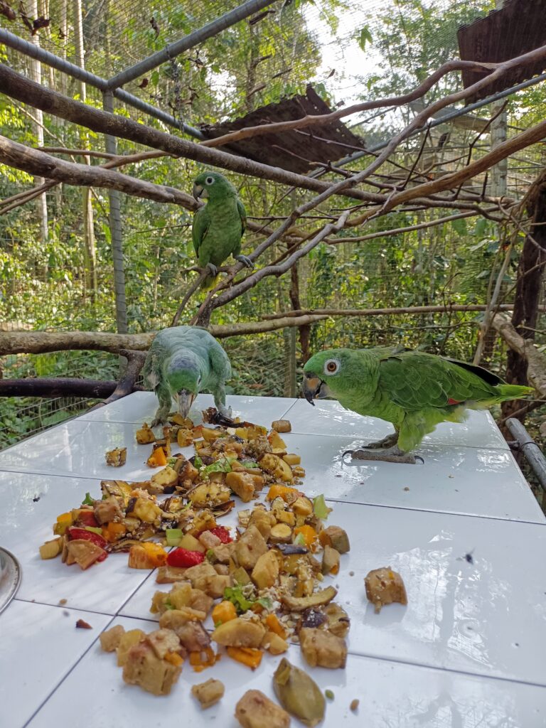 And then there was a big batch of new furry, fluffy, and scaly faces. Despite the increasing workload and decreasing hands to help, we still don’t know how to say no to animals. After all, there was space in the quarantine, and we’re the only rescue centre in the region. So, we welcomed 19 new animals: one small yellow-footed tortoise and three large ones, three orange-winged amazons, one mealy amazon, two festive amazons, another blue-headed parrot, two white-winged parakeets, one blue and yellow macaw, a white-throated toucan, a paca, a woolly monkey, and two tamarins.