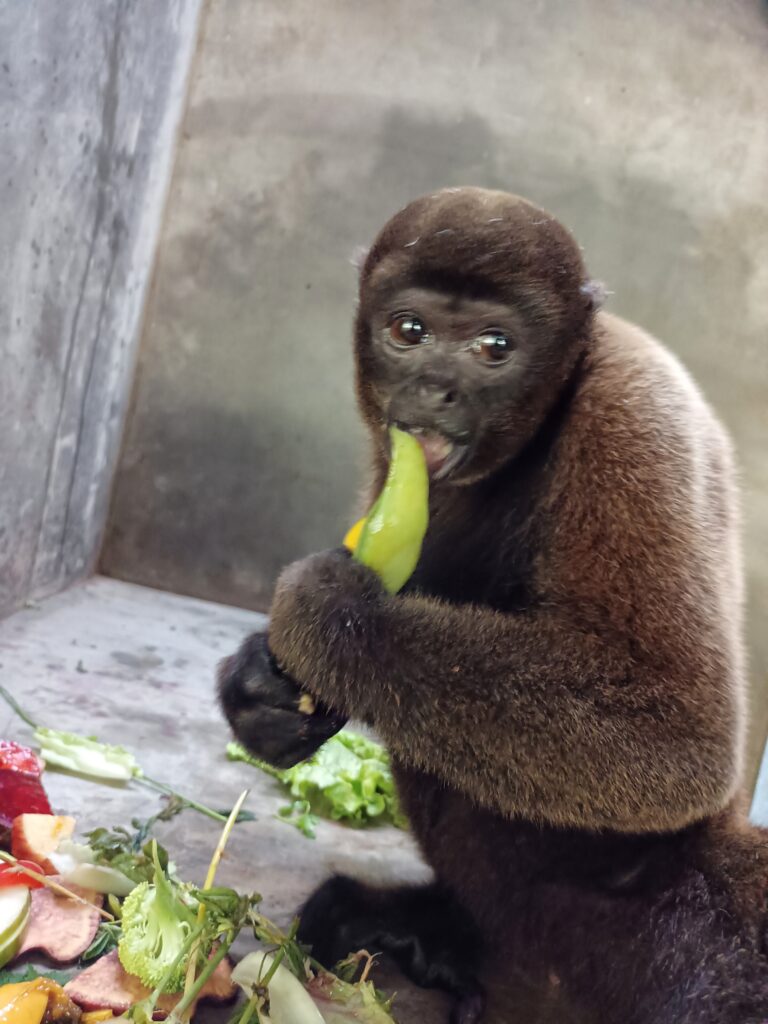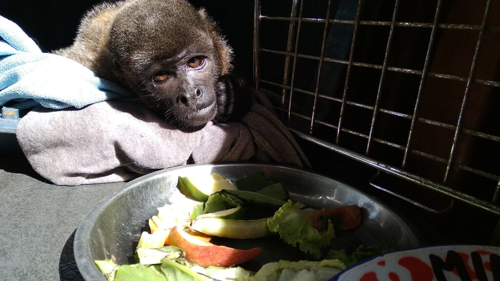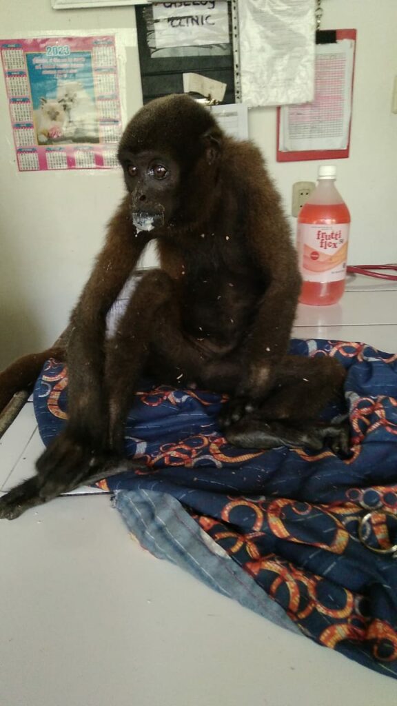 It’s a repetitive story of woolly monkeys checking into the clinic in a never-ending battle against Prosthenorchis Elegans. A beautiful name, for a beautiful worm that puts up an ugly fight leaving a trail of sick monkeys. Keska (juvenile female woolly monkey) is back in the clinic after she was found weak and dehydrated on the ground. We replenished her, but the case is a bit more complicated this time around. Sam (our resident vet) is dedicated to her treatment, and with the support of our veterinarian network across the world, we’re keeping our fingers crossed. She’s hanging in there, and has her ups, but is not yet out of the woods.
