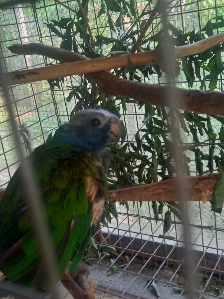 At the same time a crusty and very poor looking bird arrived, almost too hard to see the blue-headed parrot under it all. The bird was rescued by a concerned citizen who noticed it being kept in the most awful conditions. Sam and Douwe got straight to work. After consulting our vet net (veterinarian network) they started treatment. The scabs were coming off, food was going down and things were looking up. But its health took a sudden turn and the bird passed away. The exact cause couldn’t be determined, but we’re sure the root cause can be pinned on the distressing conditions it was kept in for far too long.