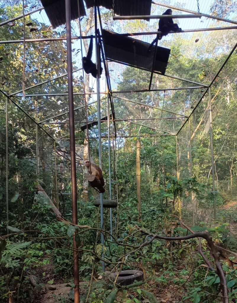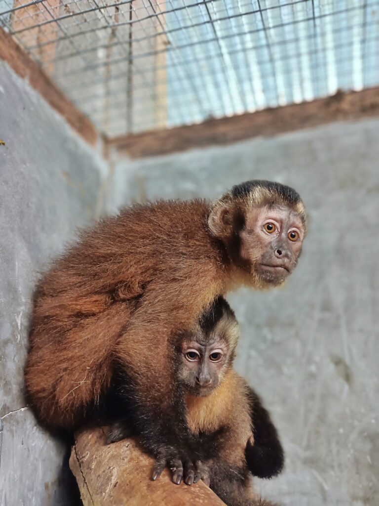 Semi-captivity is complicated, it requires constant assessing and evaluation – but it’s worth it. We need to ensure all the animals are well, without engaging in unnecessary contact, rewiring their behaviour toward humans, and ultimately teaching them that they shouldn’t seek contact with us. Most of the time it works well, but we’ve spent months applying different tactics and testing new approaches without success, which meant Nando (adult male capuchin) has now been moved to the “Rimaq” enclosure with Lucio, Rimaq (adult male spider monkeys), Apollo, Biko (adult male capuchins) and Kres (adult female capuchin).