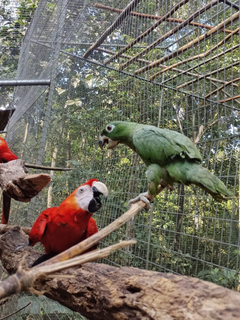 There’s never been a day that’s gone according to schedule at EV, that’s just the nature of what we do (and why we love it… most of the time). One morning we woke up to a giant hole, bent tubes and four birds missing from the “Pichu” aviary. A tree collapsed on it! Lucky us, Geyler was around to clean up and repair – which took two days. Arthur and Gabriel caught the three escaped Amazons and returned them to safety. Sadly, Mebi, the escaped Scarlet Macaw, passed on his way to the clinic. The monkeys found him on the floor, but as we couldn’t find any wounds, our guess is that his heart couldn’t handle it. A member of the EV family since 2014, Marlon knew Mebi as the macaw that always tried to munch on his (at the time) tiny feet.