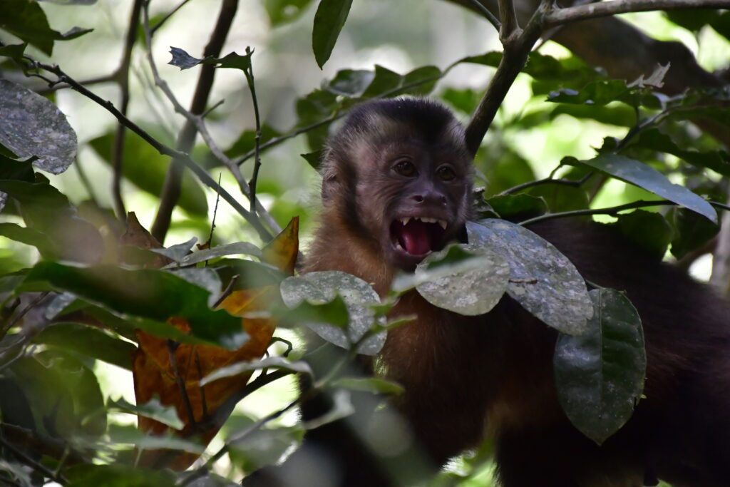 Maiko (juvenile large-headed brown capuchin) was ready for freedom after some adjustment time in an outside enclosure. Young and inexperienced as he is, Daytona and Rayka (female large-headed brown capuchins)took him into their care when he was let out. With two females like that, he is sure to get all the care he needs to find his feet!