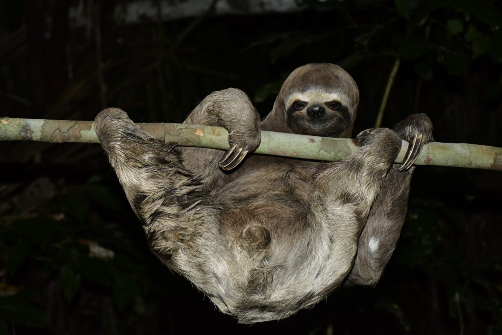 A wild three-toed sloth was climbing his way to safety, from a forest fire, onto a ‘moto-carro’ (also known as a tuk tuk). The owner rescued him and thanks to the convincing powers of Puck (volunteer and part of the big EVI family), the sloth was released again in the forest surrounding EV. Of course, not after we all had a good peek! All smiles here.
