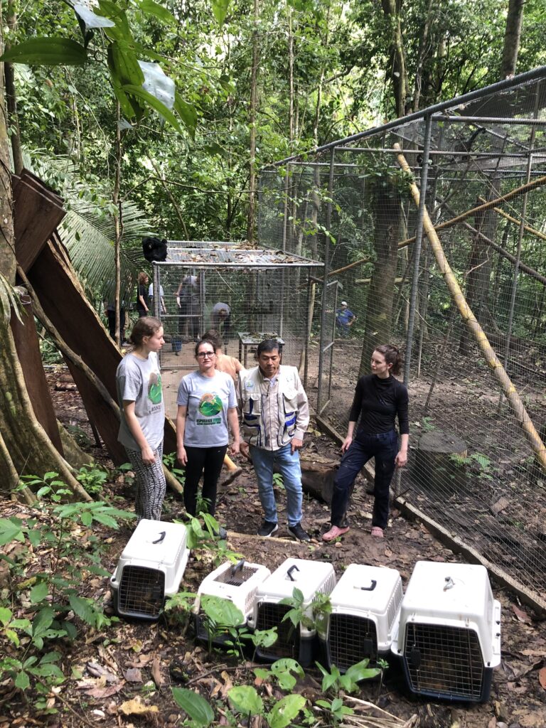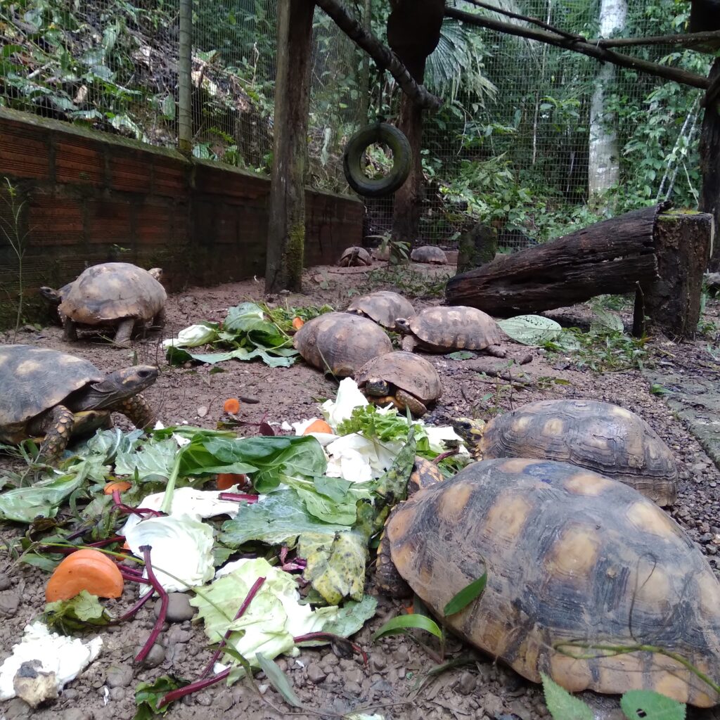 After a lot of intense vegetable cutting, many faeces examinations, deparasitation treatments and more faeces checks, the tortoises in the quarantine were ready for release. To avoid them being easily spotted we released them bit by bit. The director of the GERFFS (Ministry of Flora and Fauna Pucallpa), came to officially launch the release process (see their video: https://fb.watch/lsfTtYBDsp/?mibextid=2Rb1fB).