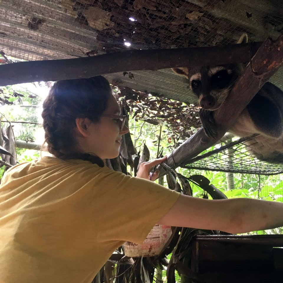 This 21-years-old “Dutchie” arrived on the 9th of March and was supposed to stay 2 months, but is very happy to stay longer. For her co-volunteers it’s not difficult to imagine what made her stay longer: It’s definitely the kinkajous that convinced her. Kim, you must know, has a bit of a crazy obsession for kinkajous but she has some more obsessions, for example taking pictures. Kim happily combines these obsessions as well, which is the reason that we hear at least 10 times a day: “Who wants to see a cute picture of Kiko (our male kinkajou)?”