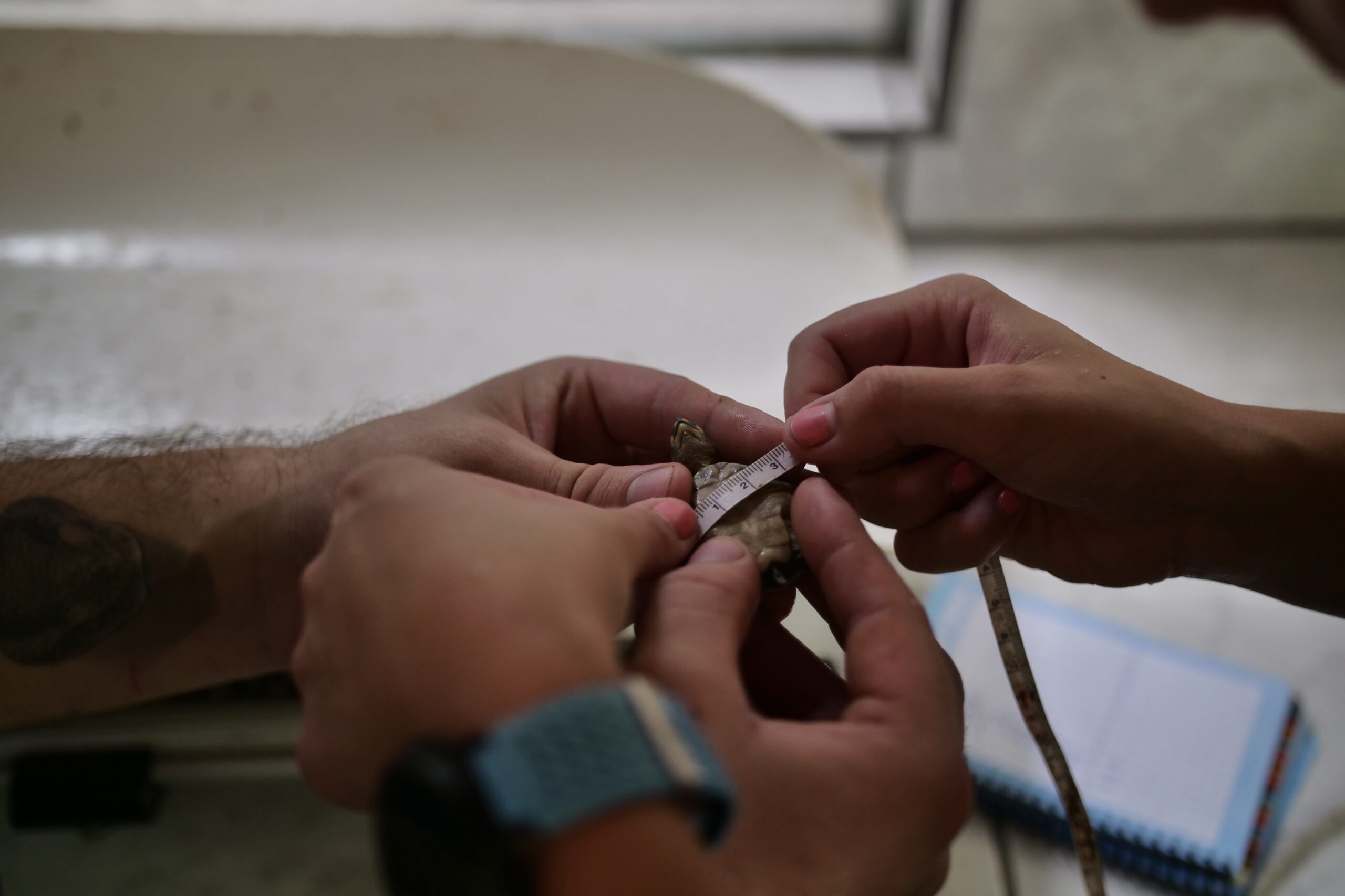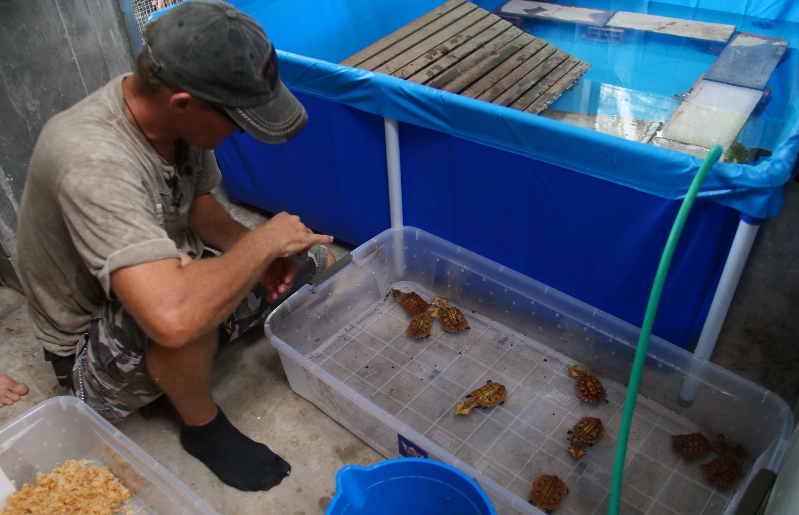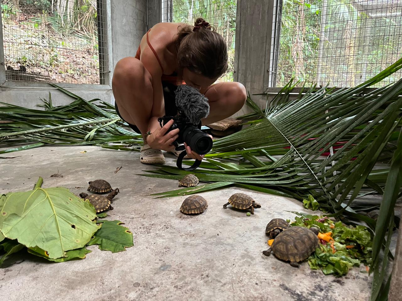 Most of the yellow footed tortoises weigh under 100g and were seemingly doing fine. But it turns out bacteria and parasites have taken advantage of their weakened immune system. But rest assured, they are being constantly cared for, with the sickest ones staying in a homemade nursery made by Olivia.