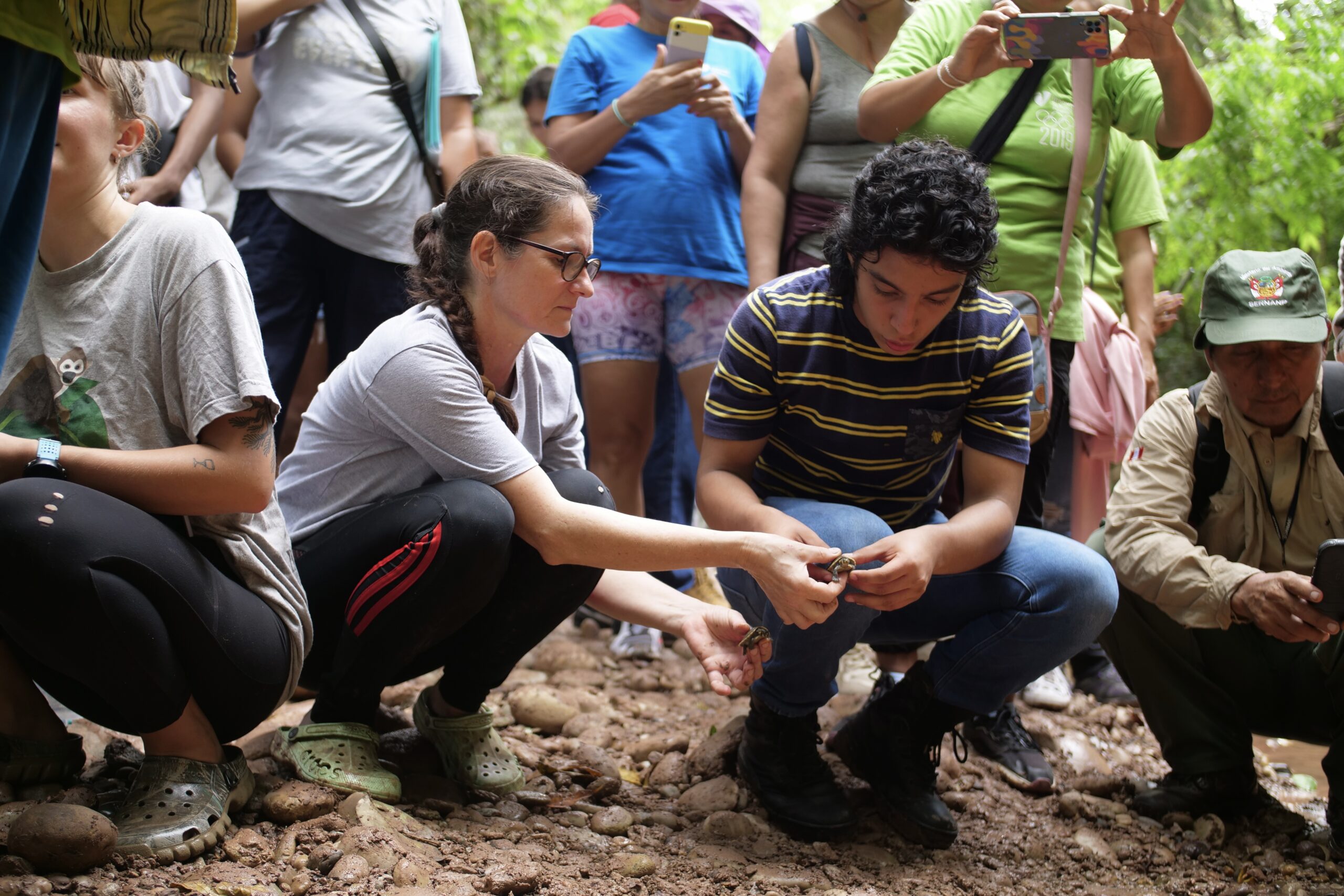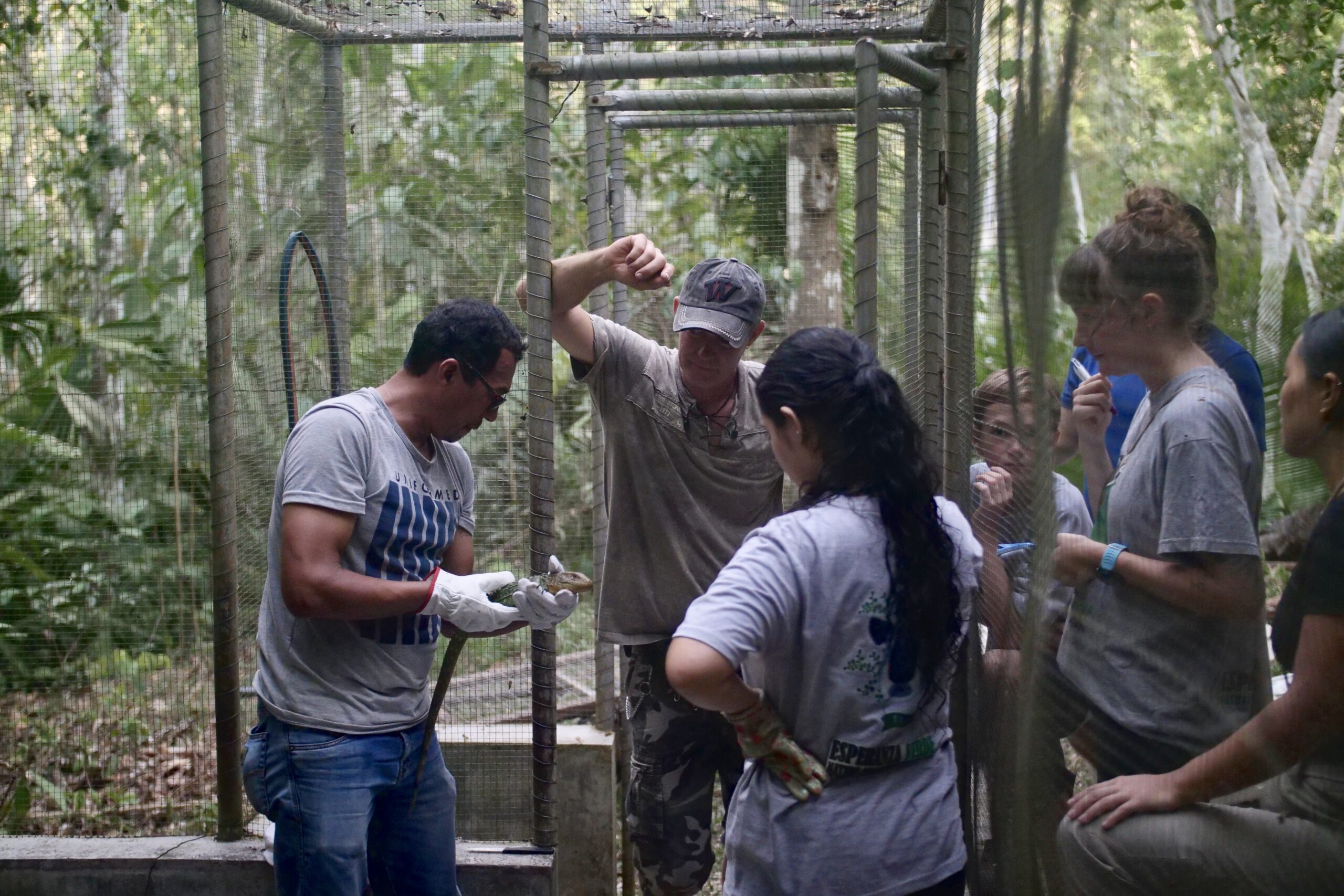 15 caiman lizards, 26 yellow footed baby tortoises and 38 mata mata turtles arrived at Esperanza Verde. We were prepared and ready, this wasn’t our first rodeo, but the condition of the reptiles caught us off guard, especially the caiman lizards. This specie doesn’t eat when it’s cold and because they spent 1,5 months in chilly Lima before arriving, they were starved and their immune system was compromised. Sadly only five of the original 15 are still alive today. But these five are fighters! Enjoying every single snail the volunteers catch for them to eat (which is their main source of food in the wild).