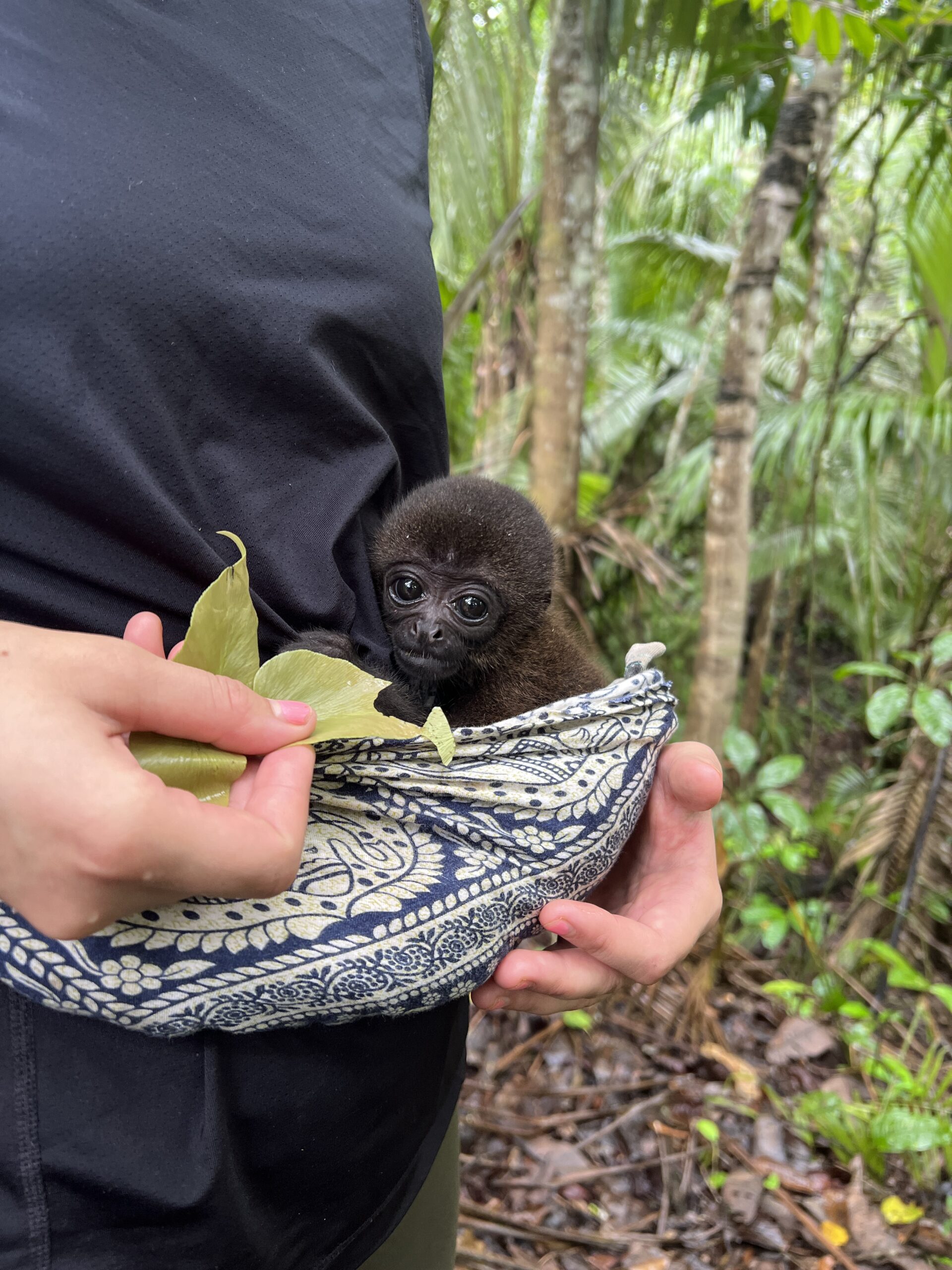 Kayla joined the team going to Pucallpa, but her task was a bit hairier. The ministry had two female woolly monkeys that needed to be looked after while making their way to us, and who better than Kayla? She’s been teaching monkeys how to climb since she was two! Moana is only 5 weeks old, which meant Kayla acted as her mum, keeping her safe the whole journey to the jungle. Once she arrived Alex (assistant manager) took over as her surrogate mum and with the help of all the volunteers, we hope to raise another strong female woolly monkey.