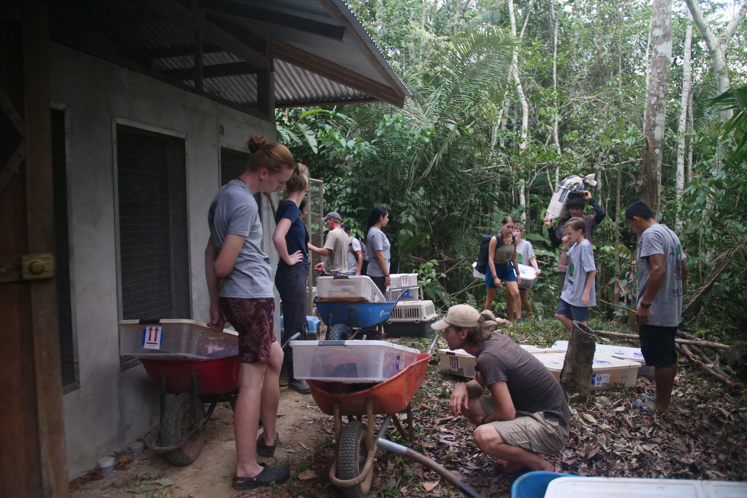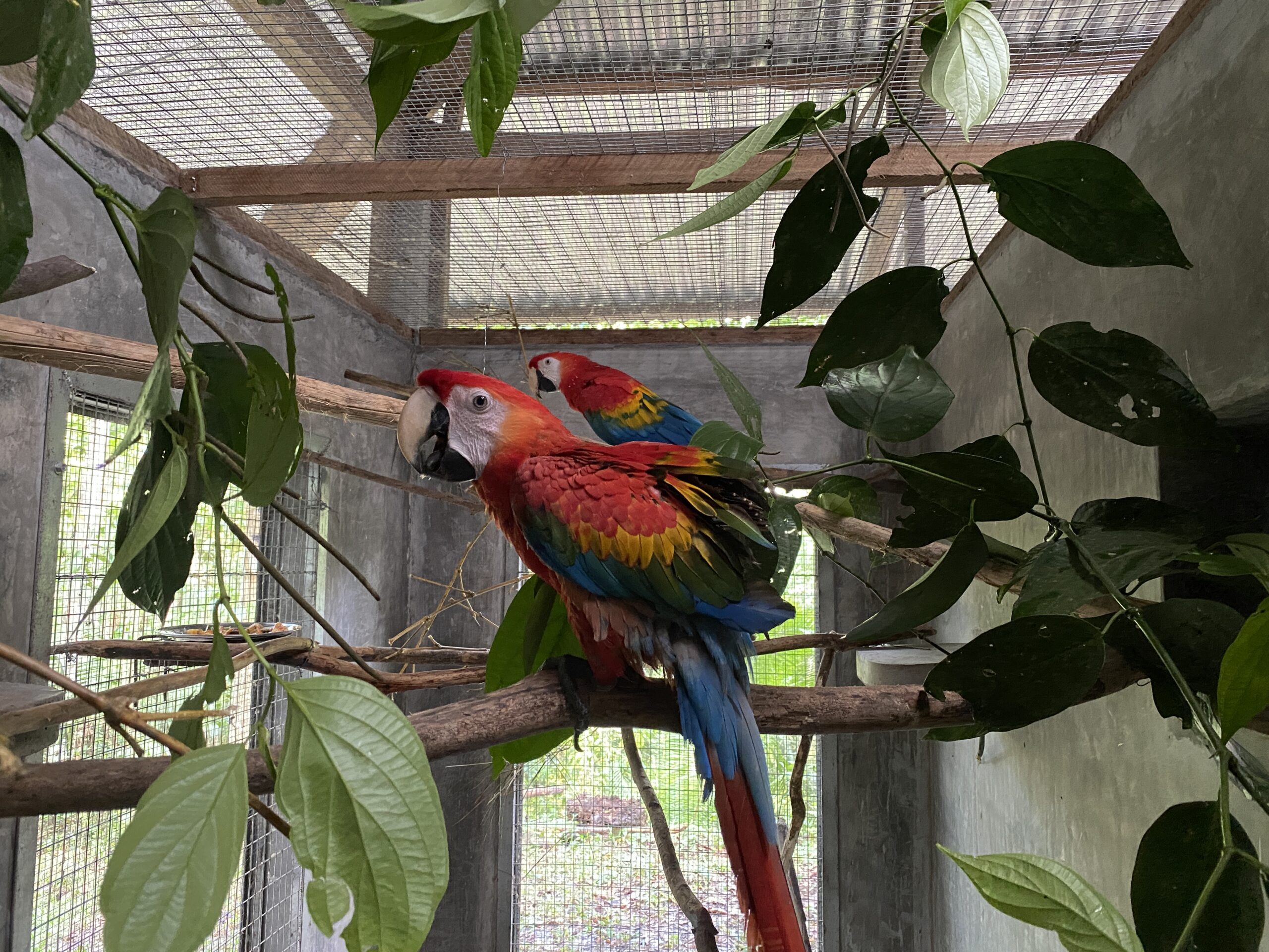 The bird group at EV has received few newcomers as well. A scarlet macaw, named Onanti-Papa. He´s been raised by locals from when he was bald, most likely taken from his nest. He´s now spending some time together with Aleesa one of the residents macaws to learn more birdy behaviours.