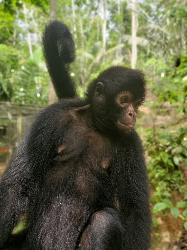 Panchin and Almira, male and female woolly monkeys, recently experienced some unusual behaviour. After two weeks of attentive care in our clinic of controlled diets, and treatment, they’ve made a full recovery and rejoined the lively semi-captive group, which now boasts a total of 14 woolly monkeys.