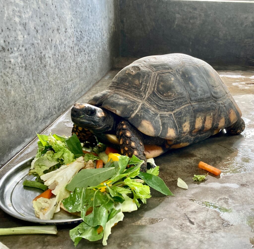 Due to a prolonged drought, we took the opportunity to refresh and maintain the pond in the reptile enclosure. The yellow-spotted river turtles, or Taricayas (their local name), received a clean bill of health from our dedicated vet, Carlotta, and were returned to their rejuvenated pond. As an unexpected surprise, we found one of the spectacled (white) caimans, released more than a year ago, living in the pond. An exciting discovery for our volunteers and staff!