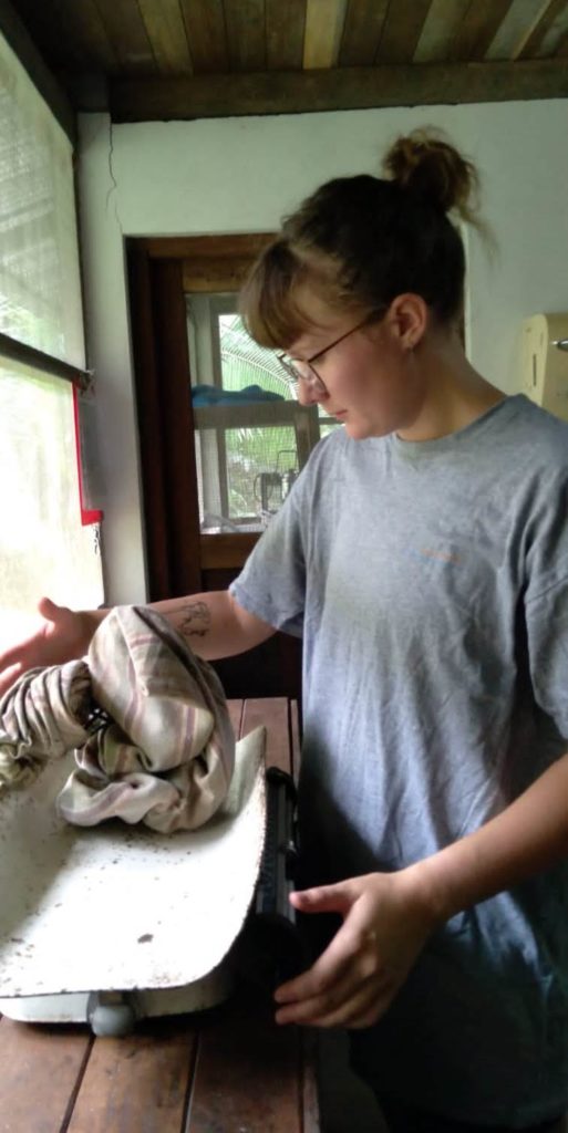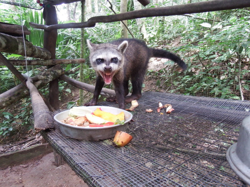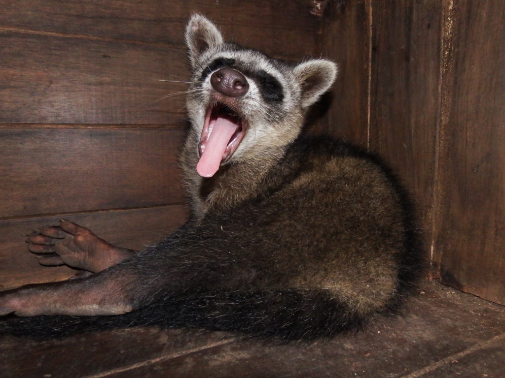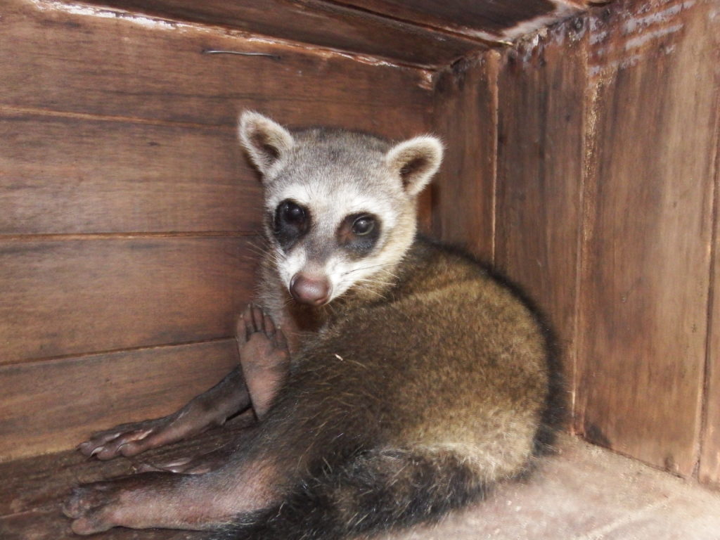 Payco the crab eating raccoon has settled into his new enclosure and, other than a small finger injury, is in good health and high spirits. Although he has a different personality to our previous crab eating raccoons (Rumani, Mokwai, Eona) we envisage evening walks for Payco starting in the next month. This is always a welcome addition to the day, with many volunteers eager to take on this fun and rewarding role. Evening walks are vital in preparing Payco for release, which is ultimately a decision he will make when he is comfortable enough with his outside surroundings. Eona visits him sometimes in the evening laying on his cage, and seemingly having whole conversations together, so hopefully they will make a nice couple one day!