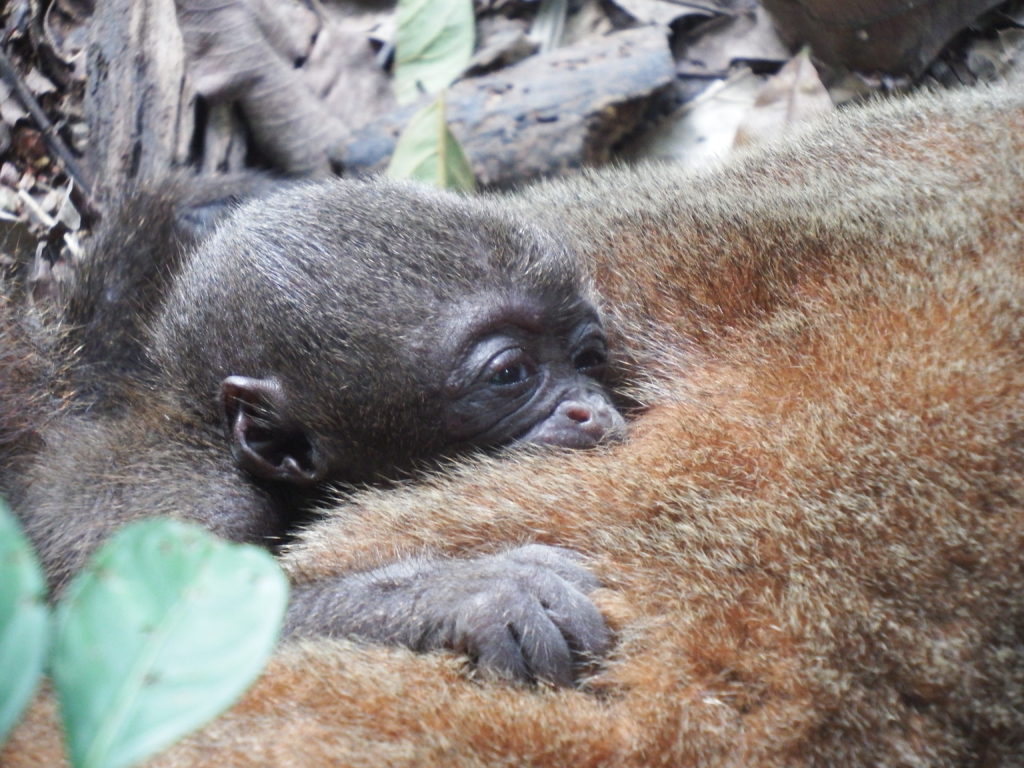 New babies are always a cause for celebration and this month did not disappoint. Douwe had realised a few weeks earlier that Maruja (female adult Humboldts woolly monkey) was carrying a lot of extra weight. On closer inspection Douwe was allowed to feel Marujas belly and found it was full of arms and legs. Then, after disappearing for almost two days, Maruja apparently thought it was time to show us her new born son. It was a great joy to see her with the new baby attached, both doing very well. It is always a beautiful sight to see the entire woolly monkey troop come to view their latest addition. The baby appears in very good health and surprisingly rapidly aware of what is going on around it. We decided to name him Manok.