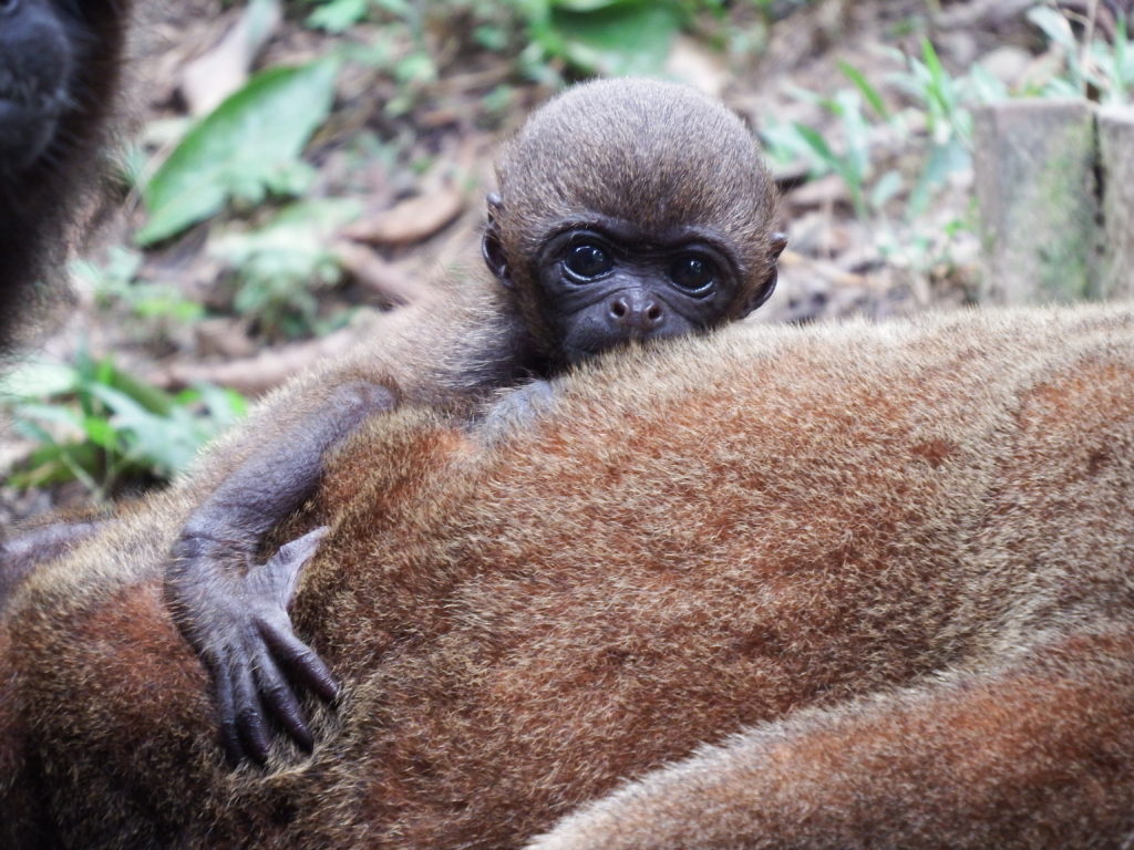 Our alpha male Humboldts woolly monkey Monano, and most likely the father, is never far away from the action ensuring the safety of the newest addition.