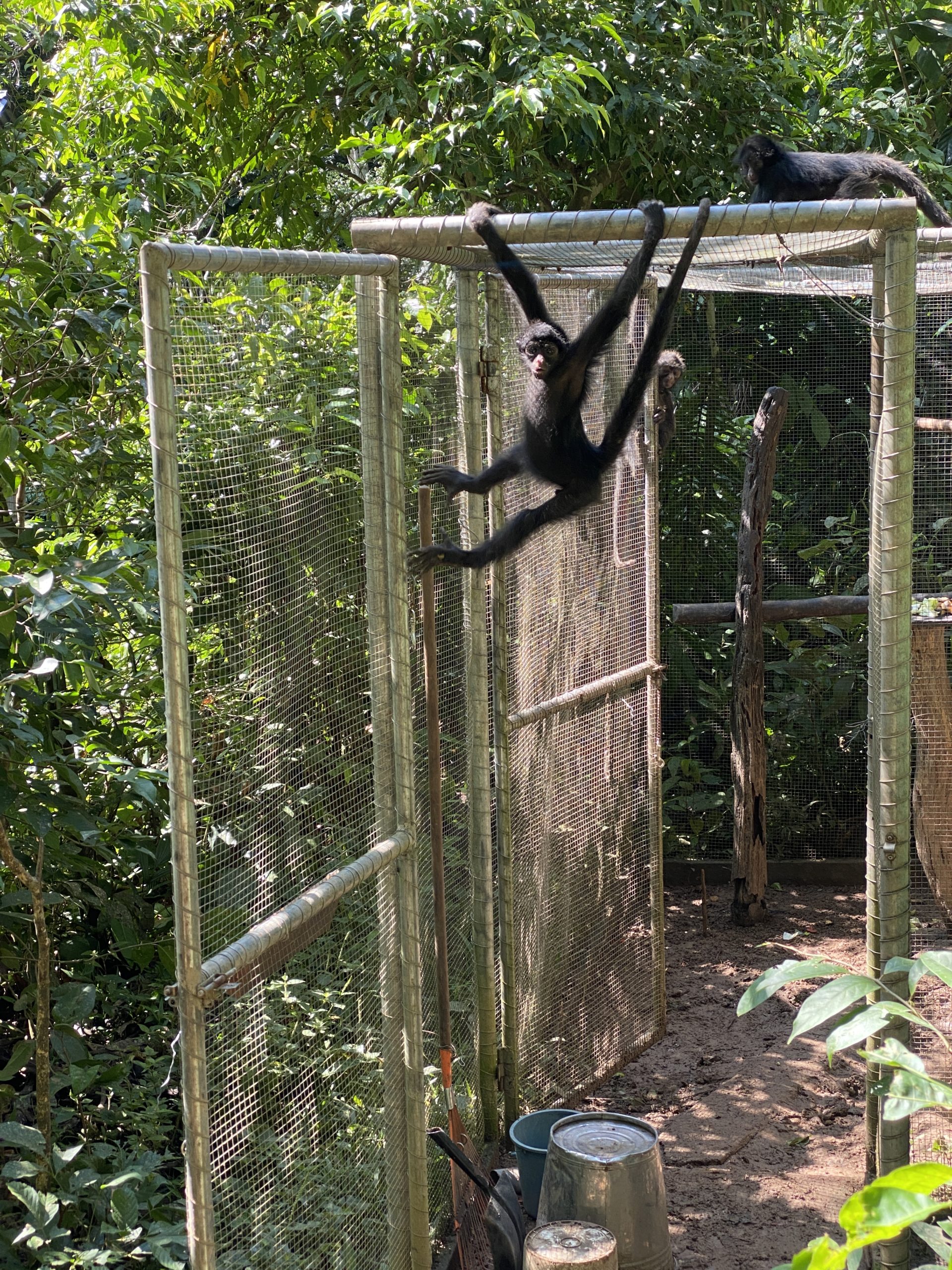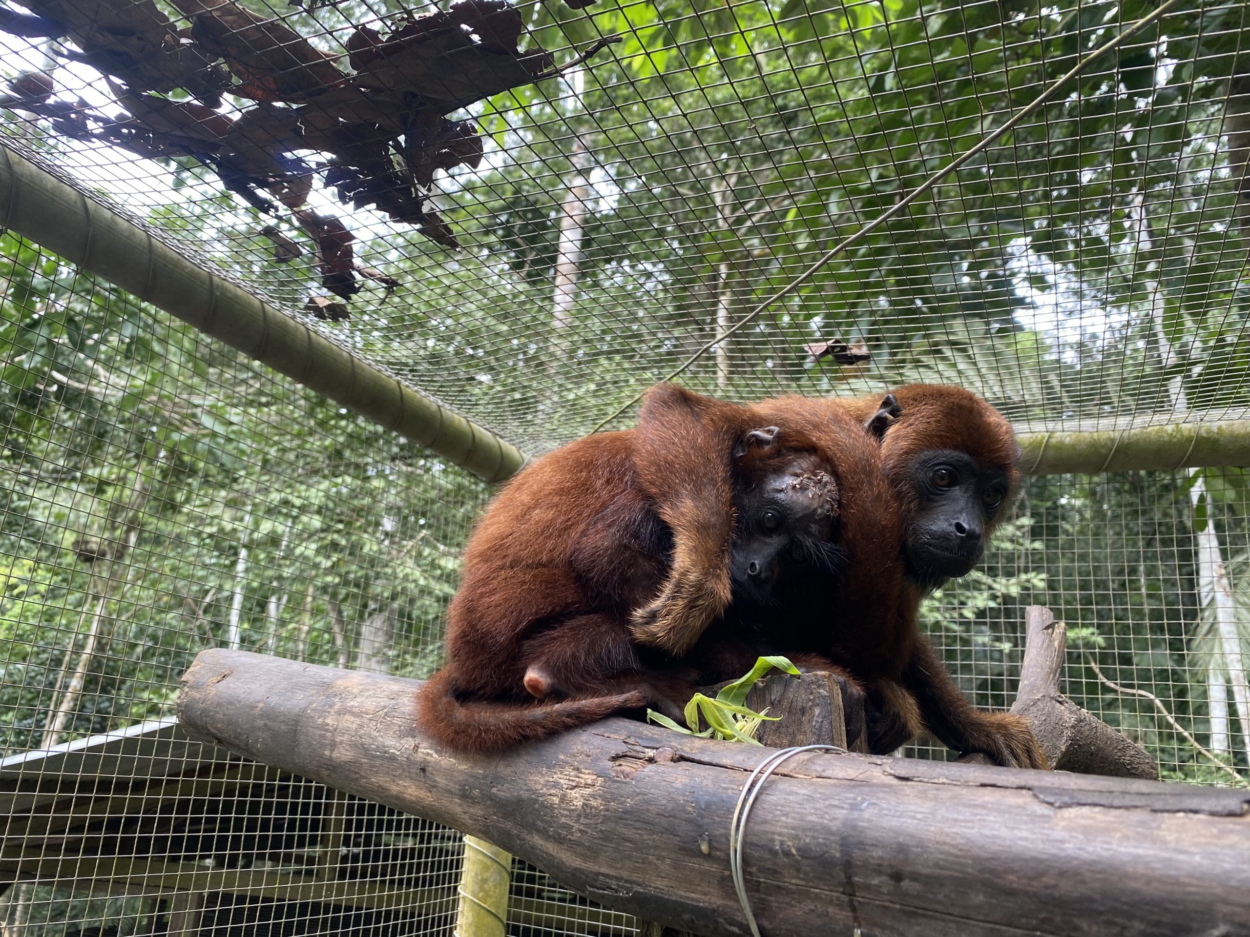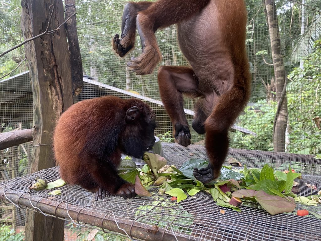 However, there was good news for Maida (juvenile female howler) this month. She was making good progress in Lulu enclosure and was seen engaging with the outside woolly monkey group, most notably Lupa and Chiquita (adult female woolly monkeys). Following the loss of Watson, we decided to start opening the door of Lulu during the day, giving her the opportunity to explore the outside world and engage with the other monkeys, returning to the enclosure overnight. She seems to be loving her newfound freedom and is seen happily eating leaves and scouting out the trees around the whole centre. Darwin (adult male howler) was also moved into Lulu with the intention of the two howlers keeping each other company.