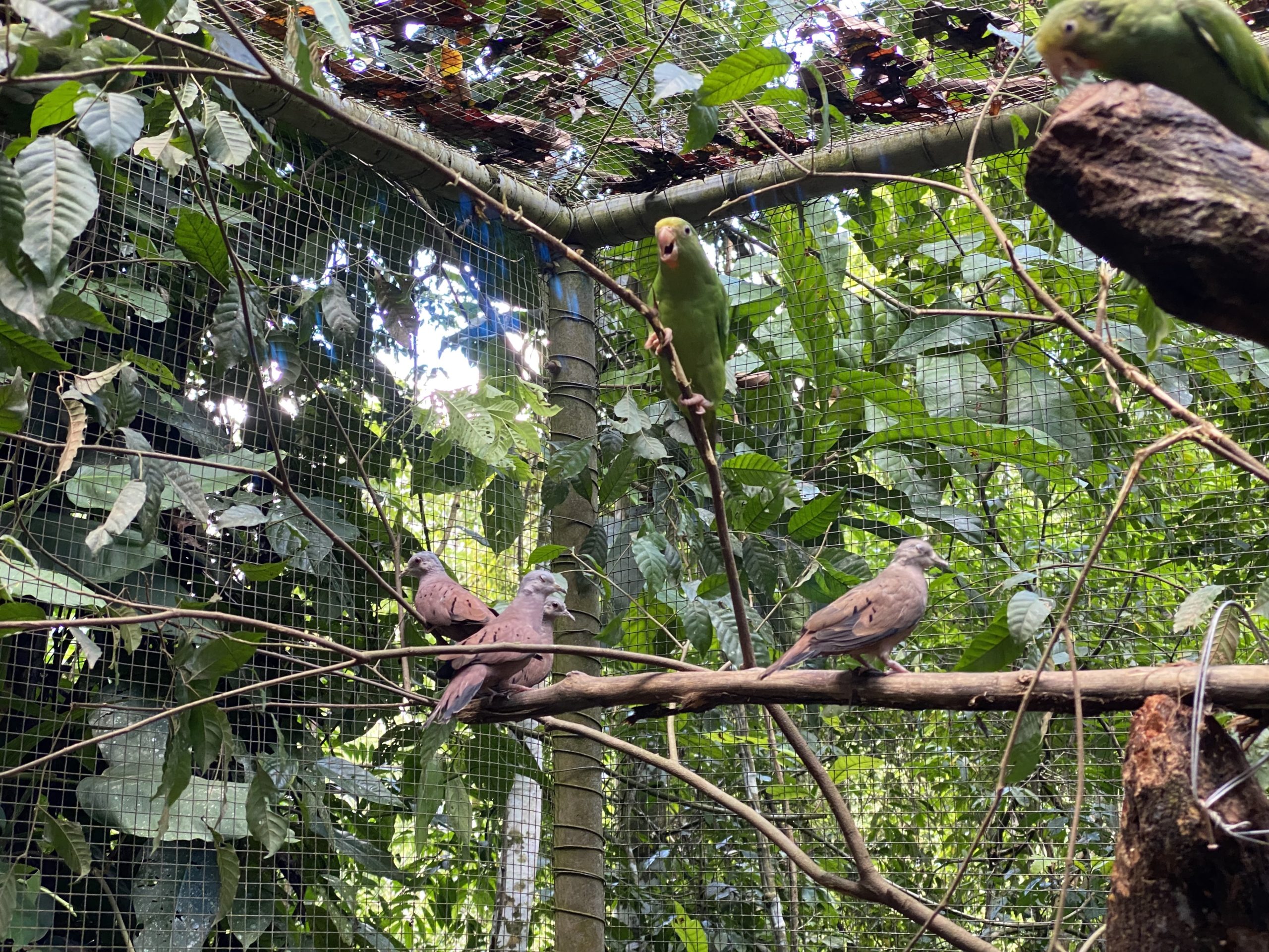 Igor enclosure has welcomed back some old and a new members this month. Chipi, one of our ruddy ground doves was moved to the SUSTOAH after it was noticed Chipi was not using one of their legs. Fortunately, recovery was quick enough, and after only a short stay, he returned to his friends. Pichu (white-eyed parakeet) and Picor (white winged parakeet) who had a long stay at the clinic, were returned to the Igor enclosure, along with new addition Minya (white winged parakeet). All birds are doing well and enjoying the extra space the enclosure provides.