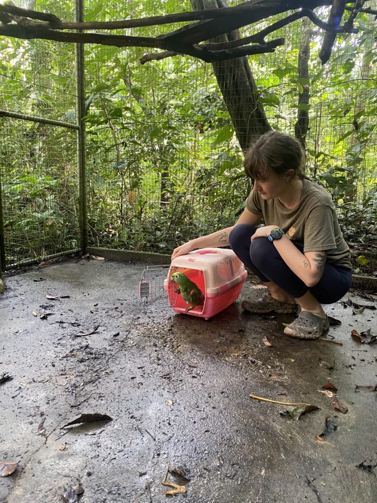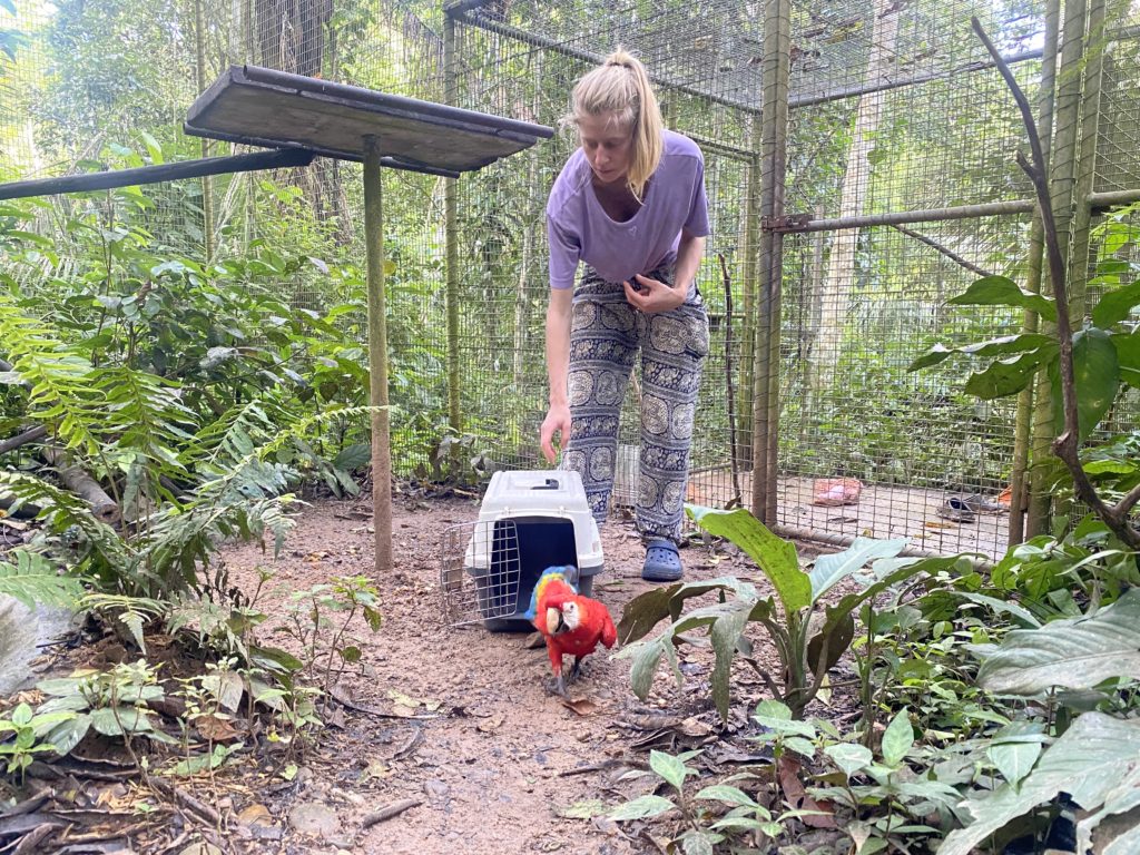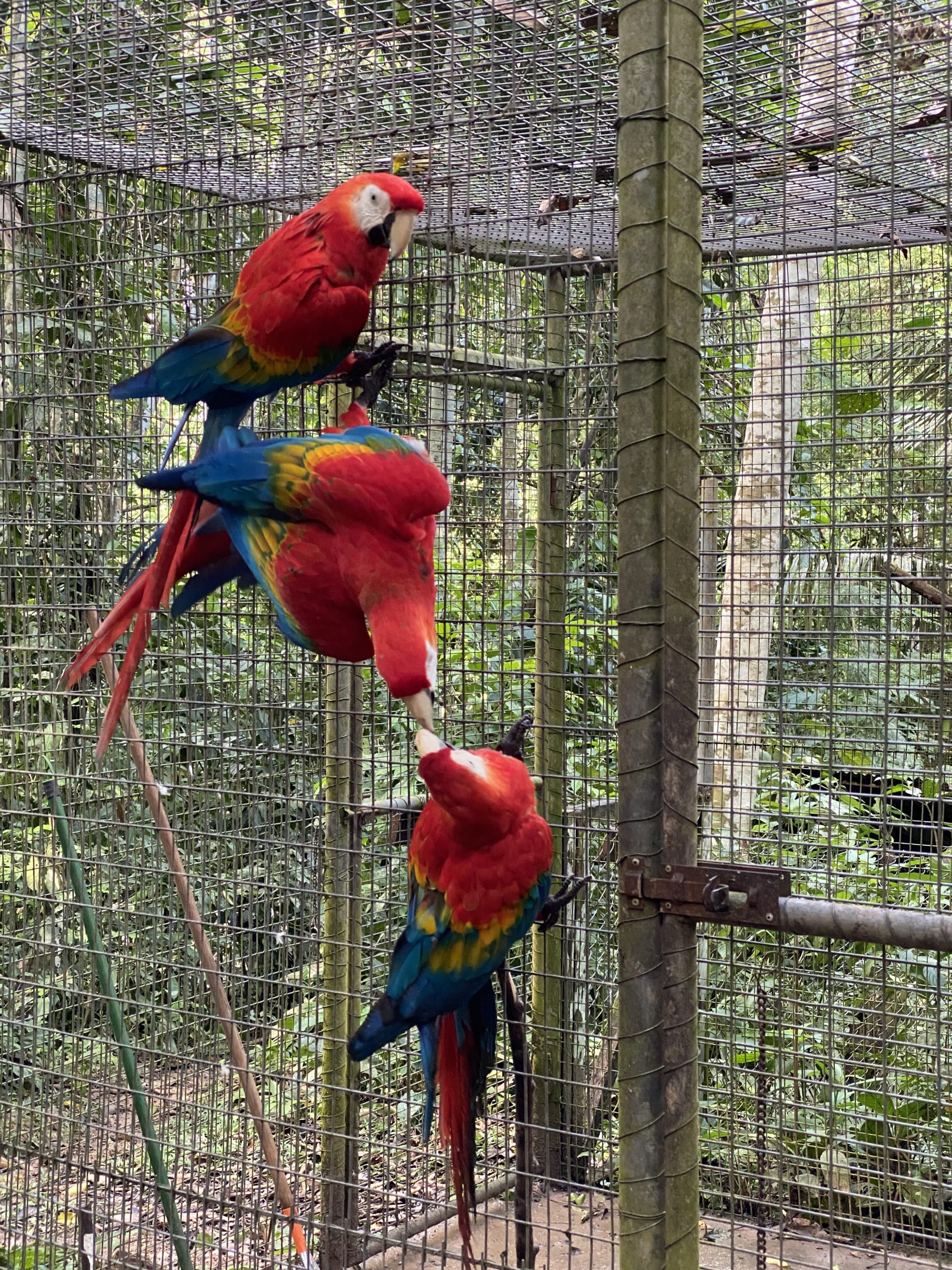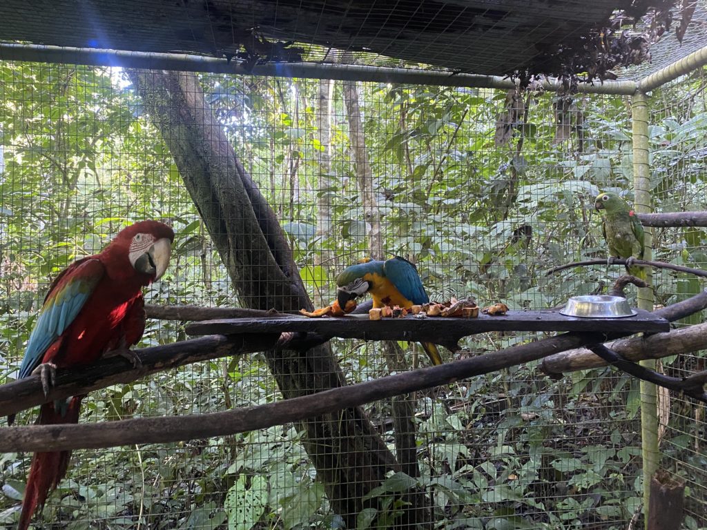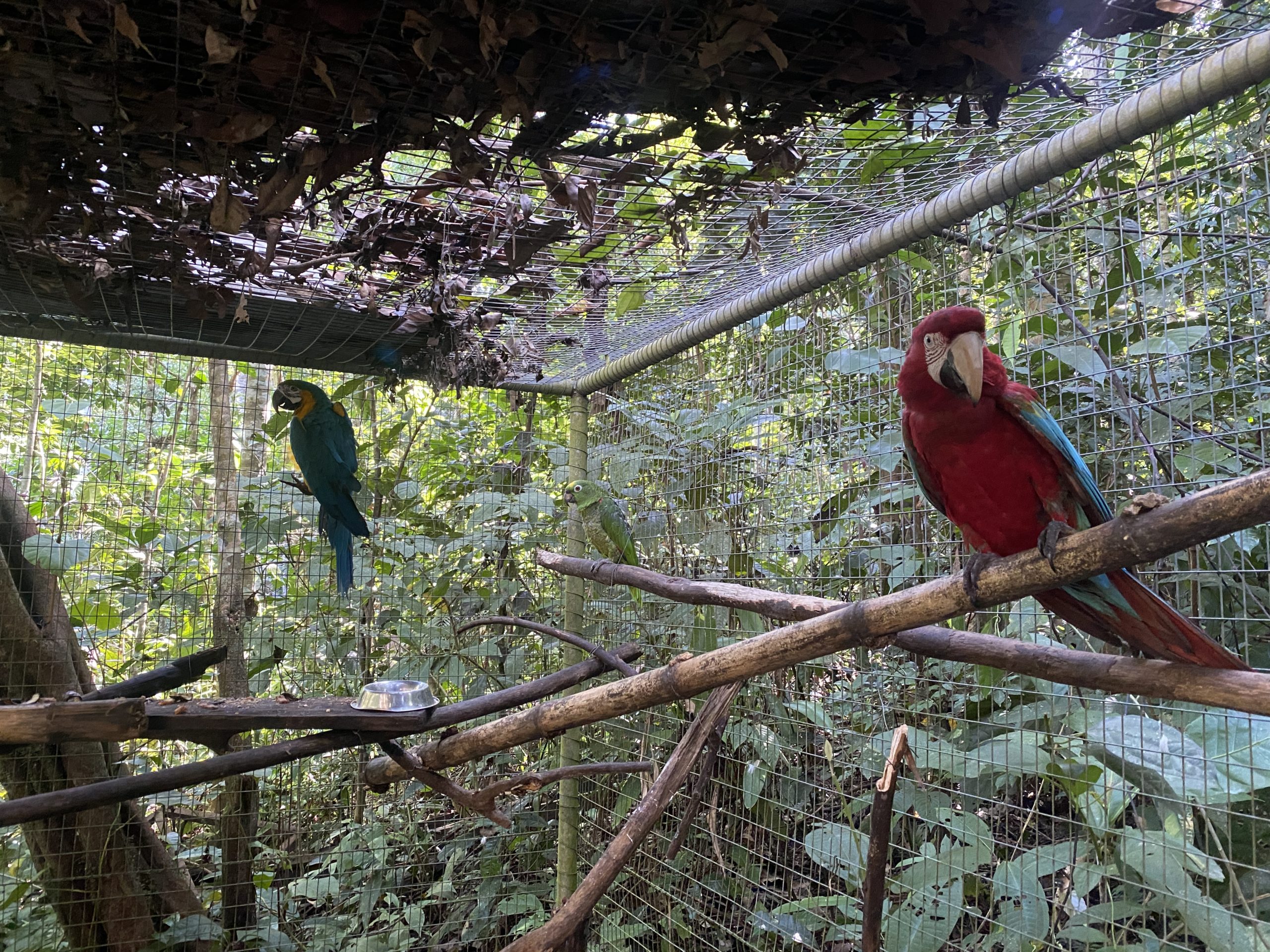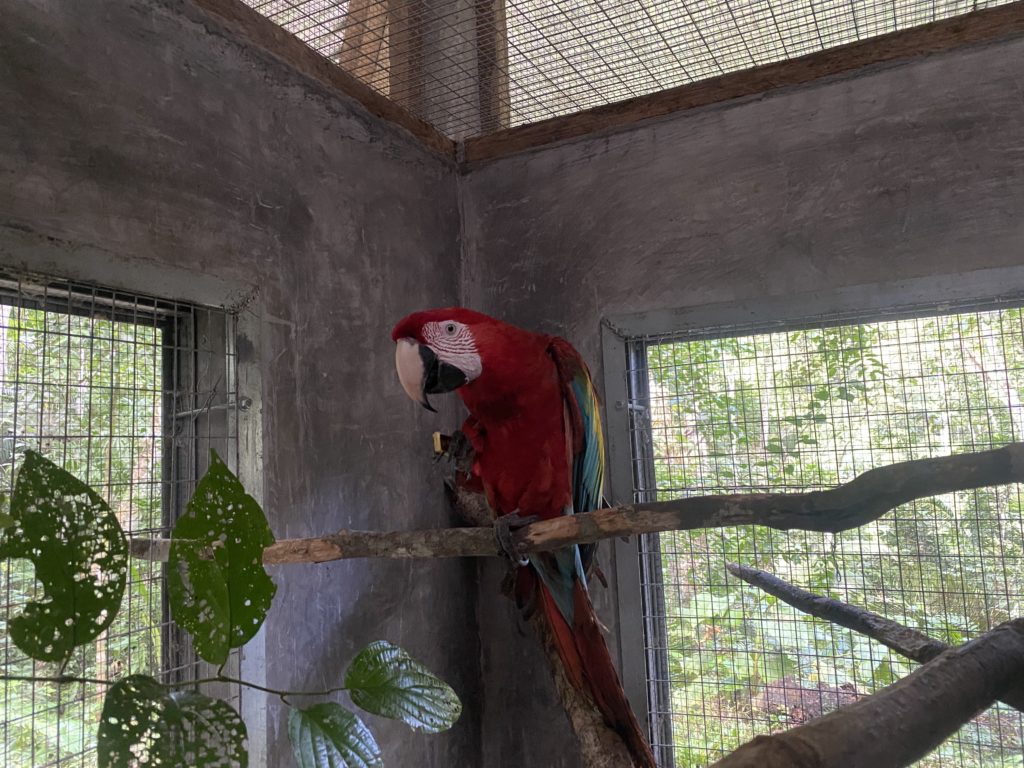 The quarantine building started to get less crowded this month as we were able to move quite a few animals out into their new homes. Rio (green winged macaw), Koda (blue and yellow macaw) and Zuna (yellow crowned amazon parrot) joined the Elmo aviary and Denani (scarlet macaw) moved into Pichu. All the introductions went well, and all birds seemed to have settled in nicely.