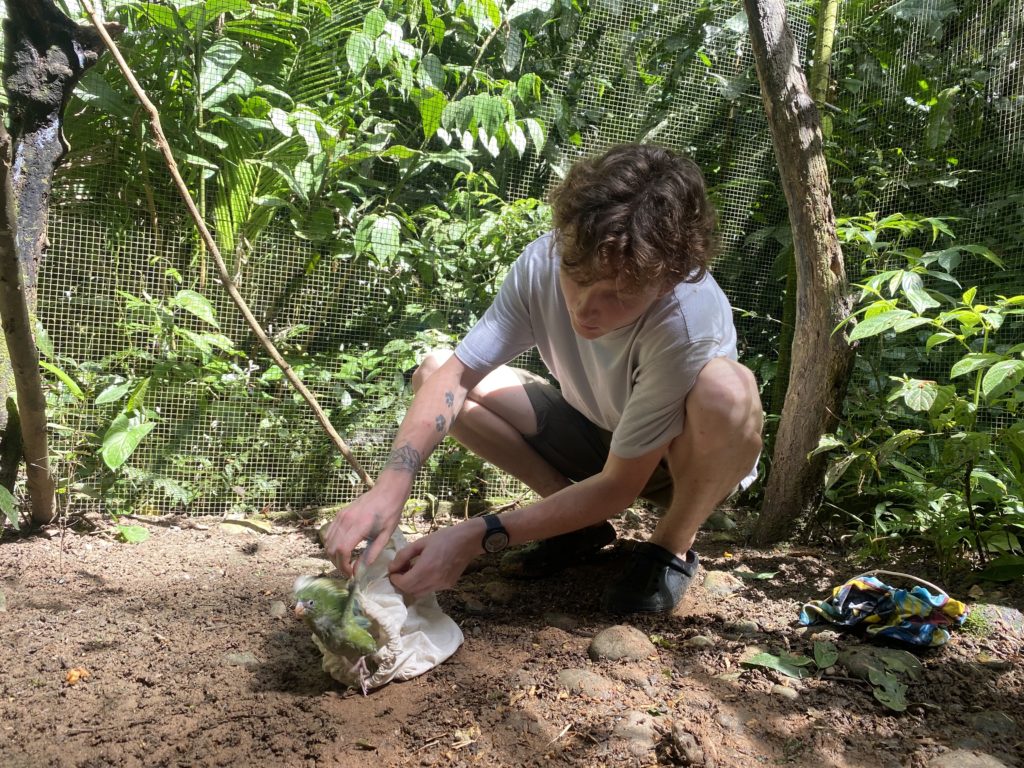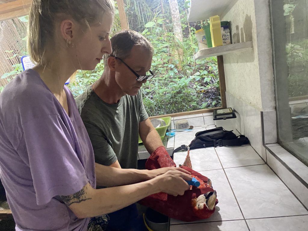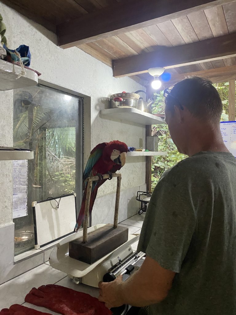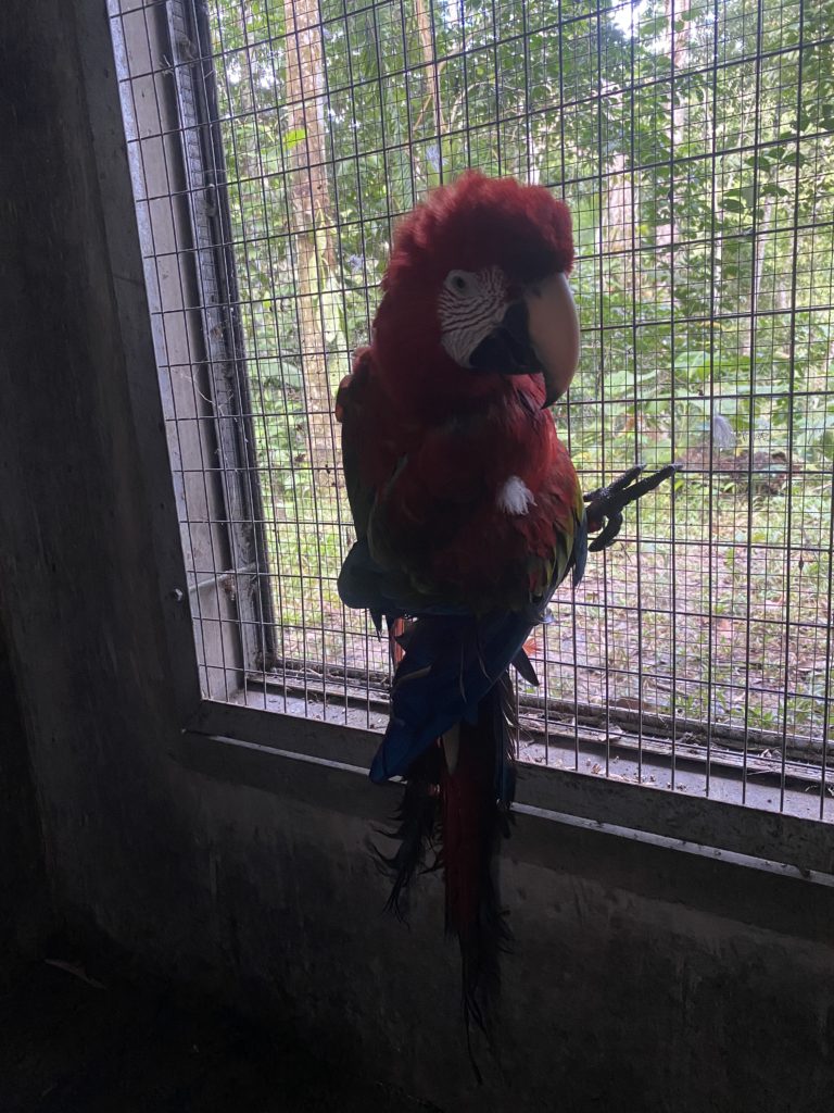 And as always when room is available at Esperanza Verde, it never lasts long before the space is needed again. We got to welcome another member in the family; Rufo, an abandoned green winged macaw with a broken wing. He has clearly been with humans for some time, as he loves to be petted on the head. He was found abandoned by his owners and brought to Esperanza Verde.