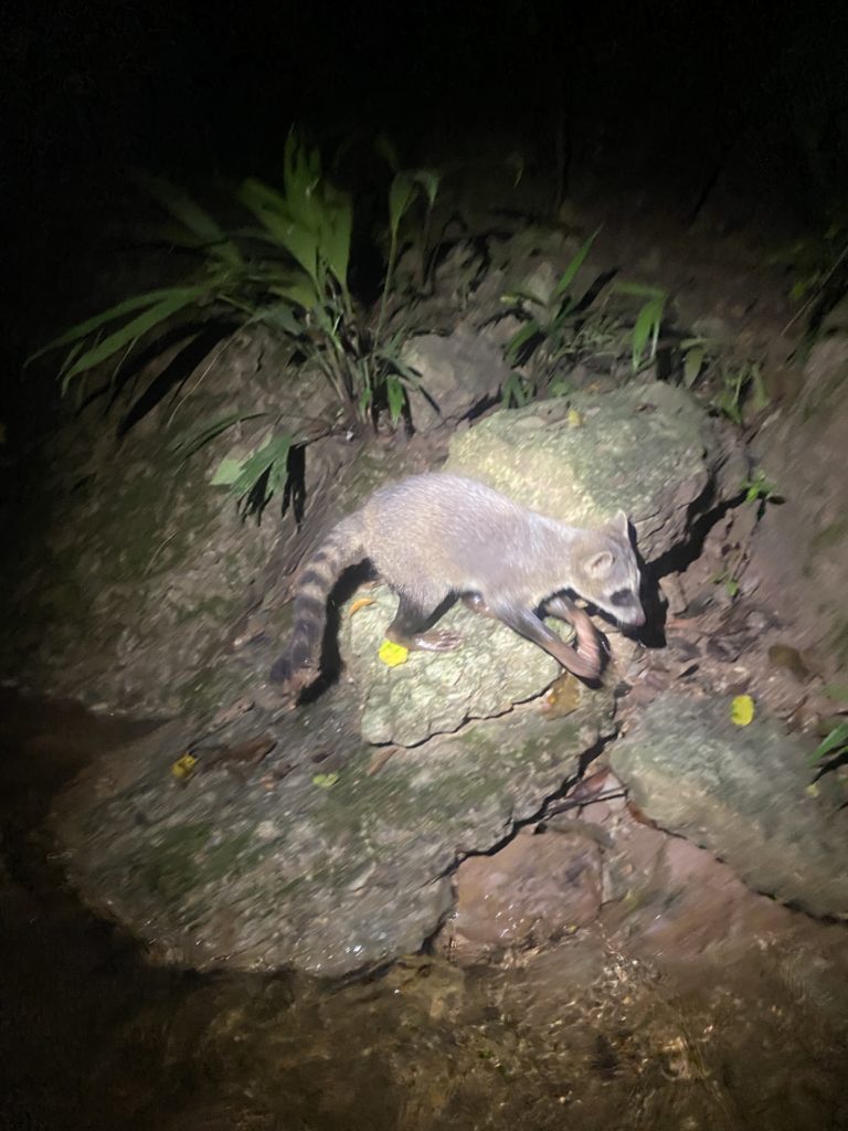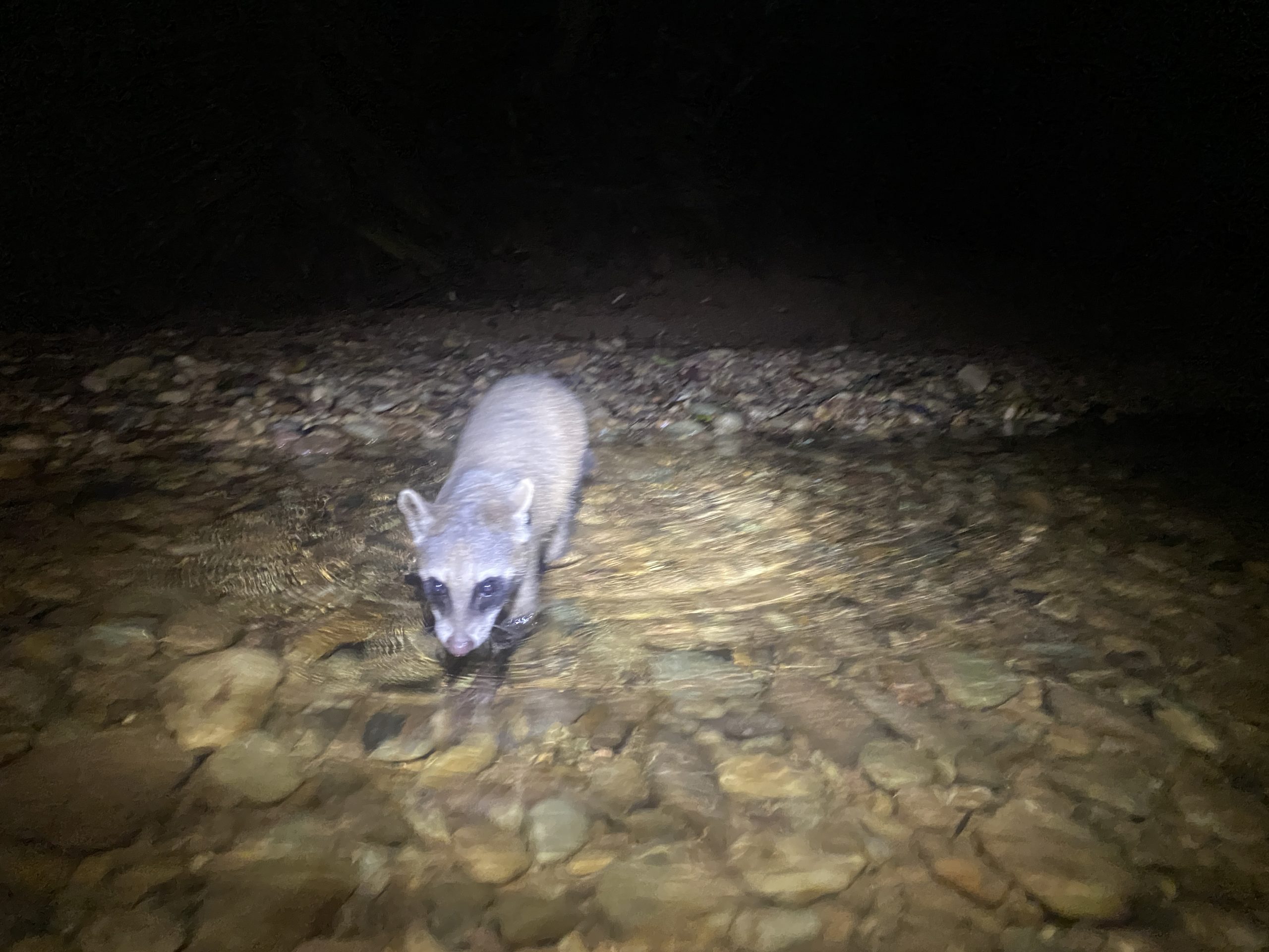 Takido (juvenile male crab eating racoon) also took some exciting steps towards release this month. In the past months he has been taken on nightly walks along the river by volunteers using a lead, but towards the end of the month we were able to start walking him without the lead. Takido appears to be loving the extra freedom along the river route, occasionally disappearing into the bushes but very quickly returning. He also had a few encounters with Payco (free living, adult male crab eating racoon), engaging in a few small fights. Hopefully they will be able to establish a hierarchy between the two without serious injuries, to be able to coexist outside.