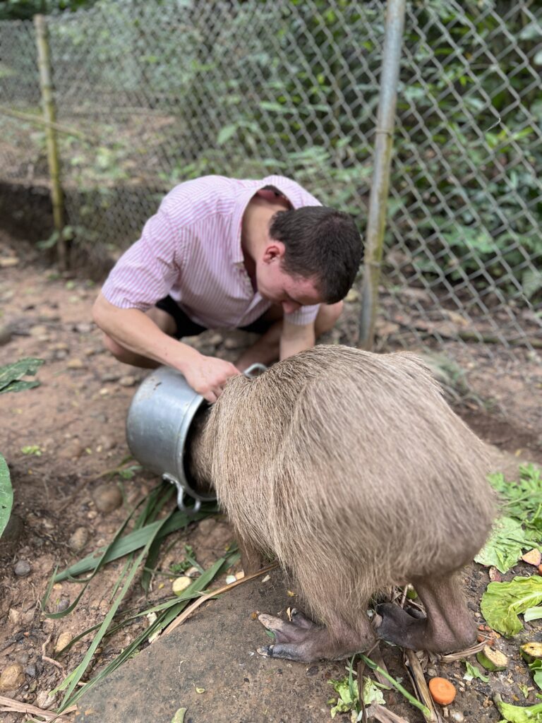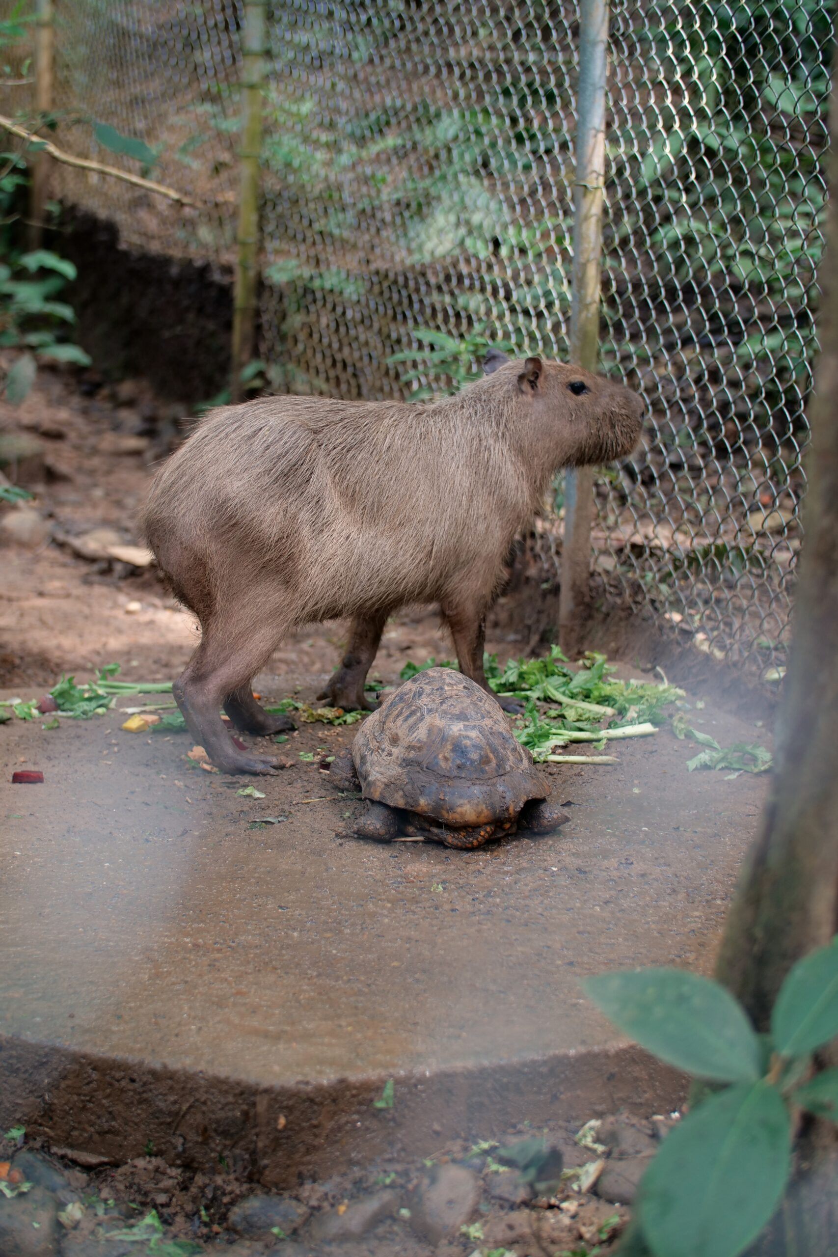 Meet Charra, a young female capybara who was raised to be a pet. Though she’s in good health, she’s also very tame, which makes her an ideal companion for Basco. She’s now busy exploring the clinic’s outdoor area… and enthusiastically mowing down every patch of grass she can find! Who knows, in the future, when it’s safe and a group can be formed, she may be part of a rewilding plan.