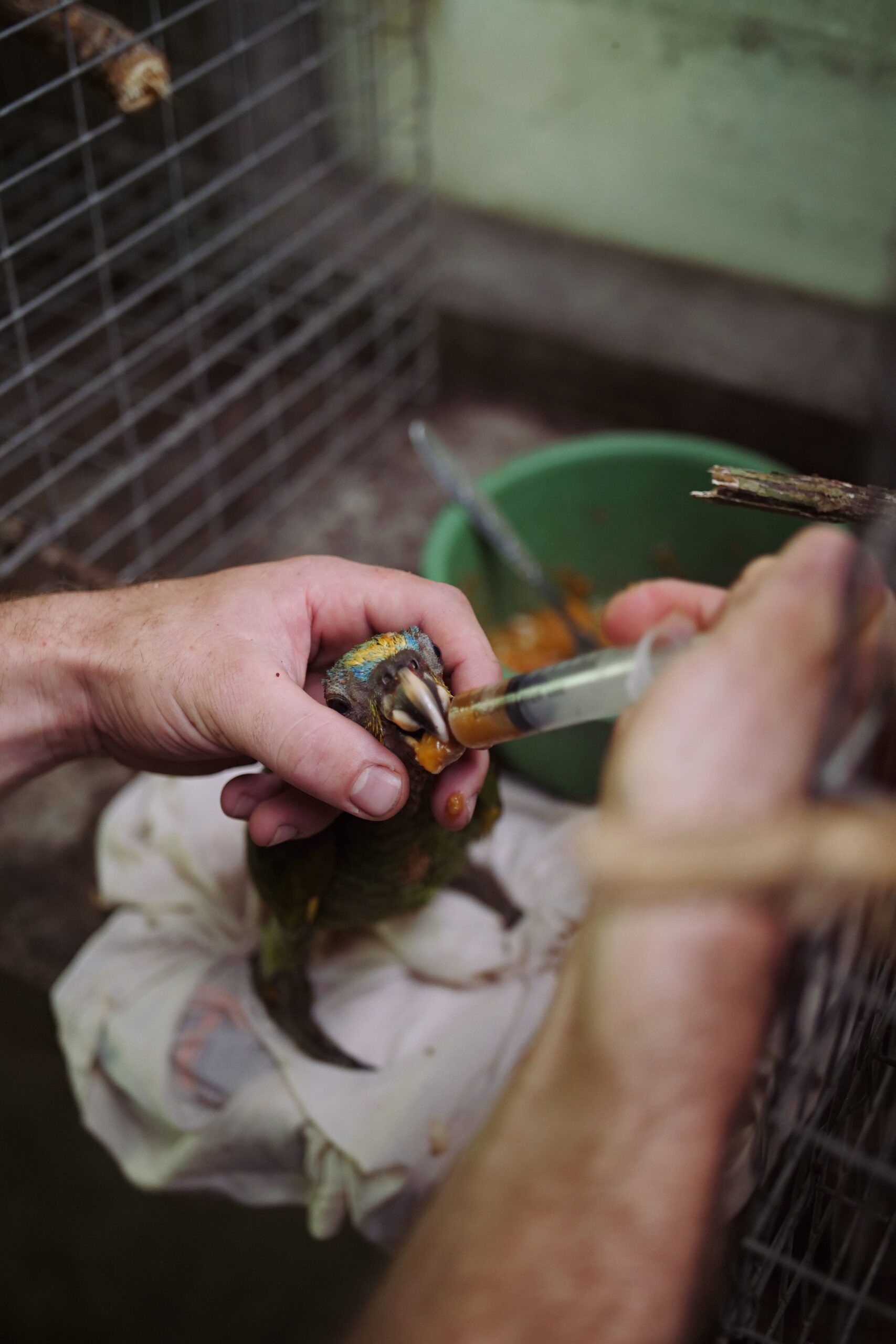 With our team being a little smaller this month, construction work on the new bodega extension (for food preparation and storage) had to be paused, but for good reason! Everyone jumped in to help care for the newest arrivals, especially the fragile young birds. From preparing enclosures and cages to cleaning and handfeeding, it’s been all hands (and hearts) on deck.