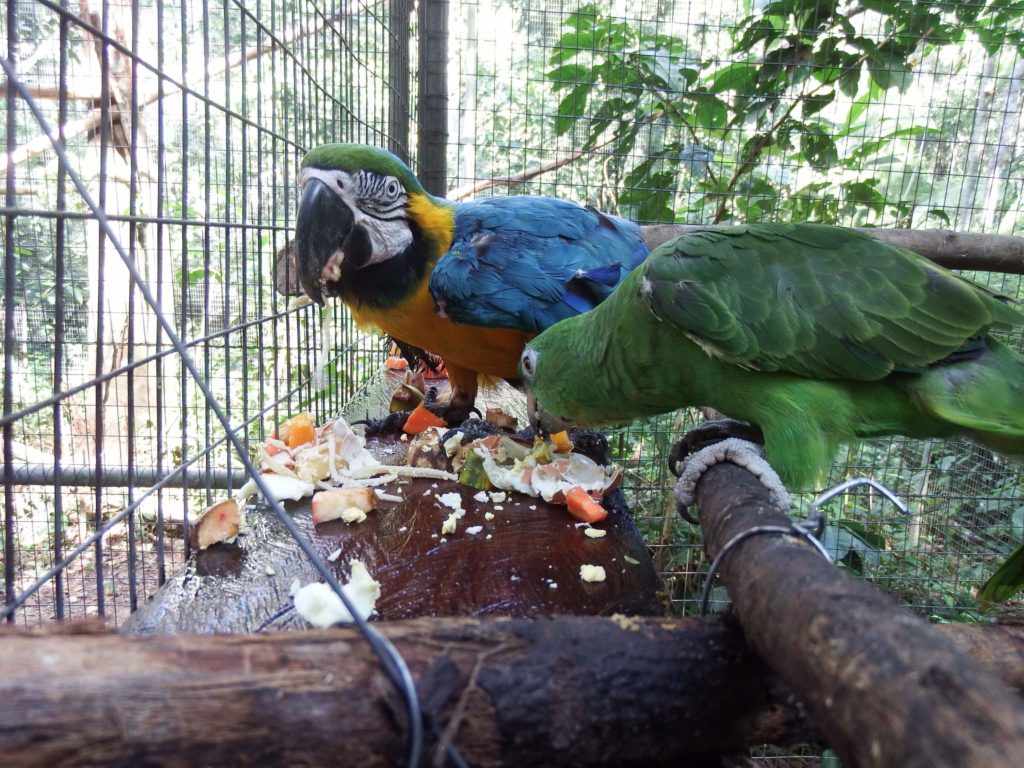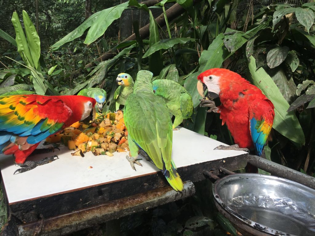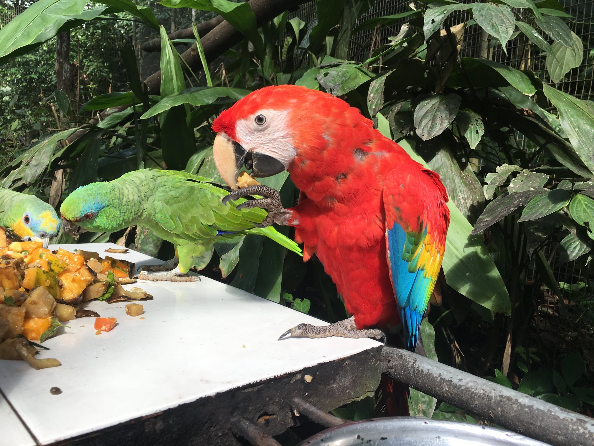 Ashanti (scarlet macaw) made the move into Pichu this month, joining the six other resident scarlet macaws and eighteen Amazon parrots. Ashanti has adapted well and mixed well with the other birds as well as still interacting with volunteers when they enter to clean and feed.