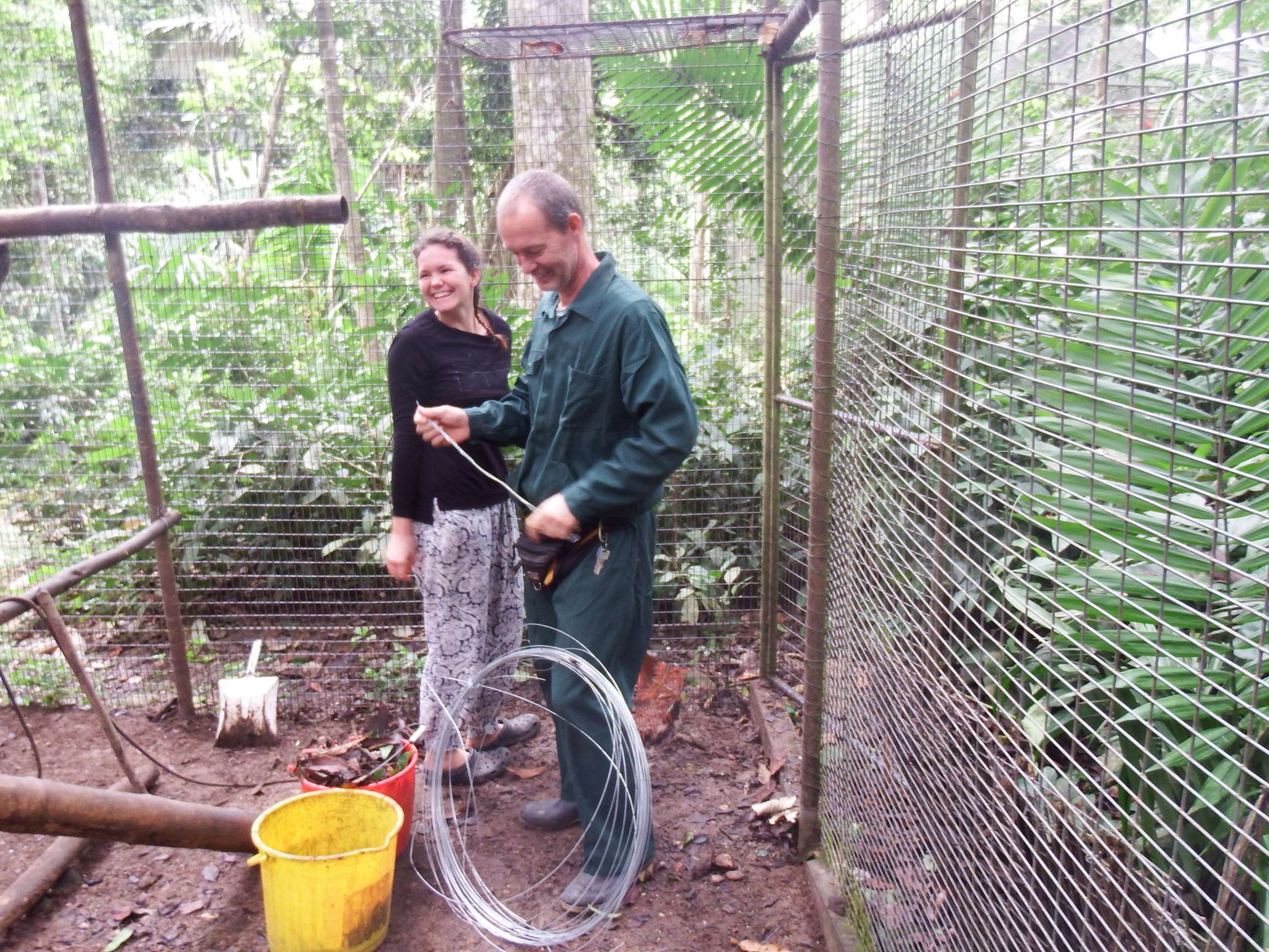 Naka and Talisha (Humboldtâs woolly monkeys) moved into Lulu enclosure for intensive care and treatment as both were looking lighter than expected. They both are dealing with the infestation of a, to us well known, hard to treat parasite (Prosthenorchis elegans). Deparasitation and a controlled diet for several weeks helped them gain back some of the lost weight. Watching Talisha playing while in Lulu is invigorating and heart-warming as we are seeing character and enthusiasm that wasnât always apparent while she is outside. We are happy to say we could let them out again and they were happy to join their fellow monkeys outside again.