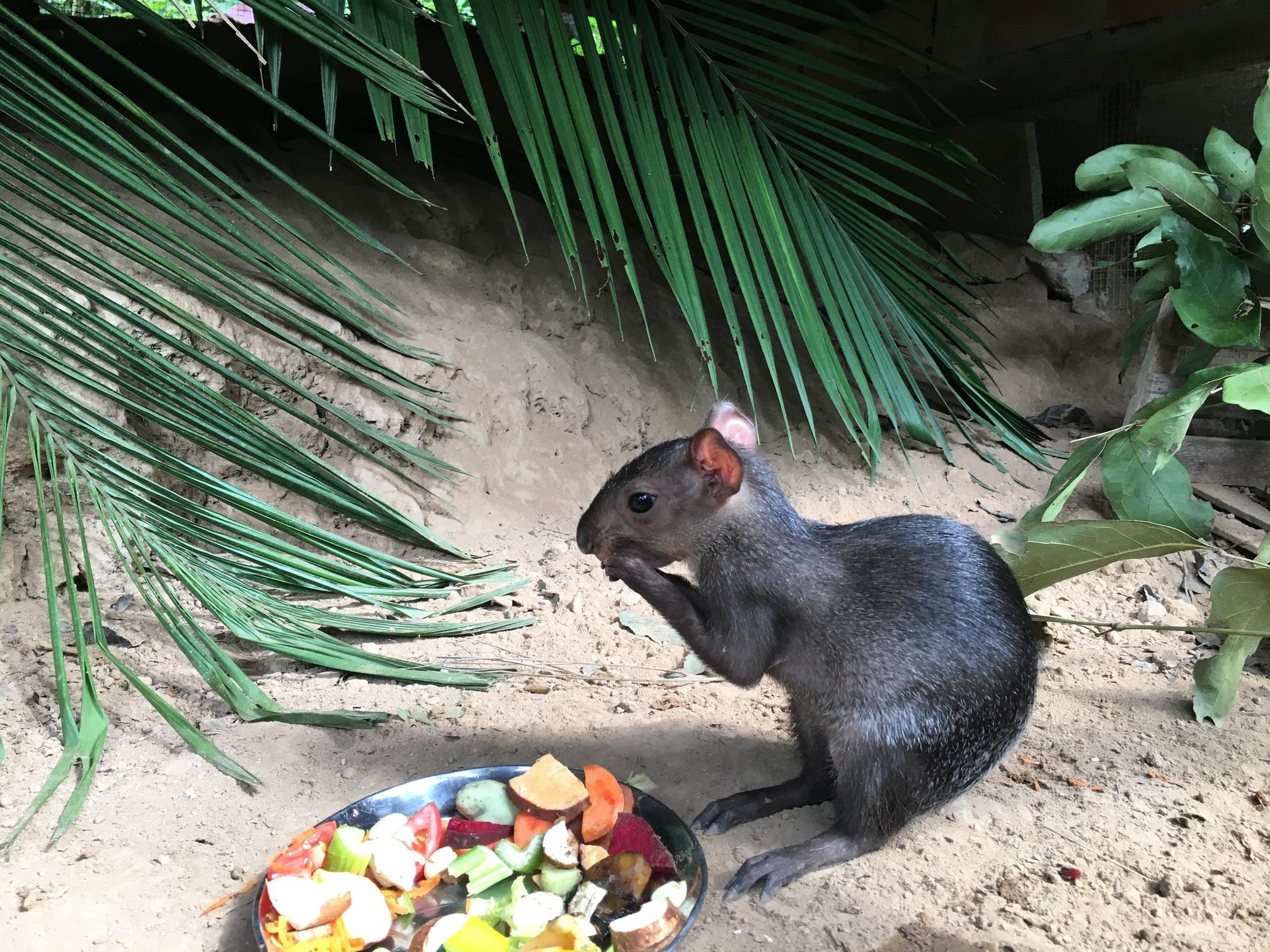 Having grown large enough, Pisco (young male agouti) made the big move from Momo enclosure to join the other agoutis within Pepito enclosure, and was settling in well, being seen feeding each day with the other animals. Unfortunately Pisco took advantage of an opening that had occurred between Pepito and Xena to explore greener pastures. His adventurous nature did not end well, with him falling prey to a territorial peccary.