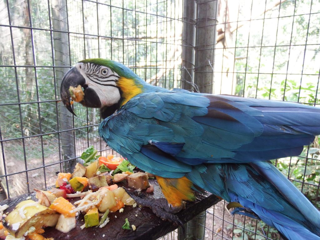 The extra space in Elmo front cage gave us the opportunity to introduce our long term and well-loved blue and yellow macaw Rafiki back into a larger space. Rafiki is being monitored to ensure he is settling in well with his enclosure mates Upendi and Inuka (yellow crowned parrots), and if he is at ease with the other macaws in Elmo main enclosure.