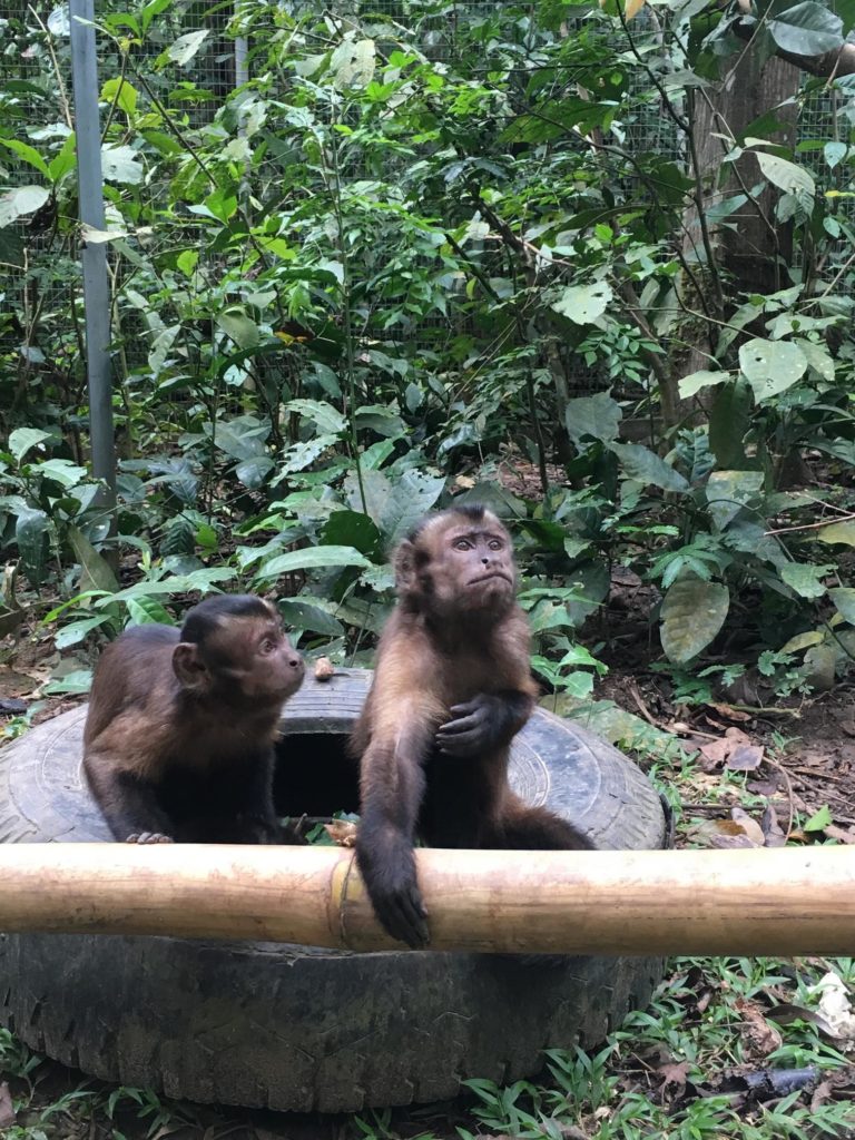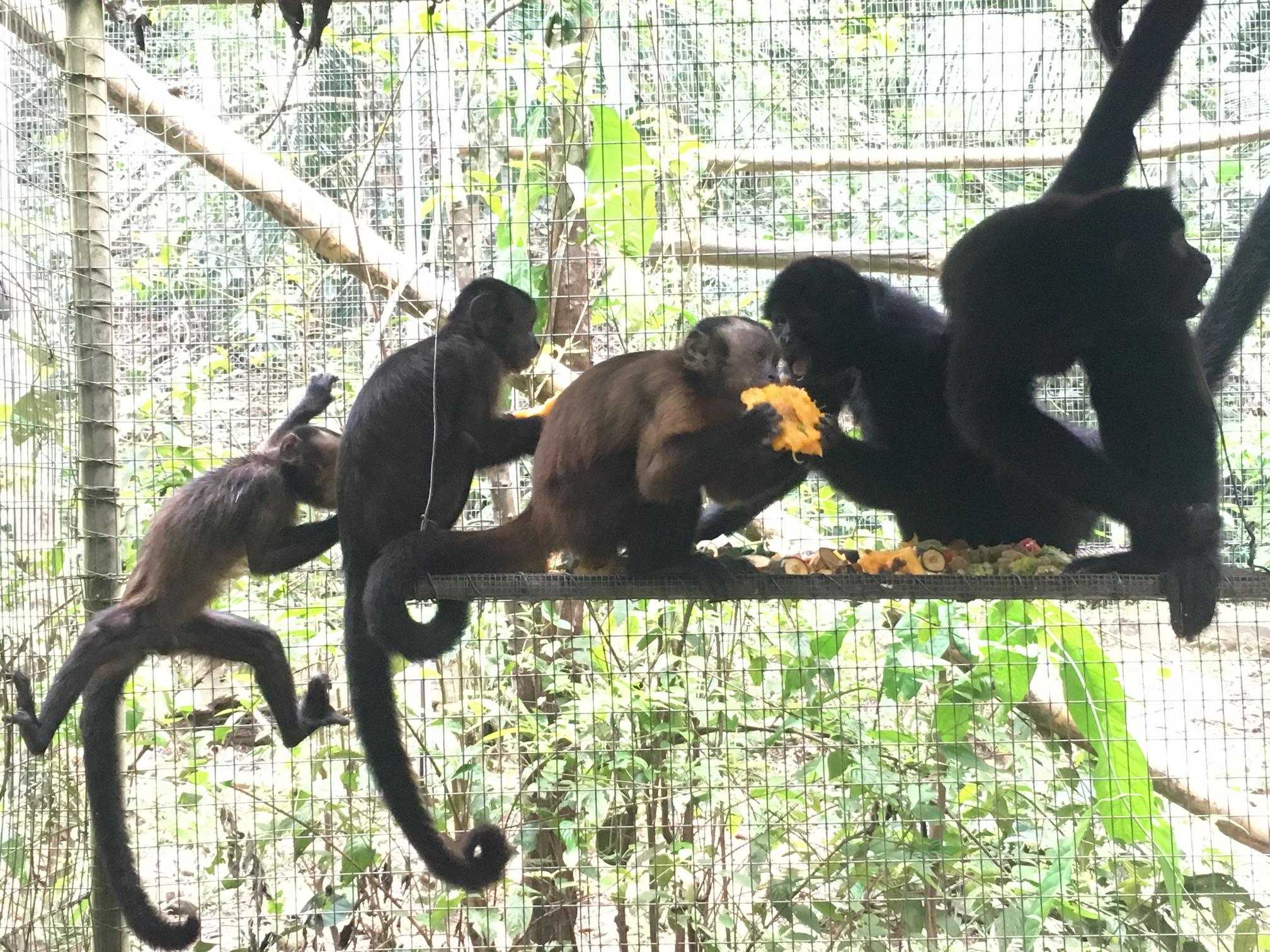 Rimaq and Lucio (black spider monkeys) got new house mates this month. Apollo and Yanamayu (large headed capuchin) were moved from La Sapa to Rimaq. Initial concerns with Rimaq and Lucio not accepting the two capuchins were luckily unfounded and all monkeys involved appear to be adapting well to their new living arrangements, being seen feeding or sleeping together. Moving Apollo and Yanamayu has not only given them a nicer environment, it has also given Kamayo and Loki (Humboldtâs woolly monkey) more space in a newly refurbished La Sapa enclosure making for a more enjoyable experience for all concerned.