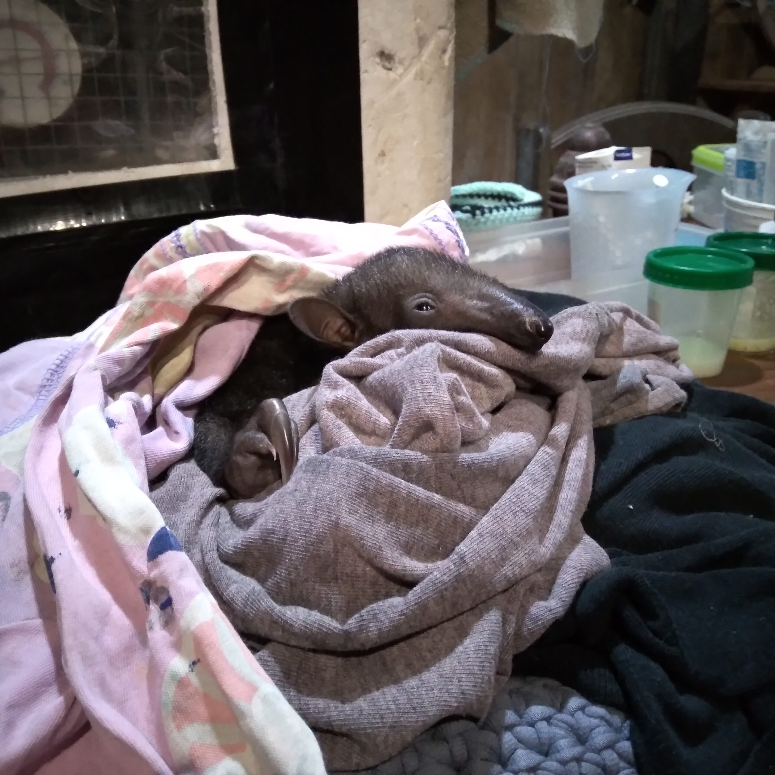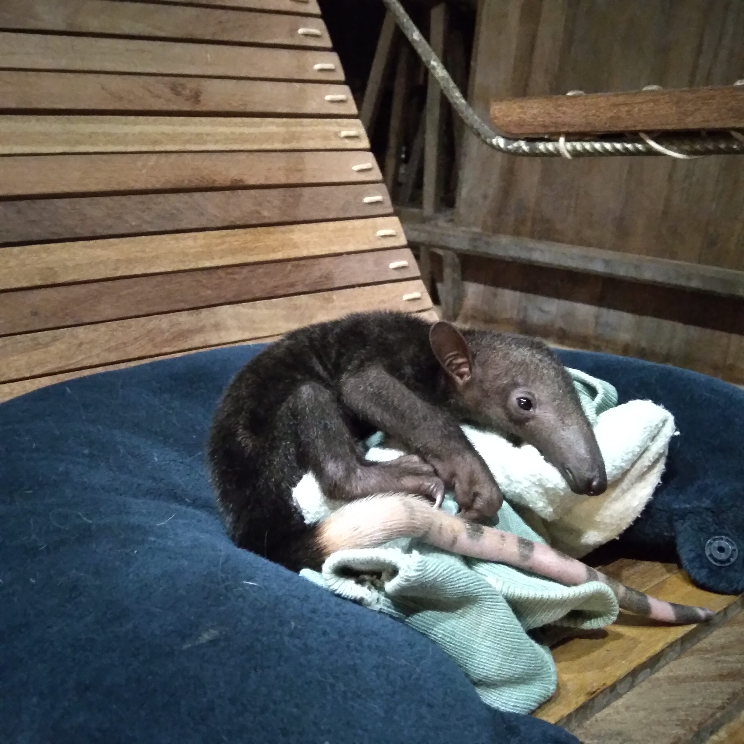 The first arrival was a very young black tamandua (anteater). Due to being taken from his mother at such a young age, he hasn’t gotten antibodies from his mother’s milk – making it exceedingly hard to get him used to milk replacement. We’ve succeeded before, so we had high hopes. Sadly, our efforts couldn’t save him and he passed a couple of days after arriving.