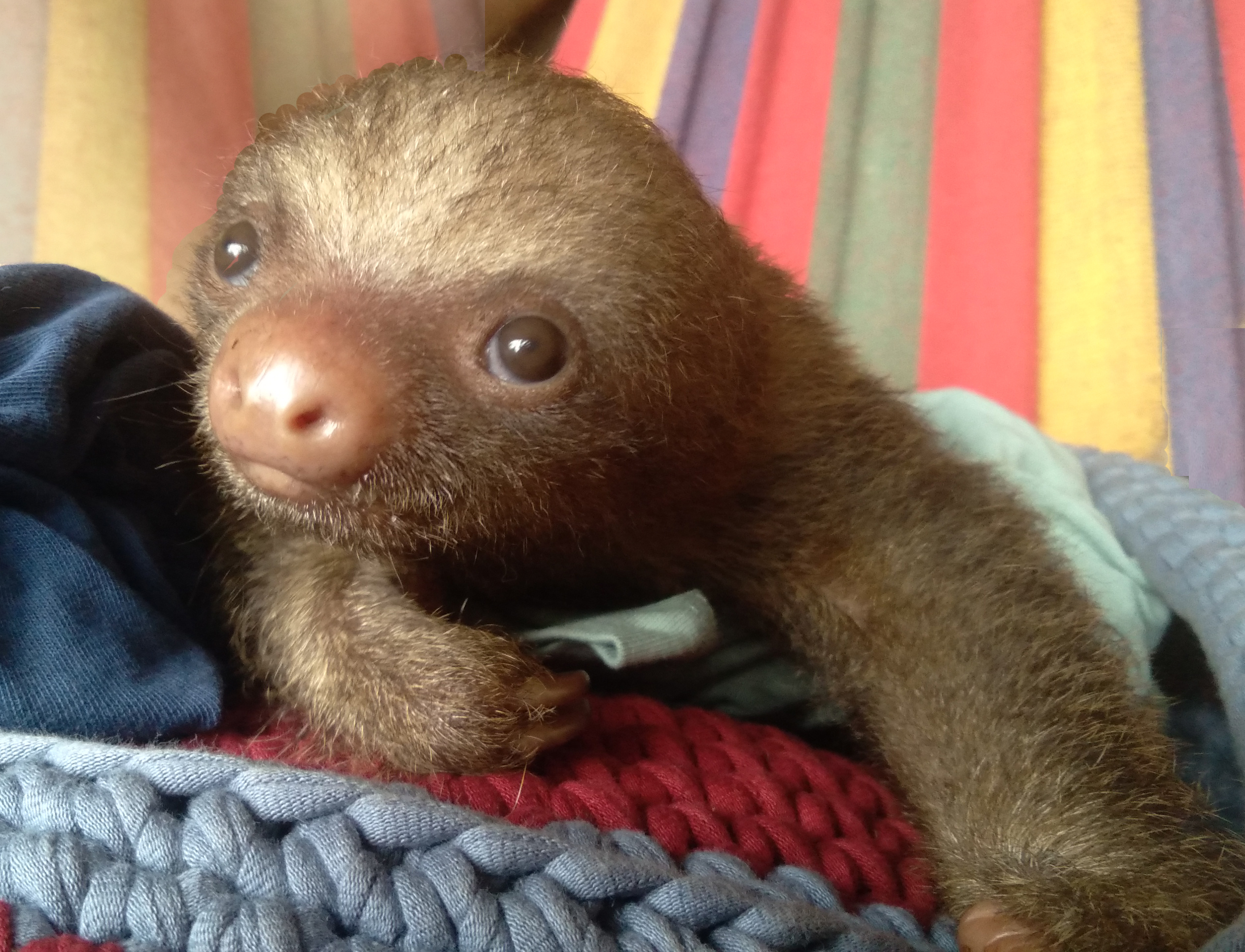 We don’t get a lot of time for mourning, as there’s always someone else in need of a helping hand. We present to you Kelso: Another cute baby came, a two-toed sloth. At only a couple of months, he’s in the experienced care of Douwe and Olivia. Munching away at fresh and steamed leaves and adjusting to the goat milk Douwe brought back home, generously donated by the Emmi Nutritional Solutions International from the Netherlands. Thank you, we already have been able to raise several animals with your milk!