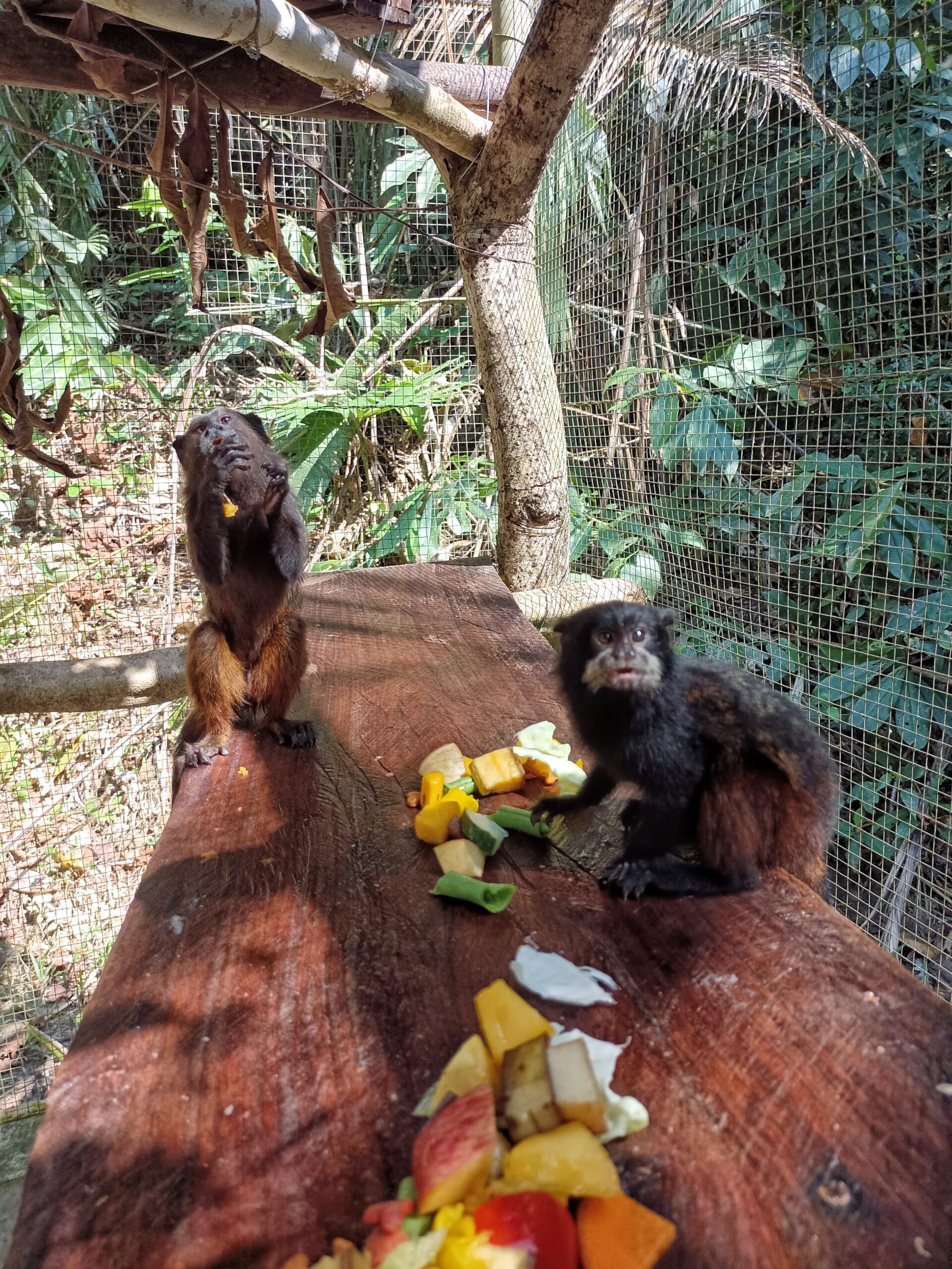 And then there was a big batch of new furry, fluffy, and scaly faces. Despite the increasing workload and decreasing hands to help, we still don’t know how to say no to animals. After all, there was space in the quarantine, and we’re the only rescue centre in the region. So, we welcomed 19 new animals: one small yellow-footed tortoise and three large ones, three orange-winged amazons, one mealy amazon, two festive amazons, another blue-headed parrot, two white-winged parakeets, one blue and yellow macaw, a white-throated toucan, a paca, a woolly monkey, and two tamarins.