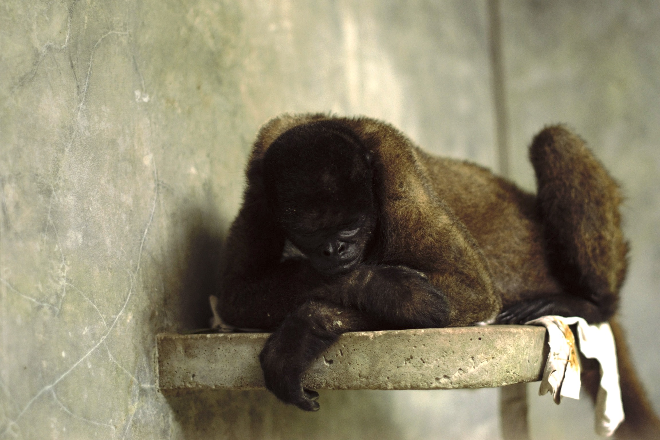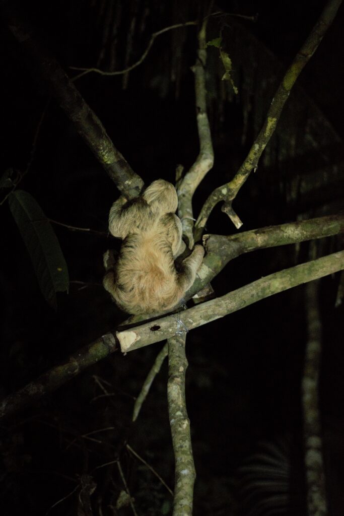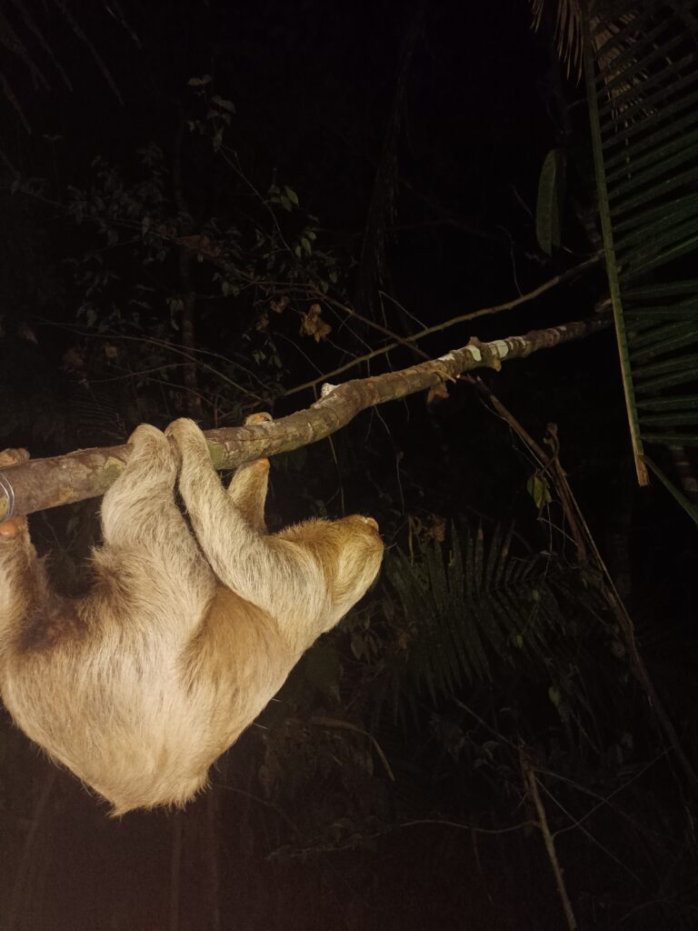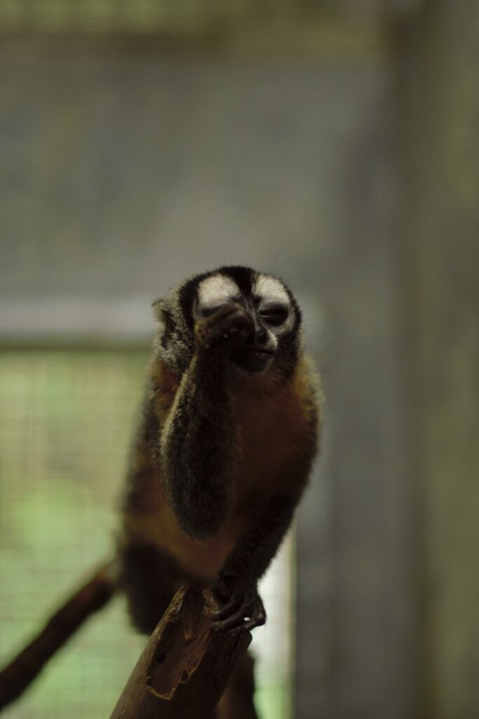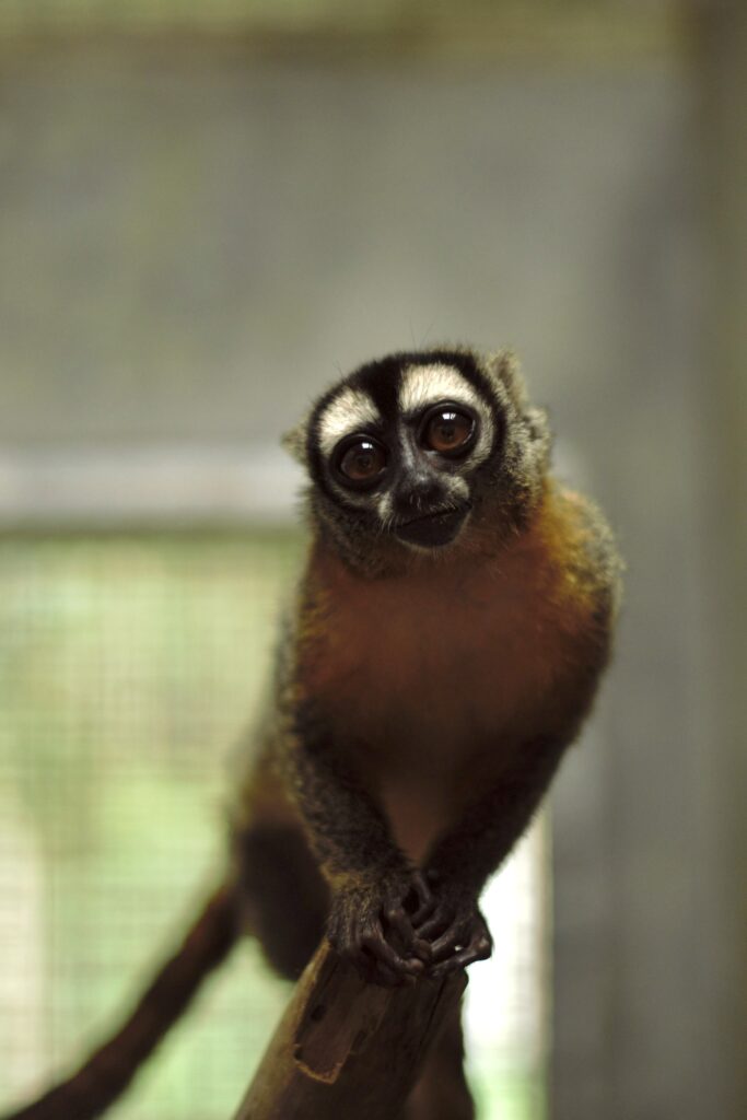 Otis, an adult male night monkey released years ago, and still hanging out around the family house, received a one-way ticket to SUSTOAH, as he was not using his left leg and had a wound on his back. This leg is the same one he injured years ago, and the muscles have atrophied since. Our volunteers are eager to assist in his recovery, who wouldn´t want some night monkey cuddles…