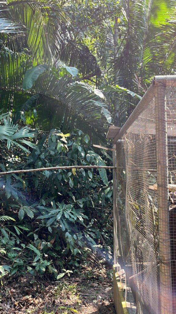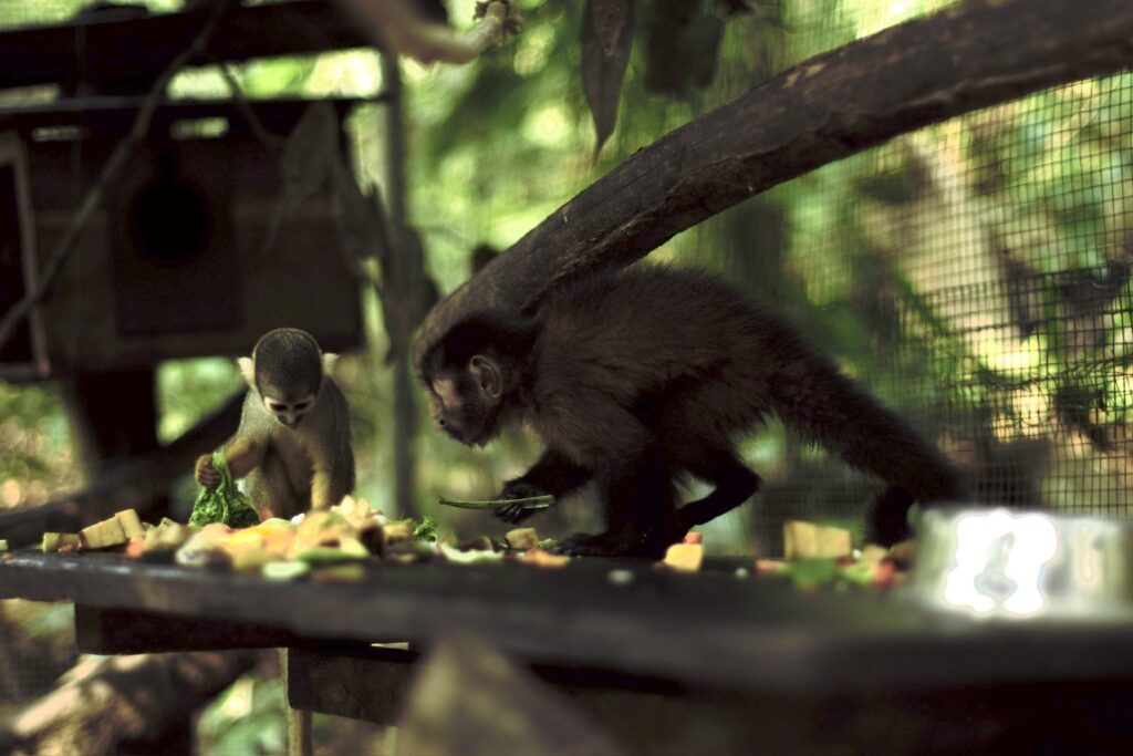 Amaya, the young female large-headed capuchin, was moved to an outdoor enclosure where she can scope out her future kingdom at Esperanza Verde! In the evenings, she’s joined by the adventurous trio of squirrel monkeys – Dina, Mina, and Syenna who are still finding their grounding in the wild. The outside capuchins quickly caught on to Amaya’s arrival and have taken it upon themselves to be her guardians (especially Daytona), shooing away any pesky spider monkeys or mischievous other critters that dare to lounge on the roof. Talk about a warm welcome!