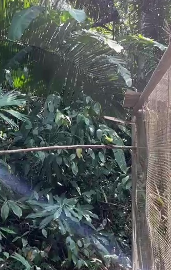 During the cleaning of the Pichu enclosure, we discovered that Lina, an orange-winged Amazon, wasn’t flying. Further inspection revealed that her wing feathers were ripped, likely due to bullying from another bird. She was taken to SUSTOAH for treatment before being moved to a small cage in the outside enclosure for the non-flyers (Igor), where she’ll gradually be reintroduced to the other feathered friends.