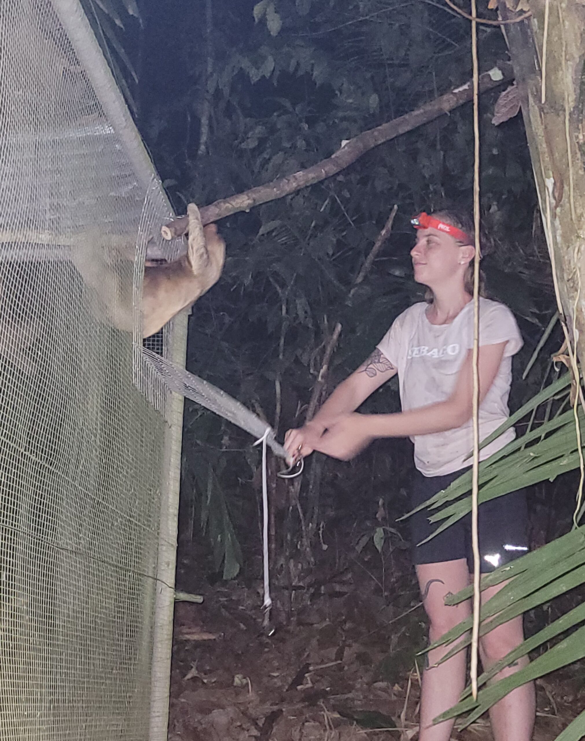 - Kelso, the two-toed sloth, has grown into quite the big boy. He was growing tired of the daily visits to the plantation and wanting independence. We gave him a hatch in his enclosure and added branches leading to nearby trees. He explored his surroundings the first night and has consistently returned for breakfast, enjoying the best of both worlds.