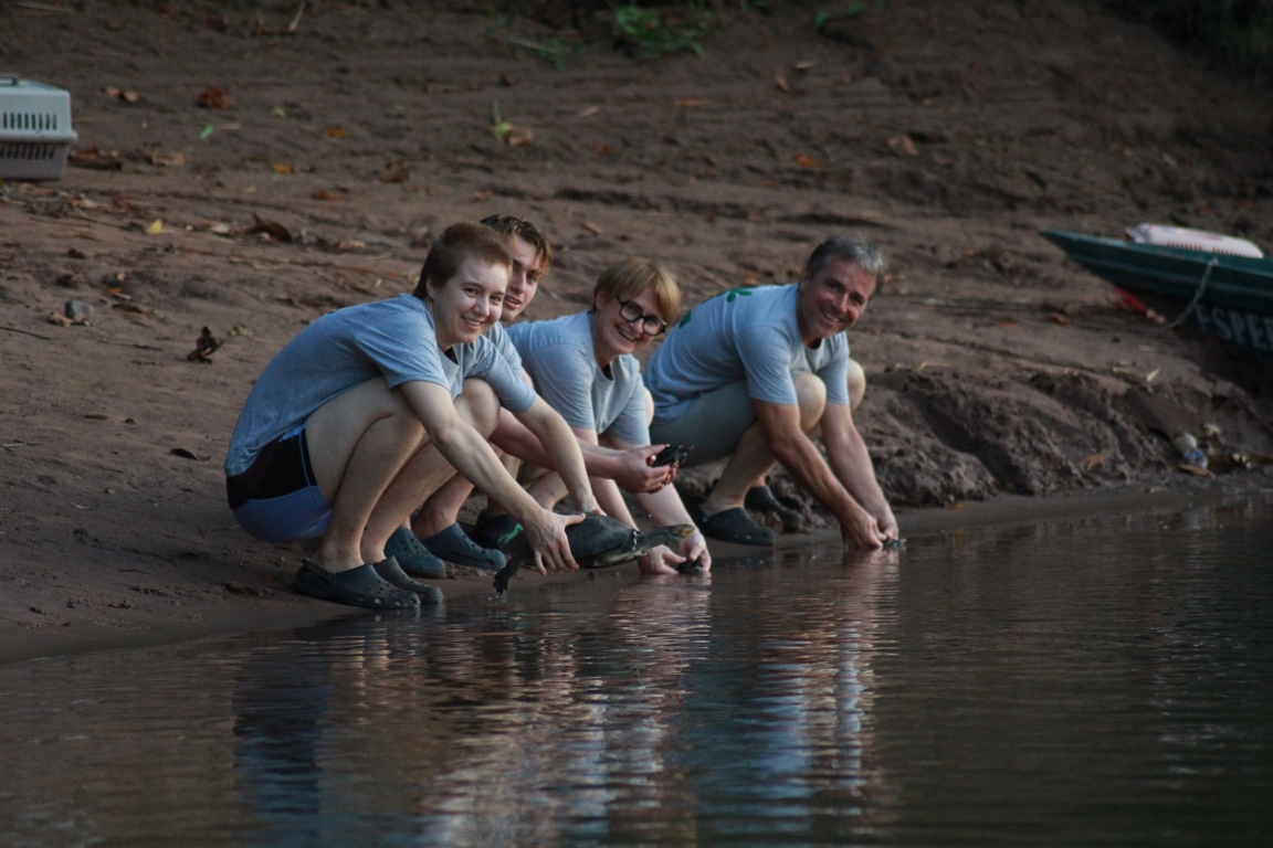 August brought a stubborn dry spell, making leaf walks tougher and prompting monkeys to chew on hoses to clench their thirst. After several fruitless rain dances, we all decided to cool off with a refreshing swim in the crystal-clear river at the port—what a welcome escape!