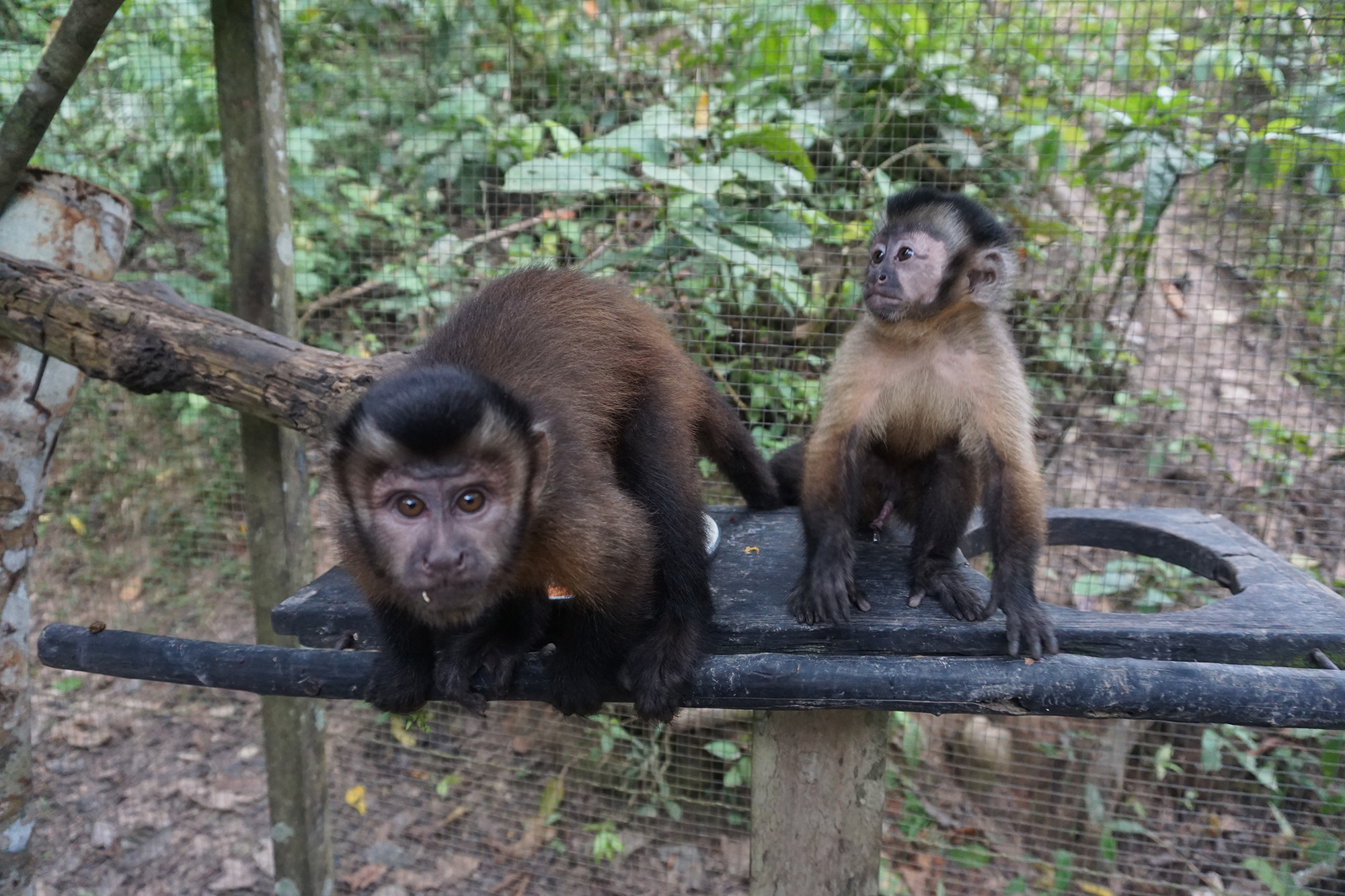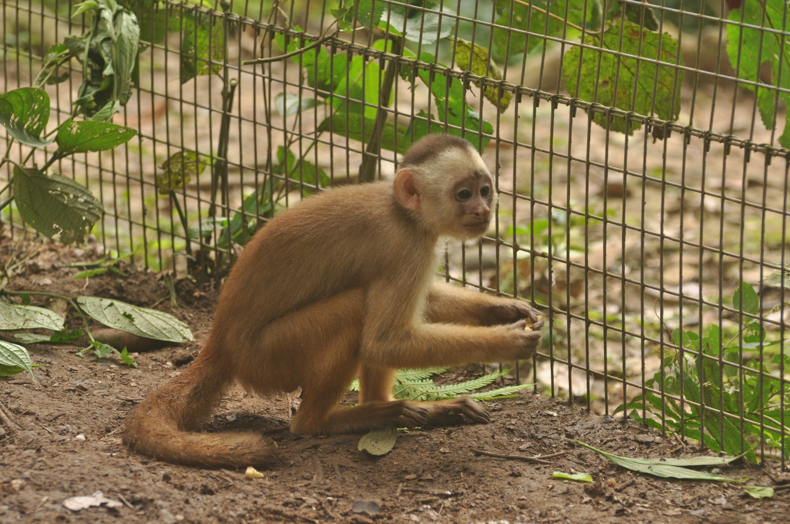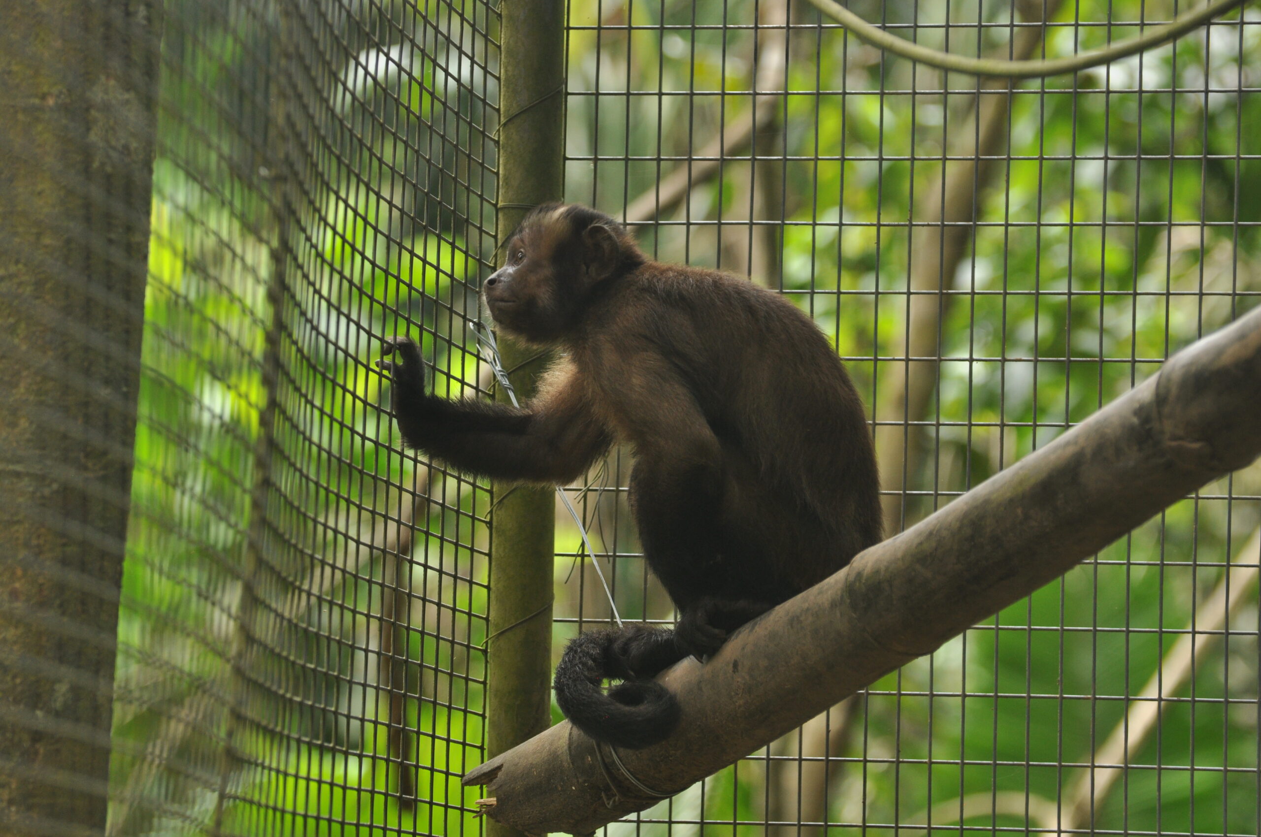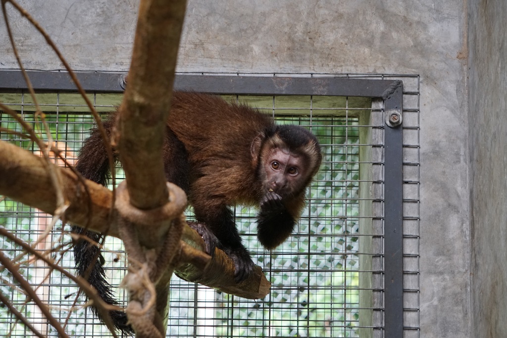 Having spent a lot of time in captivity prior to arrival at EV, Kres (female large headed capuchin monkey), has always been a monkey which would rather try and interact humans than with her own kind. She has always been the first one to show us the shortfalls of any of our security designs. Recently she has learnt how to remove the wire which we keep on our most secure cages. With this, and increasingly destructive behaviour around the EV, the difficult decision was made to put Kres in La Sapa with Apollo (male large head capuchin), Nando (male white capuchin) and Cesar (male spider monkey). It is never the aim to enclose animals unnecessarily, but we hope that this will prove beneficial in the long run as the three capuchin monkeys might build a “family unit”, and when they are released stand a greater chance at survival together.