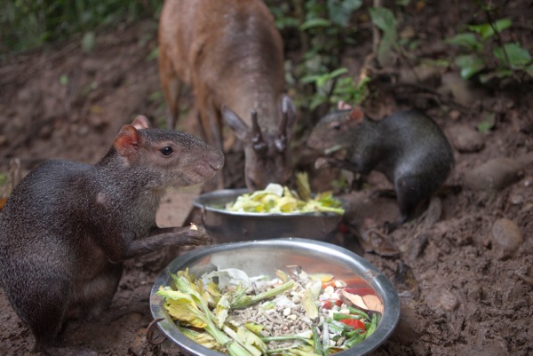 Rino, Celia and Merida (male and two female White collared peccaries) were dropped off on the first day of the month. They were all very young, but were in good condition as they had been purchased by a very kind gentleman in Pucallpa wishing to save them from becoming bush meat. Douwe did a lot of explaining about how this kind of purchase just stimulates the trade in wildlife, however we’re not sure if this message was really heard. Douwe and Olivia have always worked hard to explain that we will never purchase an animal and that all purchasing, in the long run, does more harm than good as it adds to the illegal wildlife trade.