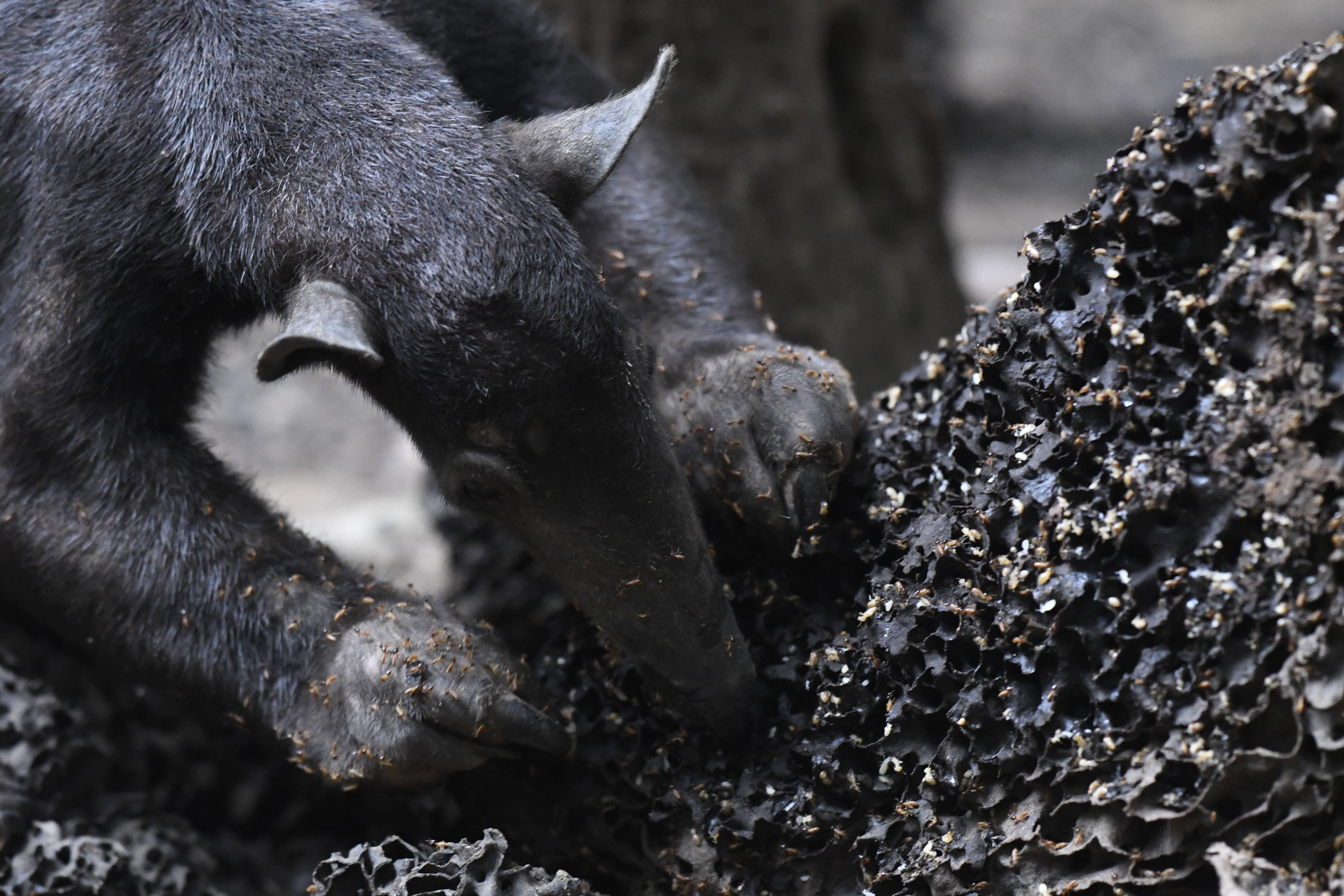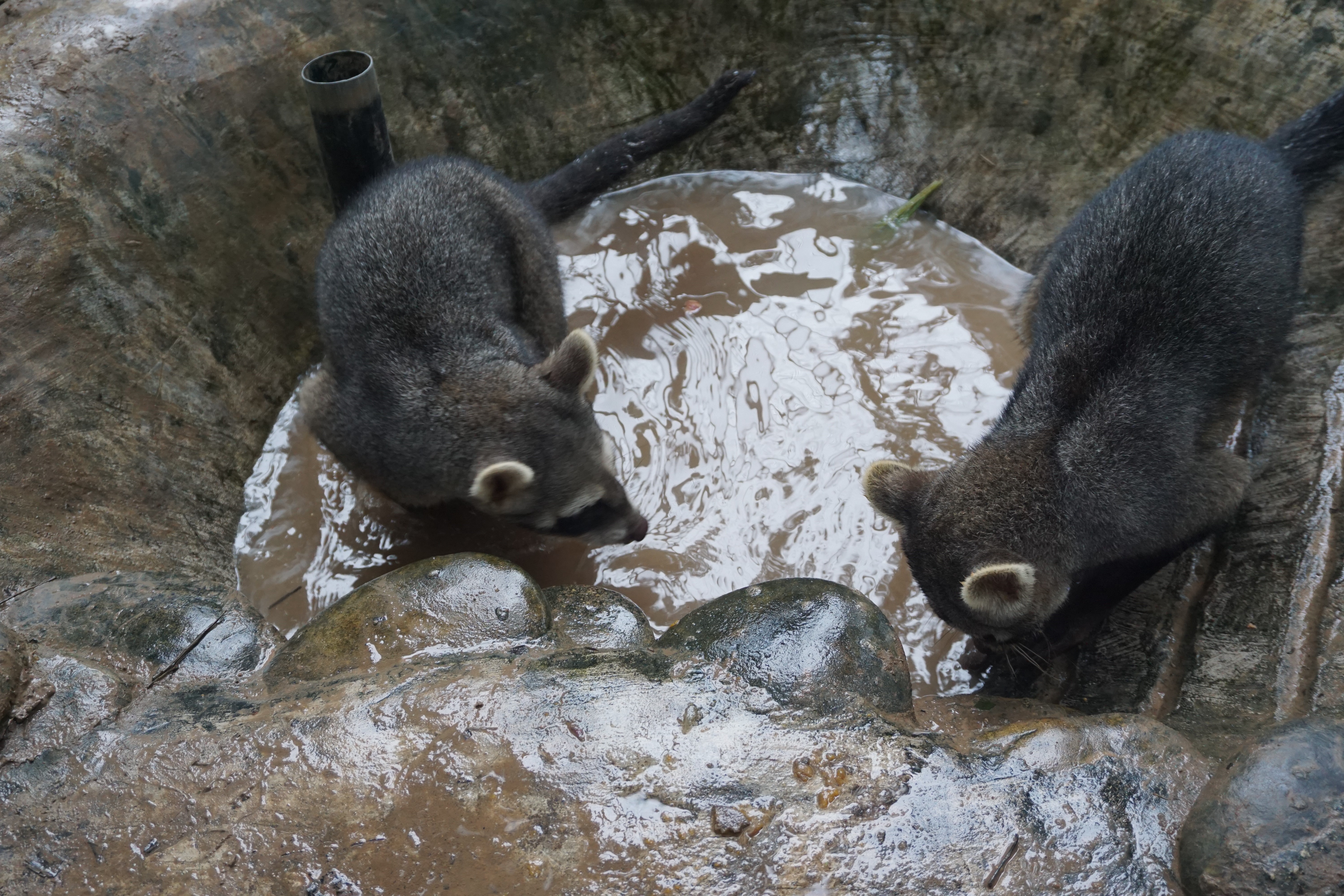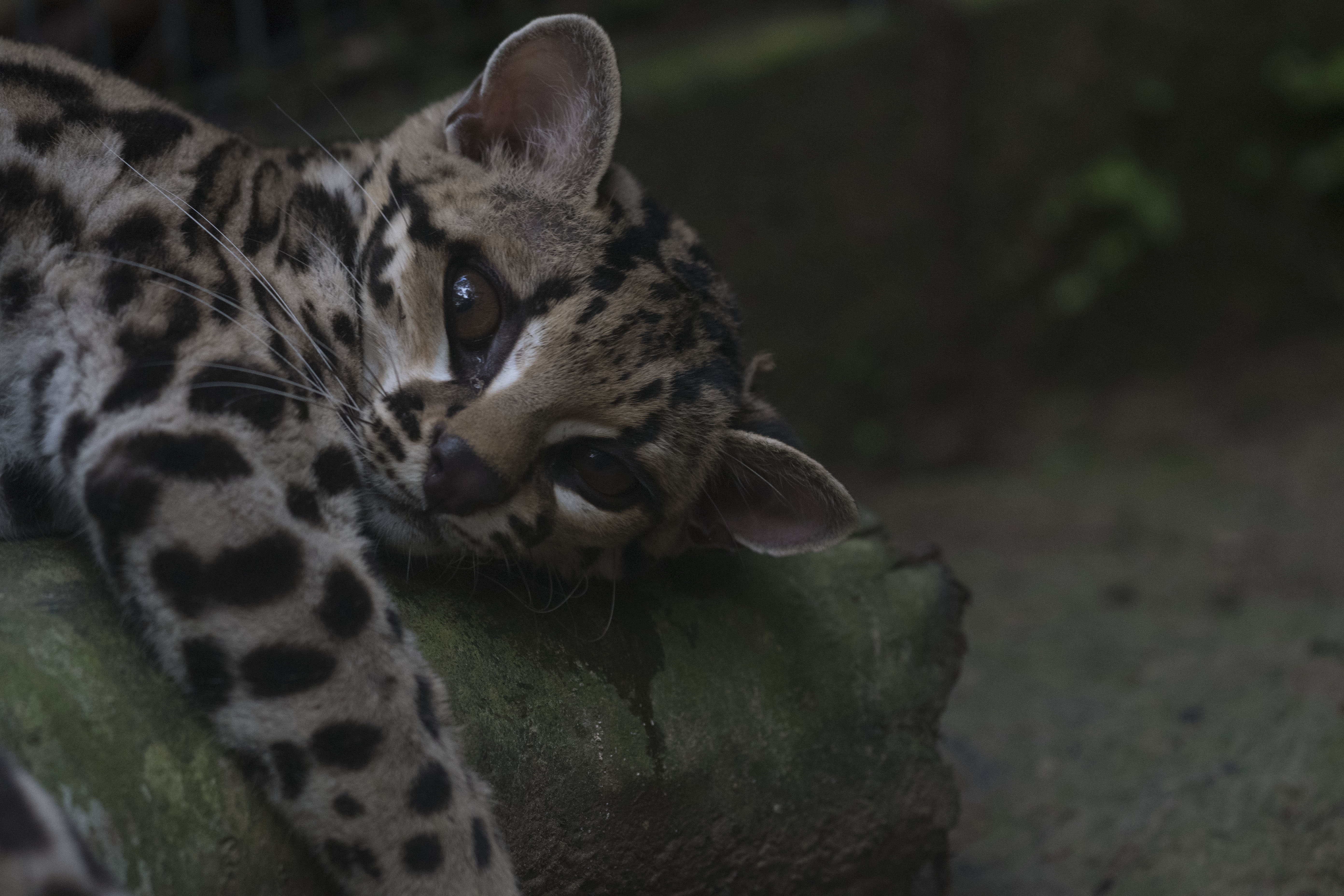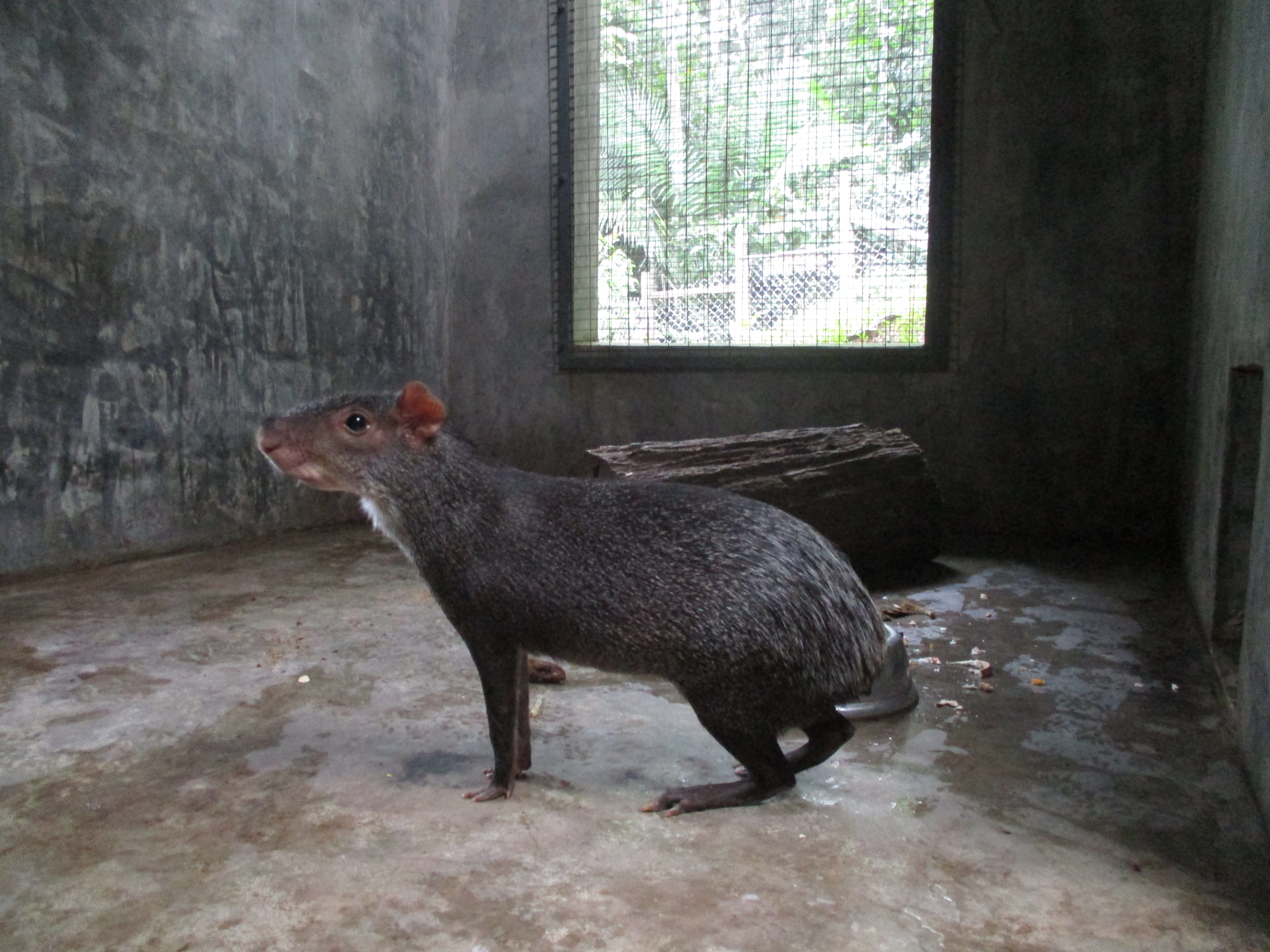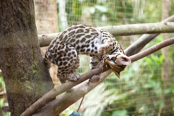 Grety (female margay) has been benefitting from the sudden influx of rats, getting a rat some mornings as well as her normal afternoon meal of chicken and organs. It is hard to say whether Grety gets more enjoyment from hunting for a dead rat, or from eating it. Needless to say, watching Grety play can be quite enjoyable, if you have the stomach for it! All rats are killed humanely prior to feeding to Grety unless they are ones foolish enough to have entered her enclosure and she has caught them herself.