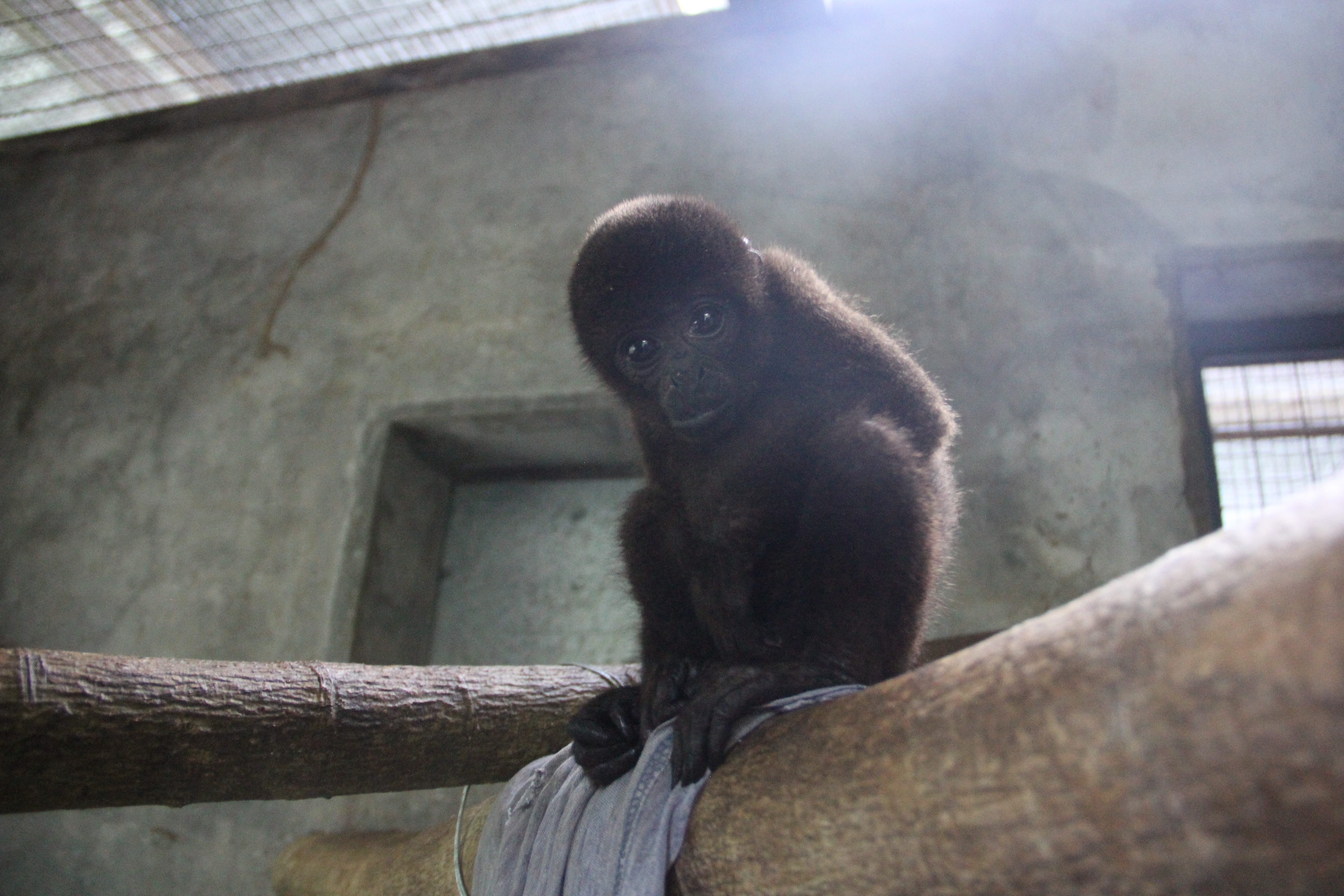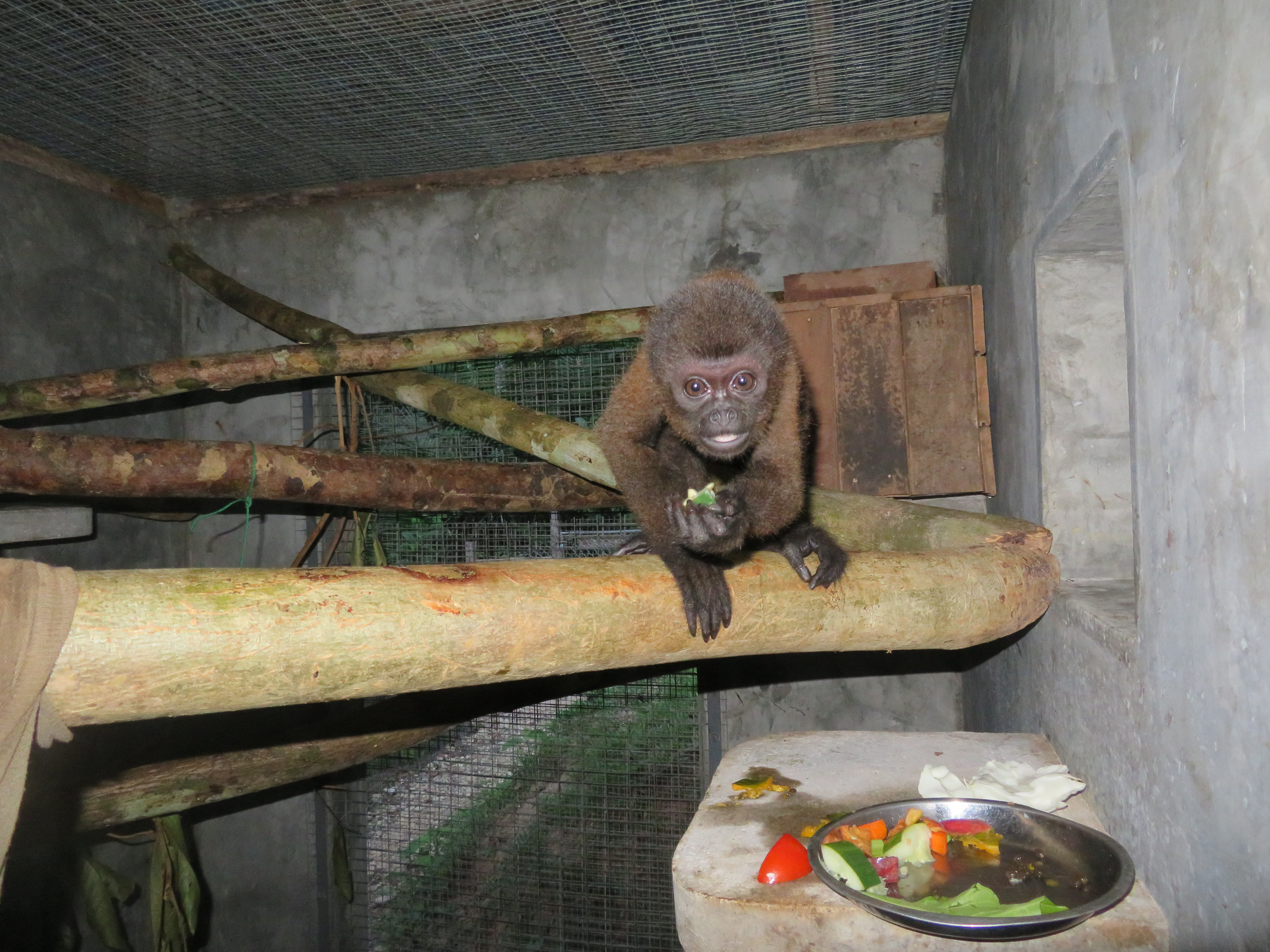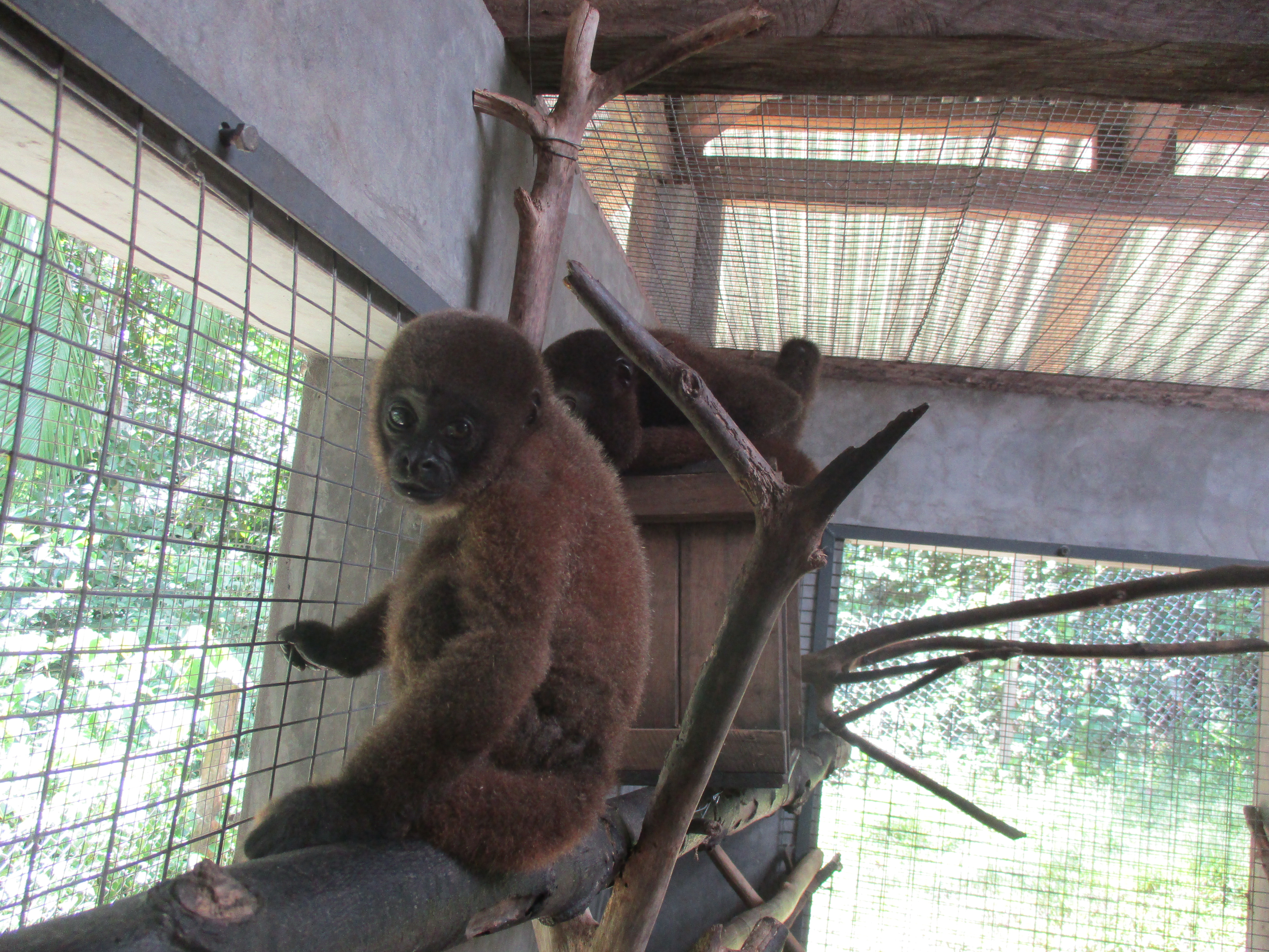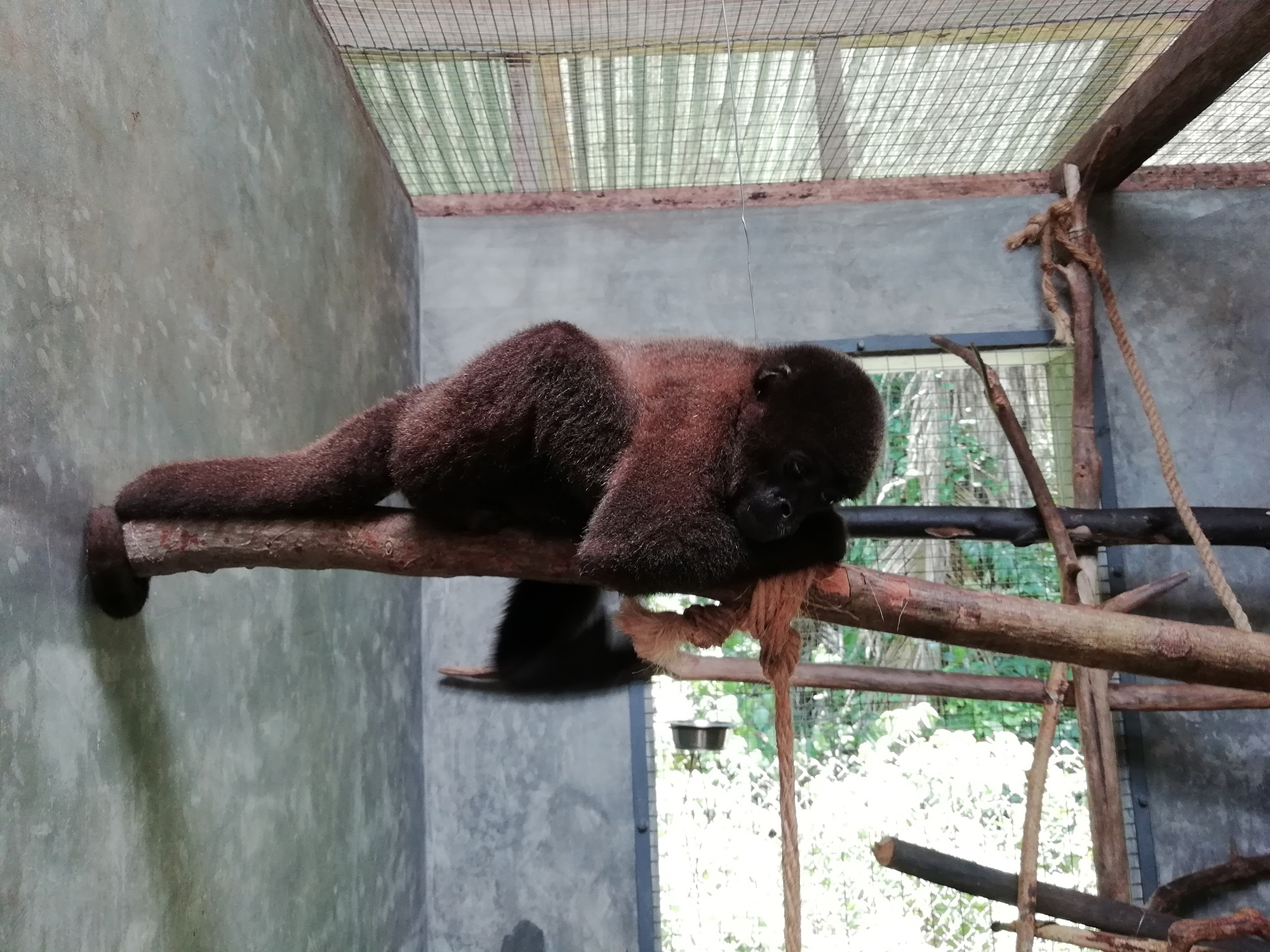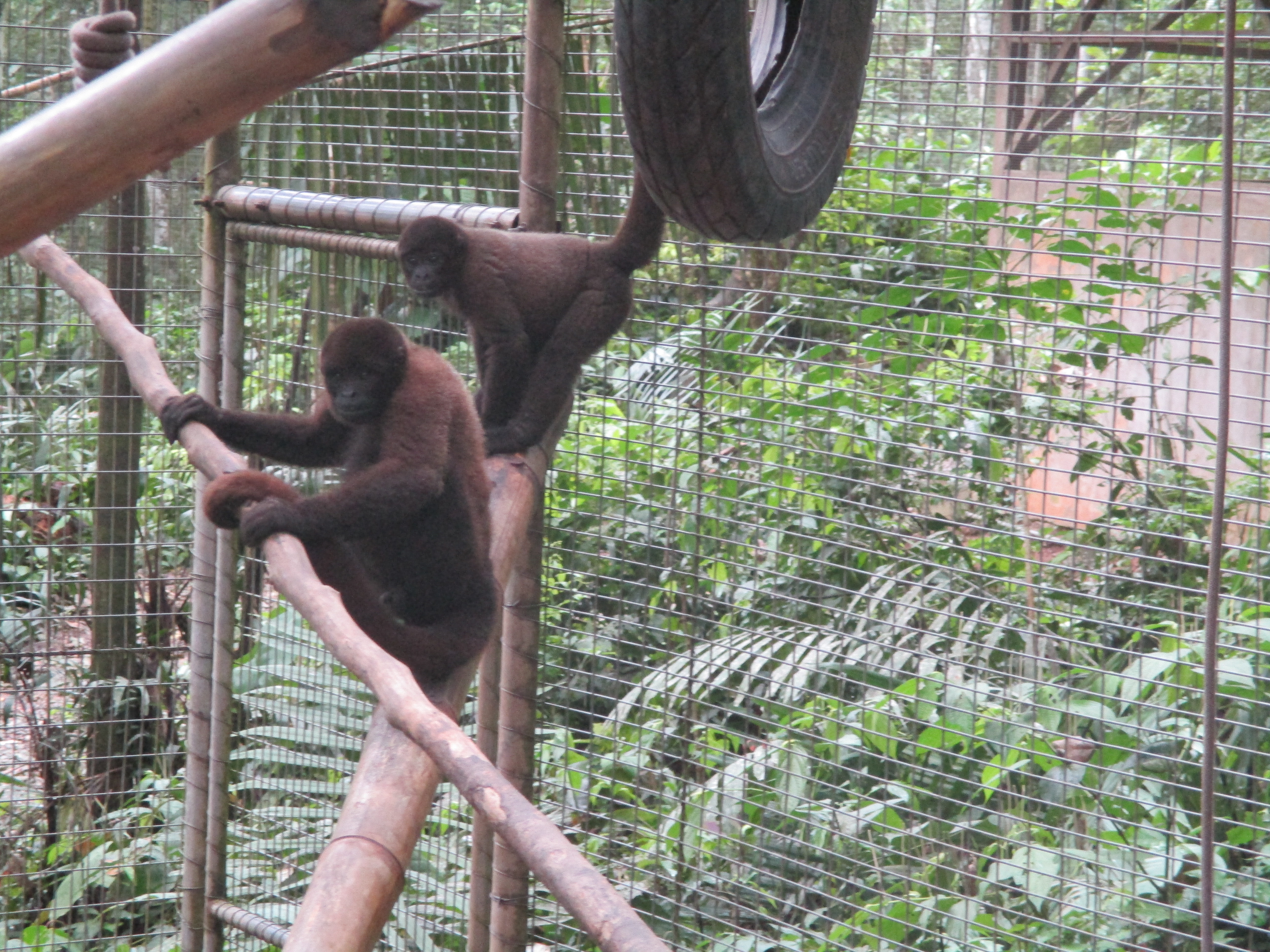 Mashi (male woolly monkey) is out of the small cage and now in one of the main clinic cages with Almira (female woolly monkey). They were initially separated as Mashi would cling to Almira for comfort using her as his mother, but Almira is not much larger than Mashi and not able to sustain the extra weight of another monkey. Although appreciating the company, Mashi is now more independent which gives Almira more time to play.