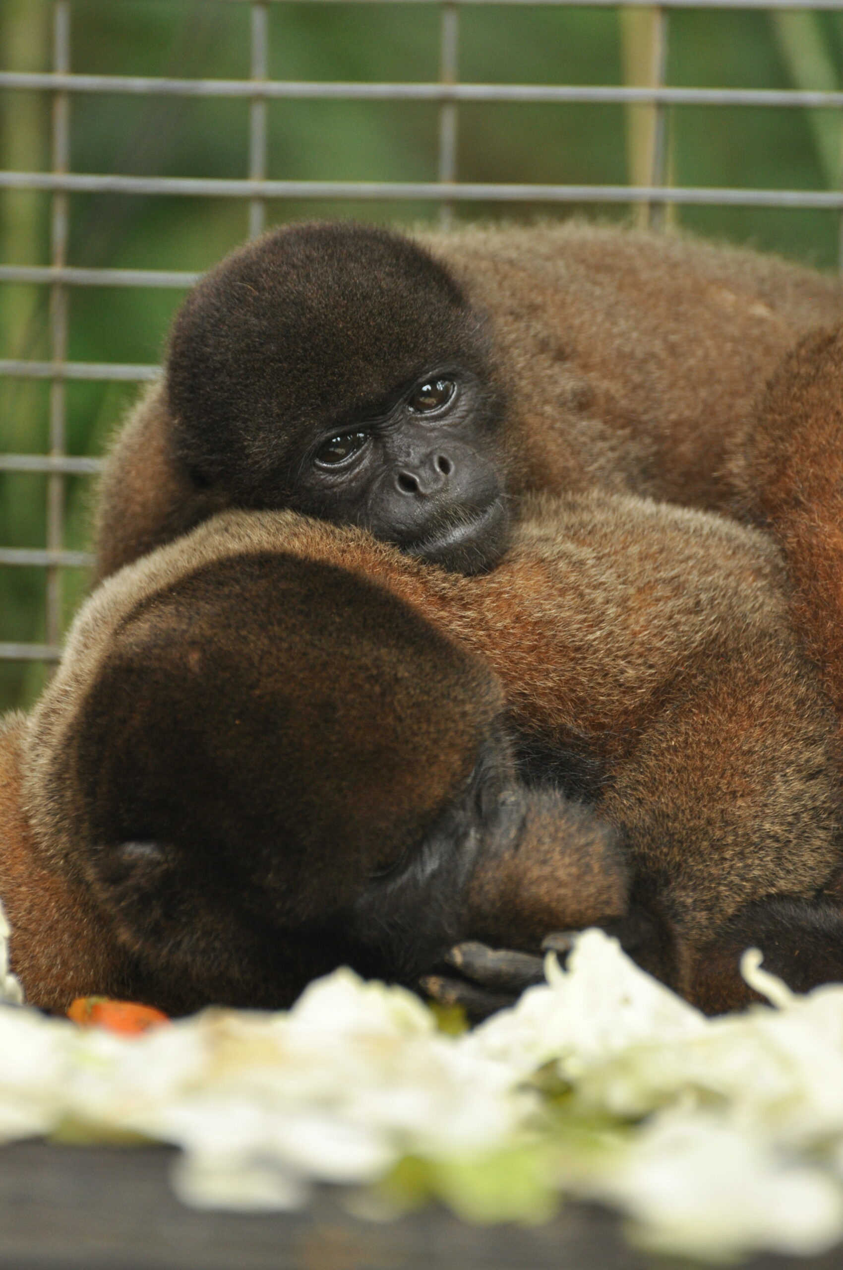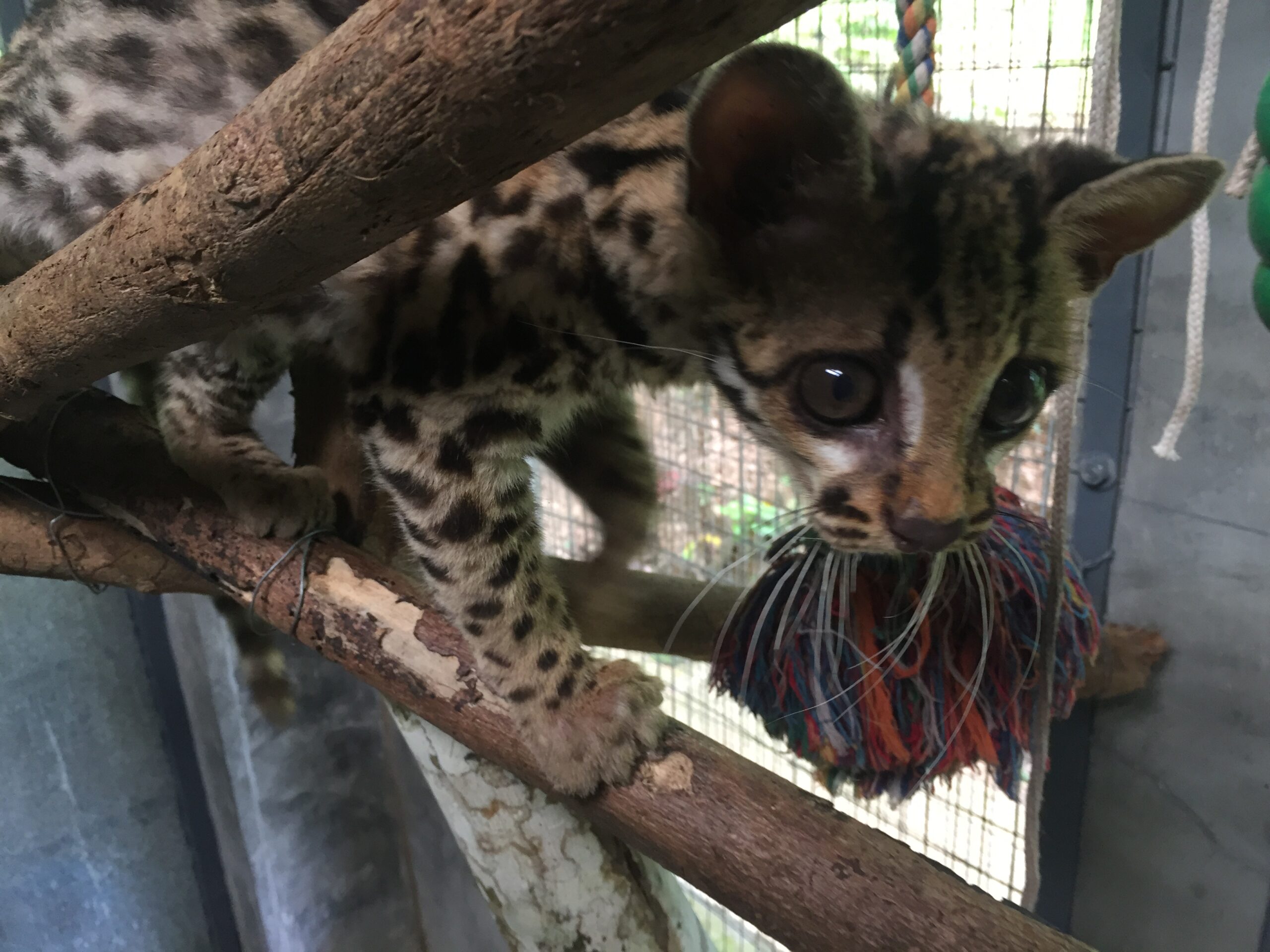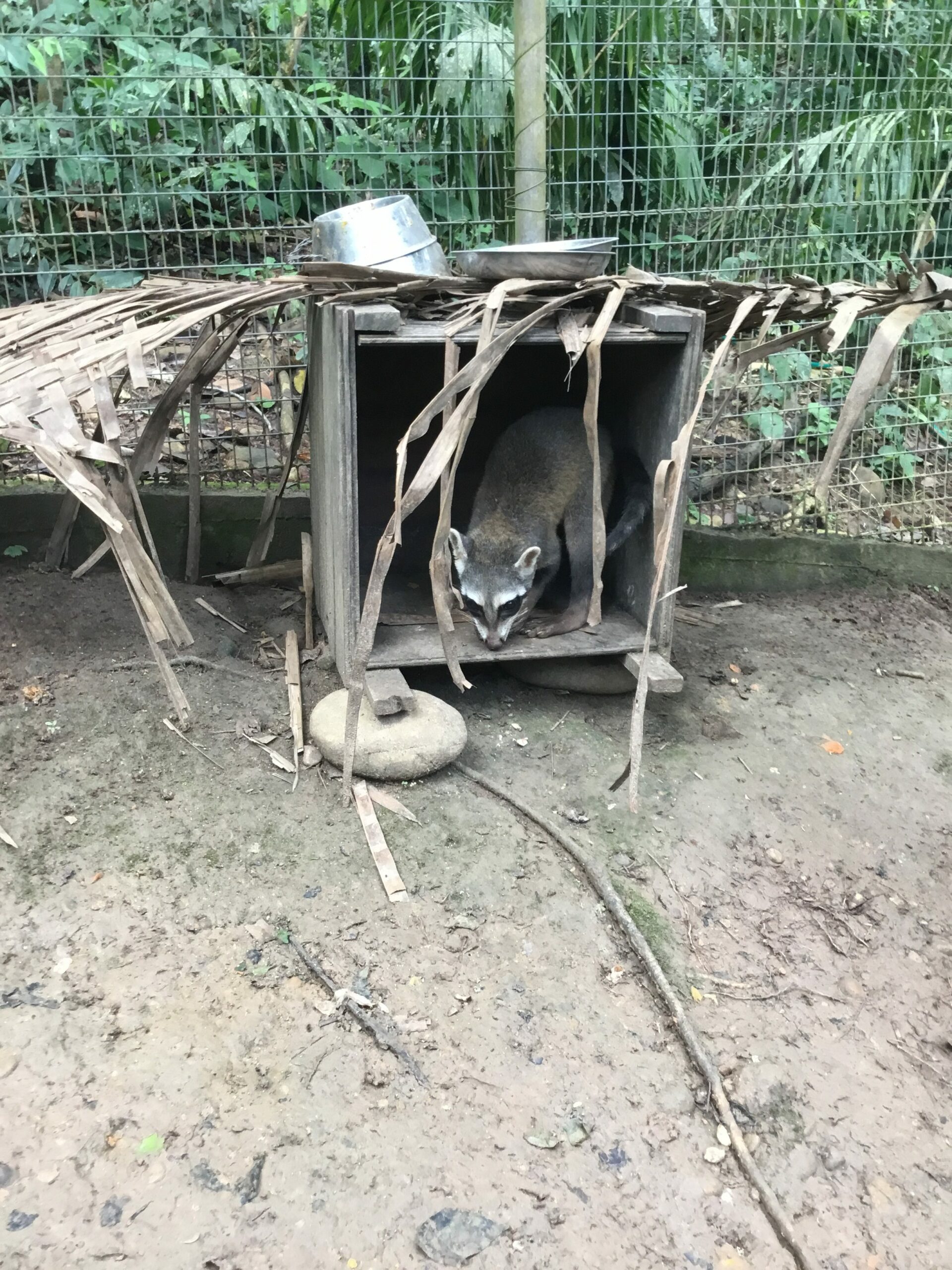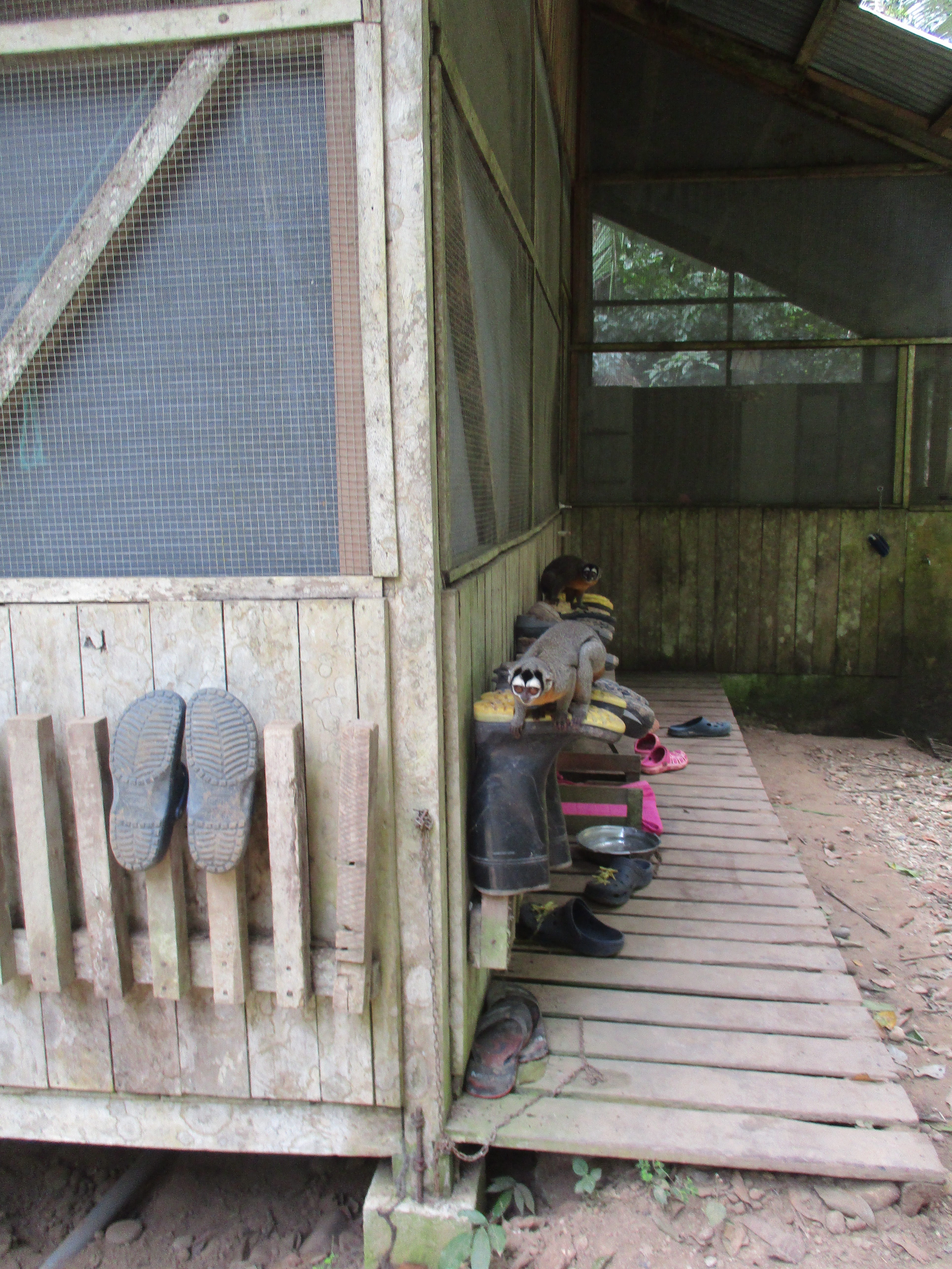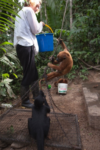 Mashi (male woolly monkey) is out of the small cage and now in one of the main clinic cages with Almira (female woolly monkey). They were initially separated as Mashi would cling to Almira for comfort using her as his mother, but Almira is not much larger than Mashi and not able to sustain the extra weight of another monkey. Although appreciating the company, Mashi is now more independent which gives Almira more time to play.