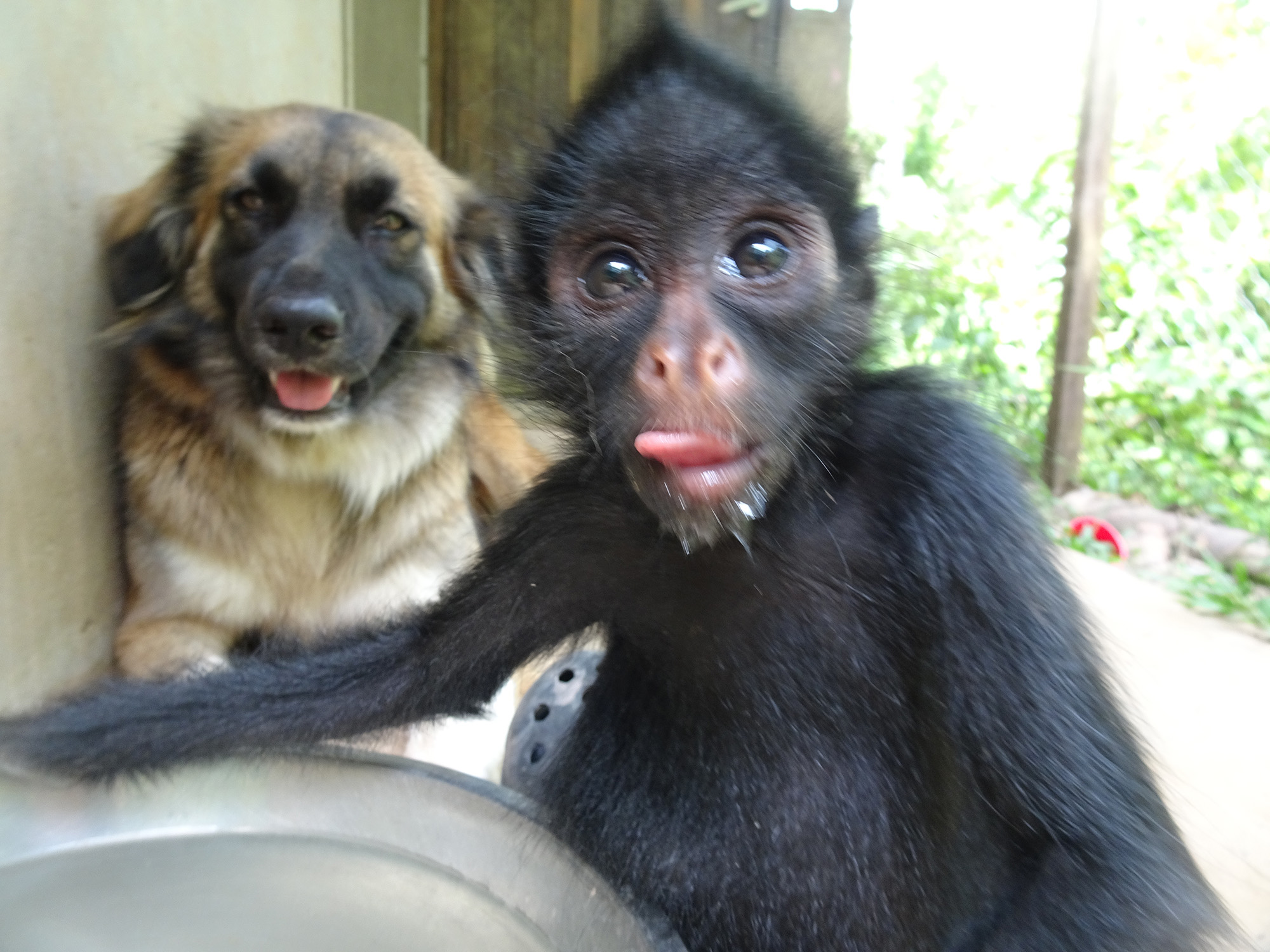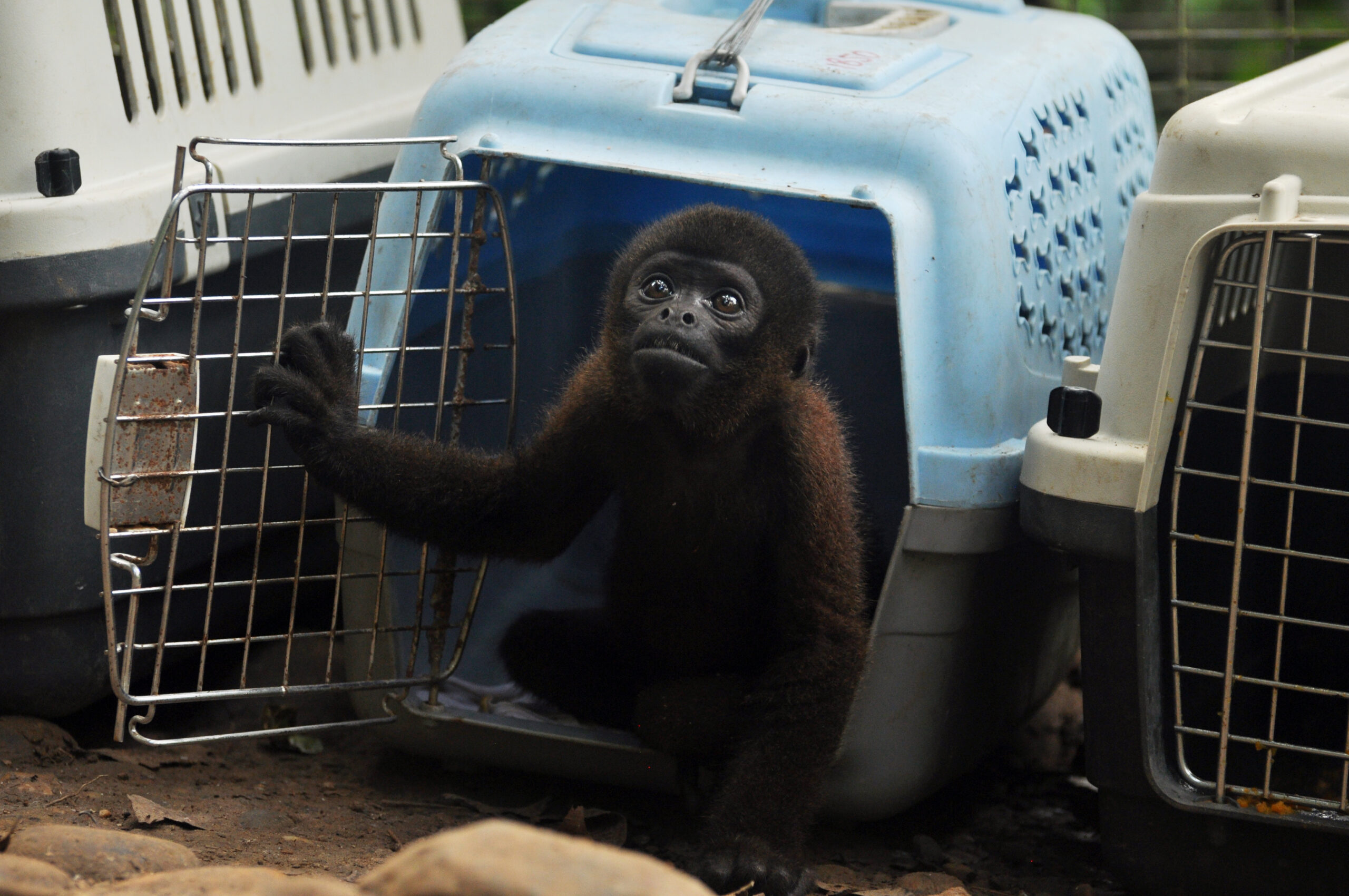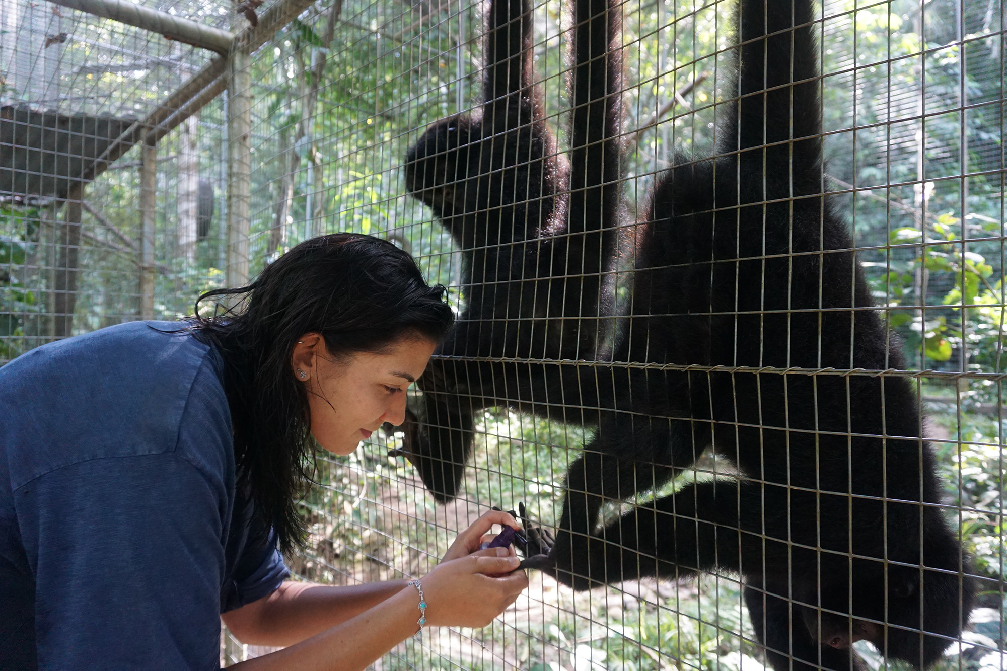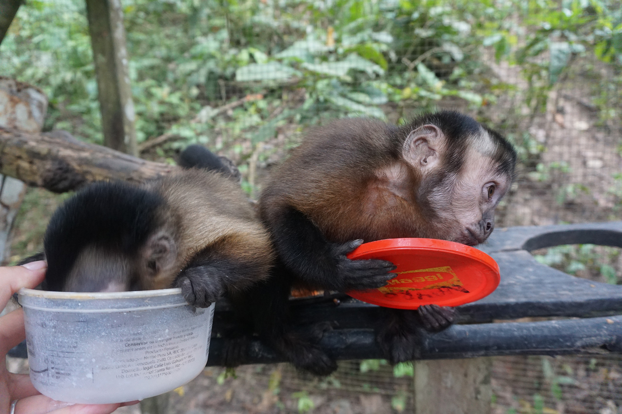 Mashi (male woolly monkey) is out of the small cage and now in one of the main clinic cages with Almira (female woolly monkey). They were initially separated as Mashi would cling to Almira for comfort using her as his mother, but Almira is not much larger than Mashi and not able to sustain the extra weight of another monkey. Although appreciating the company, Mashi is now more independent which gives Almira more time to play.