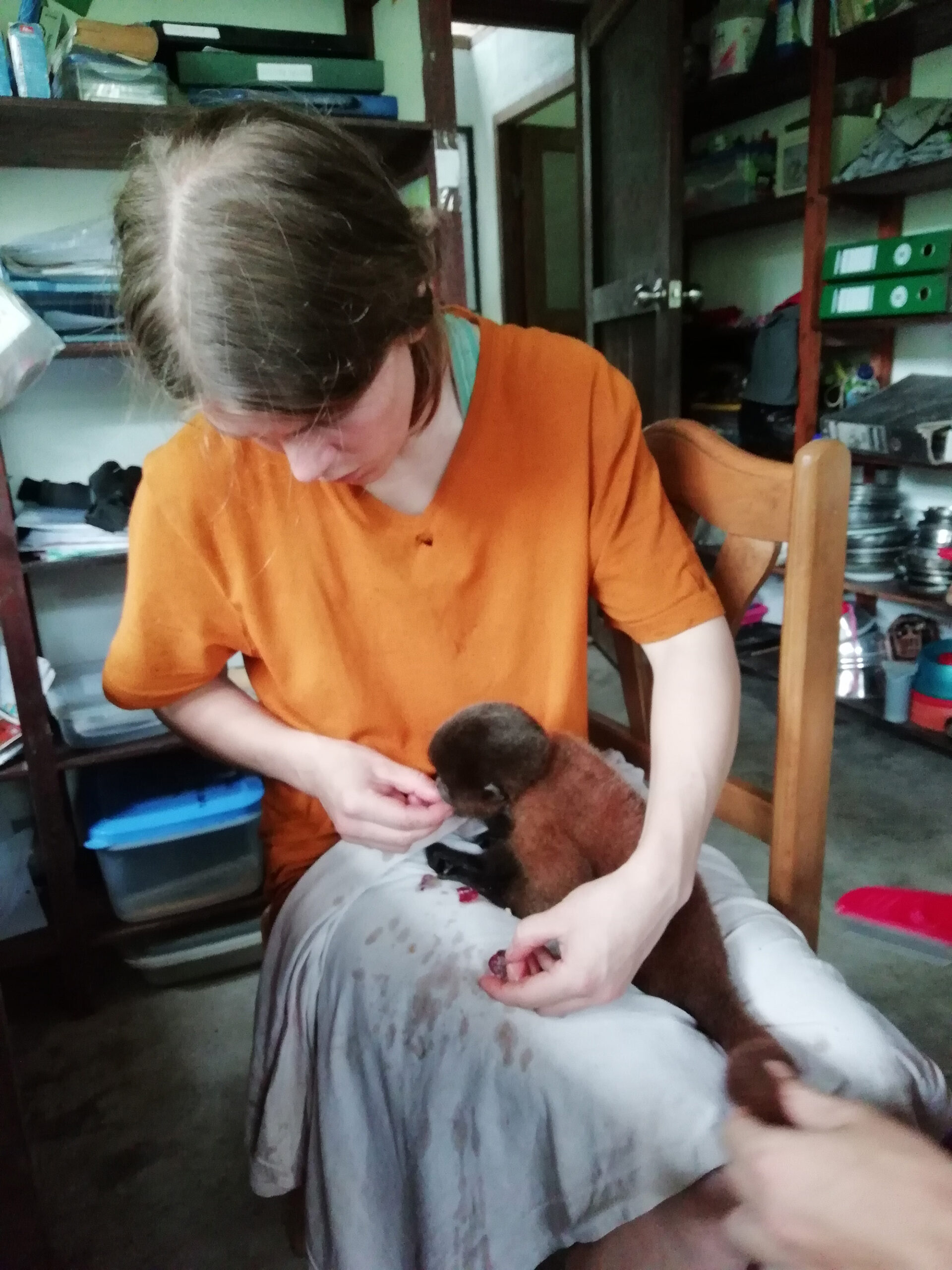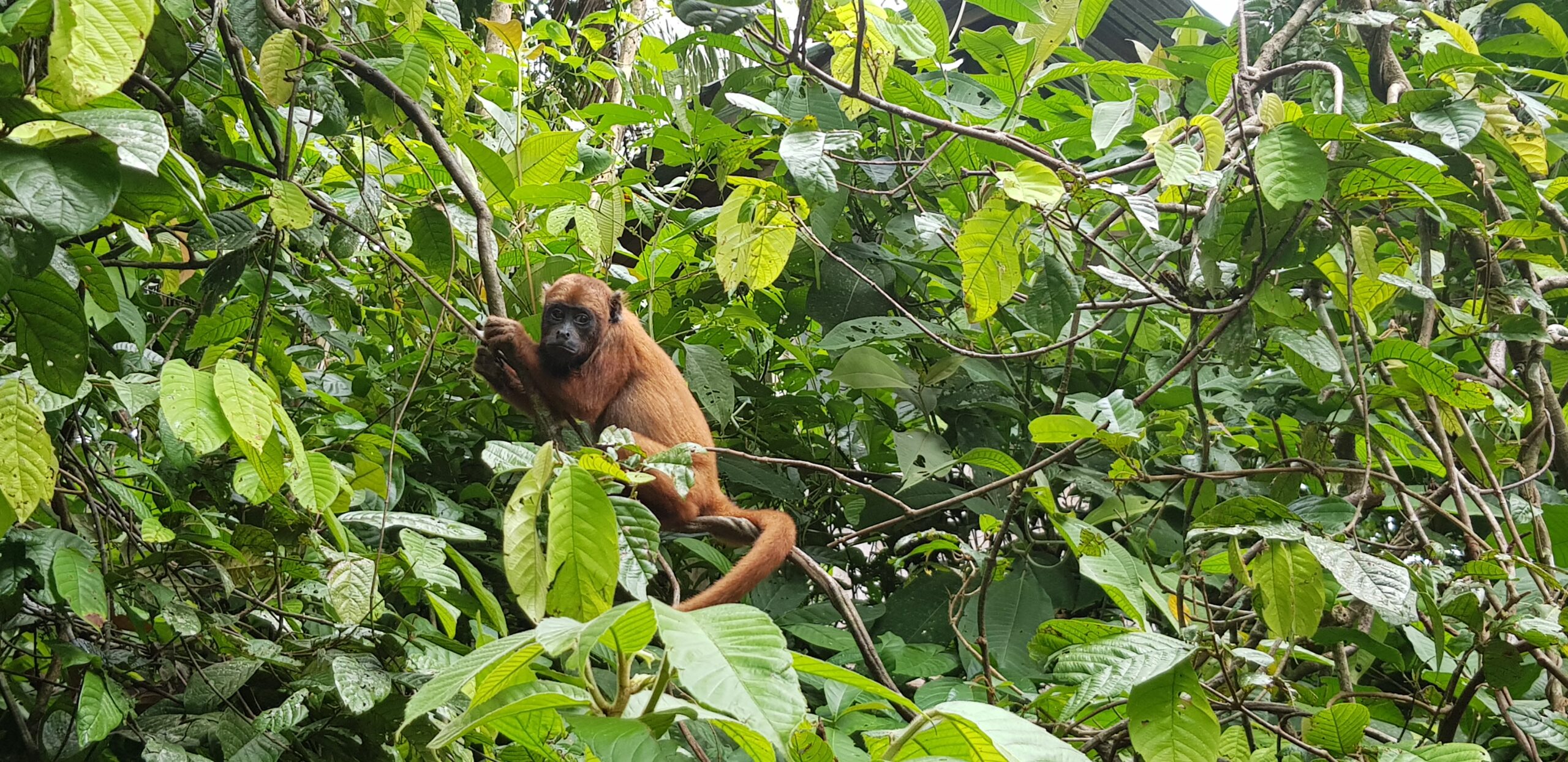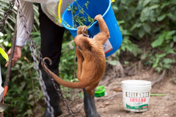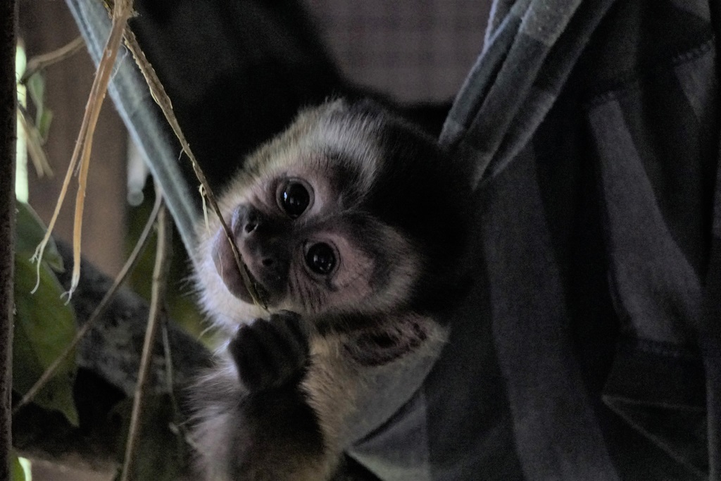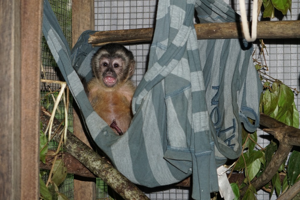 Douwe and Olivia attempted to take a few days away from EV in the closing stages of the month, however you can take the grown-ups out of EV, but you can’t take the EV out of the grown-ups. A lot of their time was spent purchasing anything required for the centre, and of course, they weren’t able to go away without bringing a gift back for the volunteers, nope not chocolate! Tito (male Equatorial Saki Monkey), had been handed to the ministry in Pucallpa, so the timing was perfect for this little guy. He will spend his quarantine period in the clinic prior to joining Yuria (female Equatorial Saki Monkey), Ramon and Darwin (male Howler monkeys) This is great for both Tito and Yuria as they can be released at the same time. We hope that this will give them both some added comfort and confidence as they experience life outside at EV.