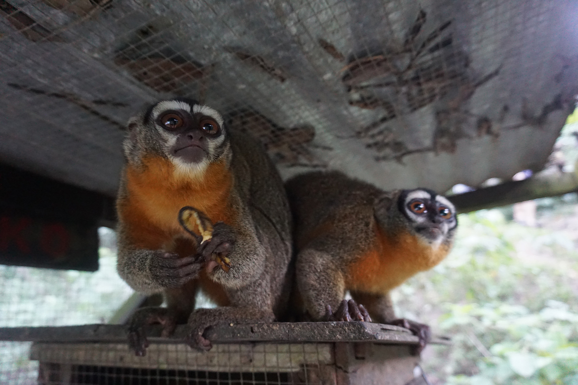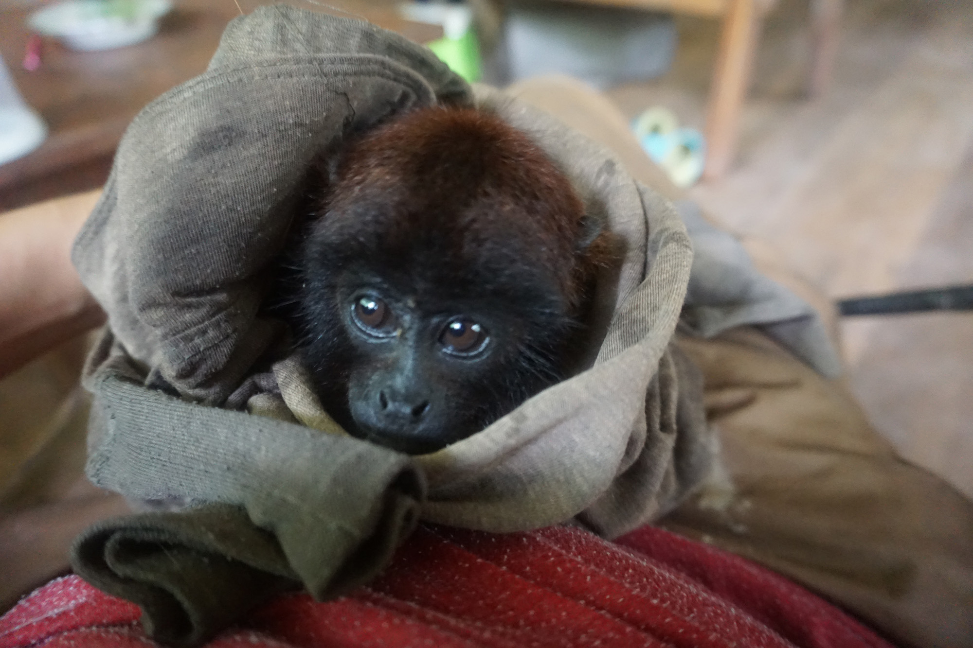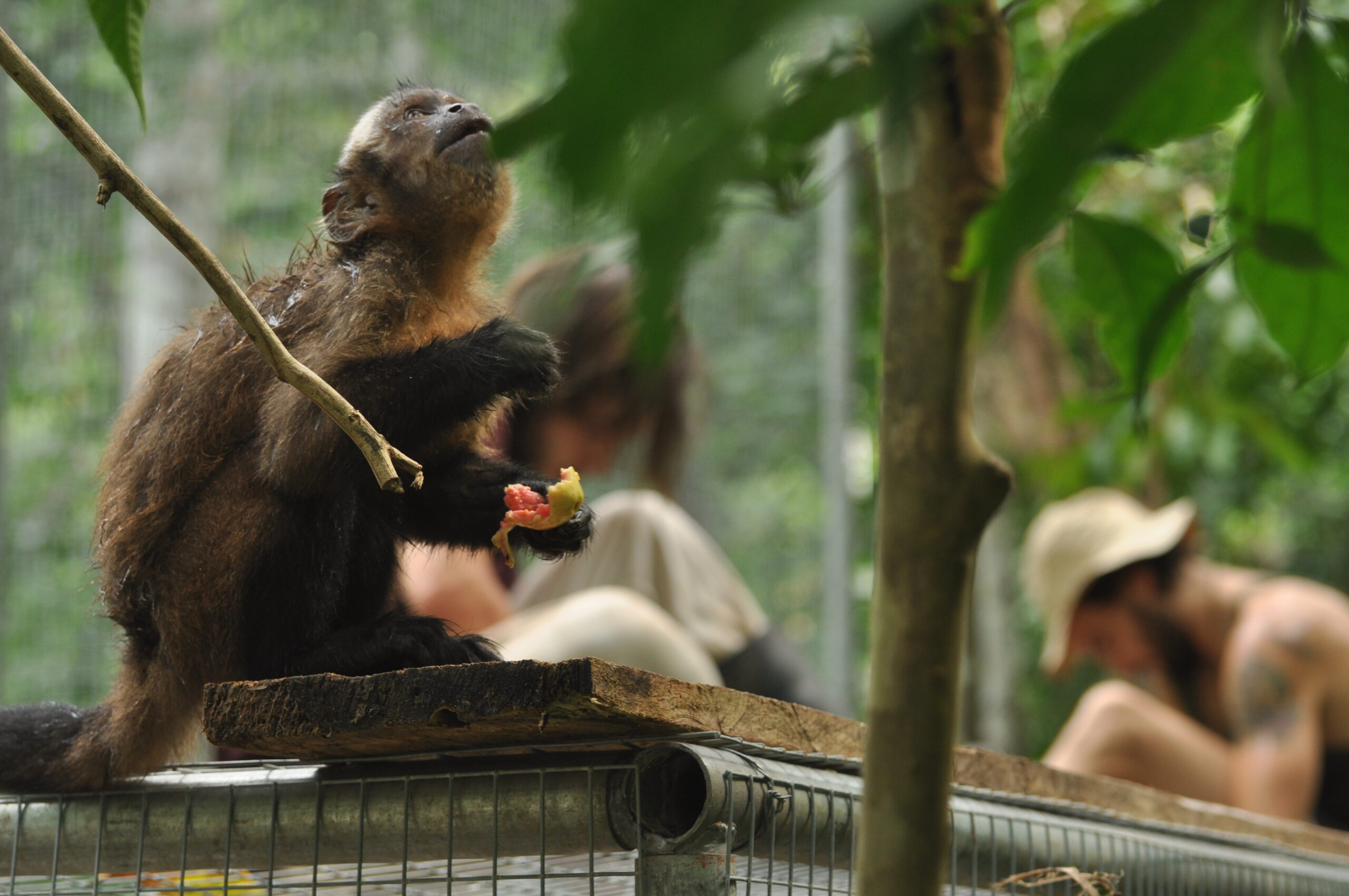 Douwe and Olivia attempted to take a few days away from EV in the closing stages of the month, however you can take the grown-ups out of EV, but you can’t take the EV out of the grown-ups. A lot of their time was spent purchasing anything required for the centre, and of course, they weren’t able to go away without bringing a gift back for the volunteers, nope not chocolate! Tito (male Equatorial Saki Monkey), had been handed to the ministry in Pucallpa, so the timing was perfect for this little guy. He will spend his quarantine period in the clinic prior to joining Yuria (female Equatorial Saki Monkey), Ramon and Darwin (male Howler monkeys) This is great for both Tito and Yuria as they can be released at the same time. We hope that this will give them both some added comfort and confidence as they experience life outside at EV.