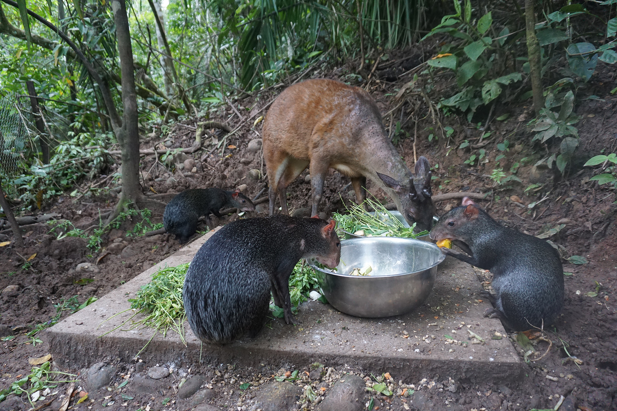 All three, Celia, Merida and Rino (two females, one male) spent some time in the SUST Animal Orphan Clinic being treated for parasites before being moved to the Rincay enclosure. This gives all three peccaries plenty of space to roam and the first contact can be made with our resident peccaries, Timo, Kohana and Roxanna, while having the security of a fence separating them.